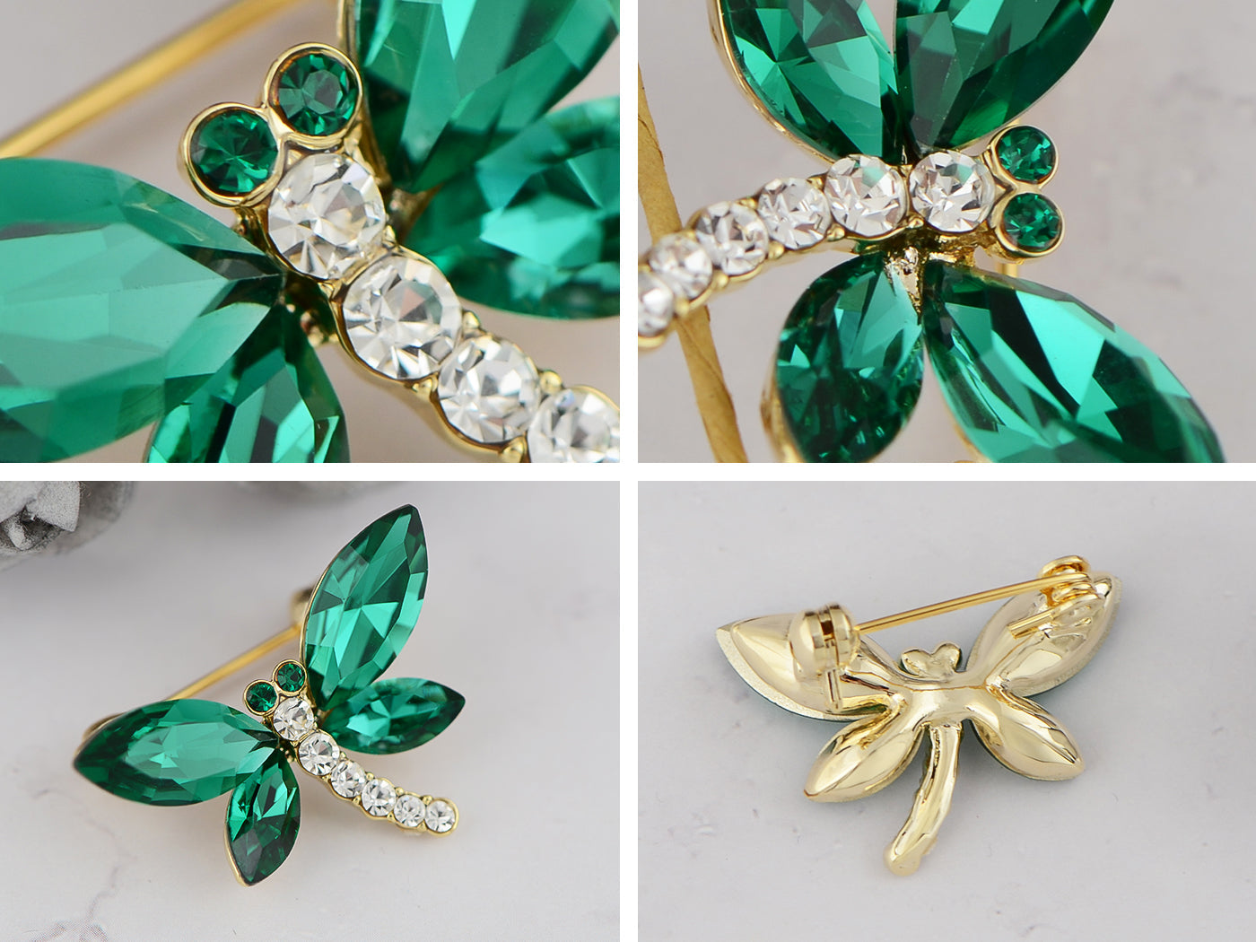 - UNIQUE DESIGN - Beautiful brooch featuring dragonfly design that contains various amethyst purple pink clear swarovsk crystal rhinestones, and silvery tone metal alloy base.