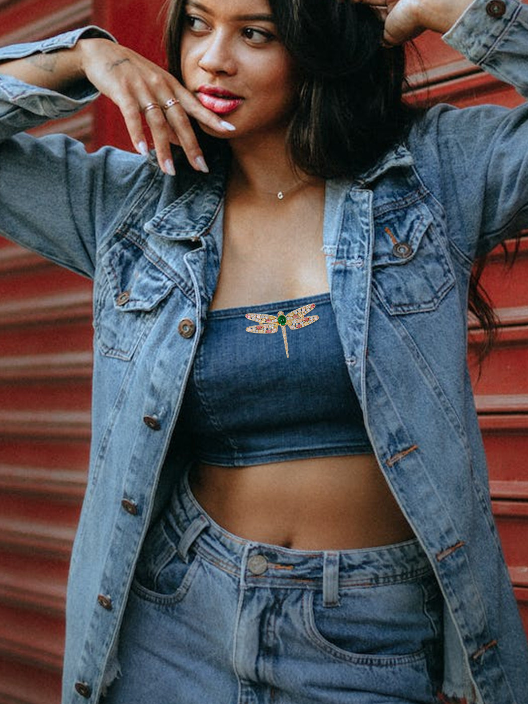 Crystal Shine Amethyst Dragonfly Bug Brooch Pin