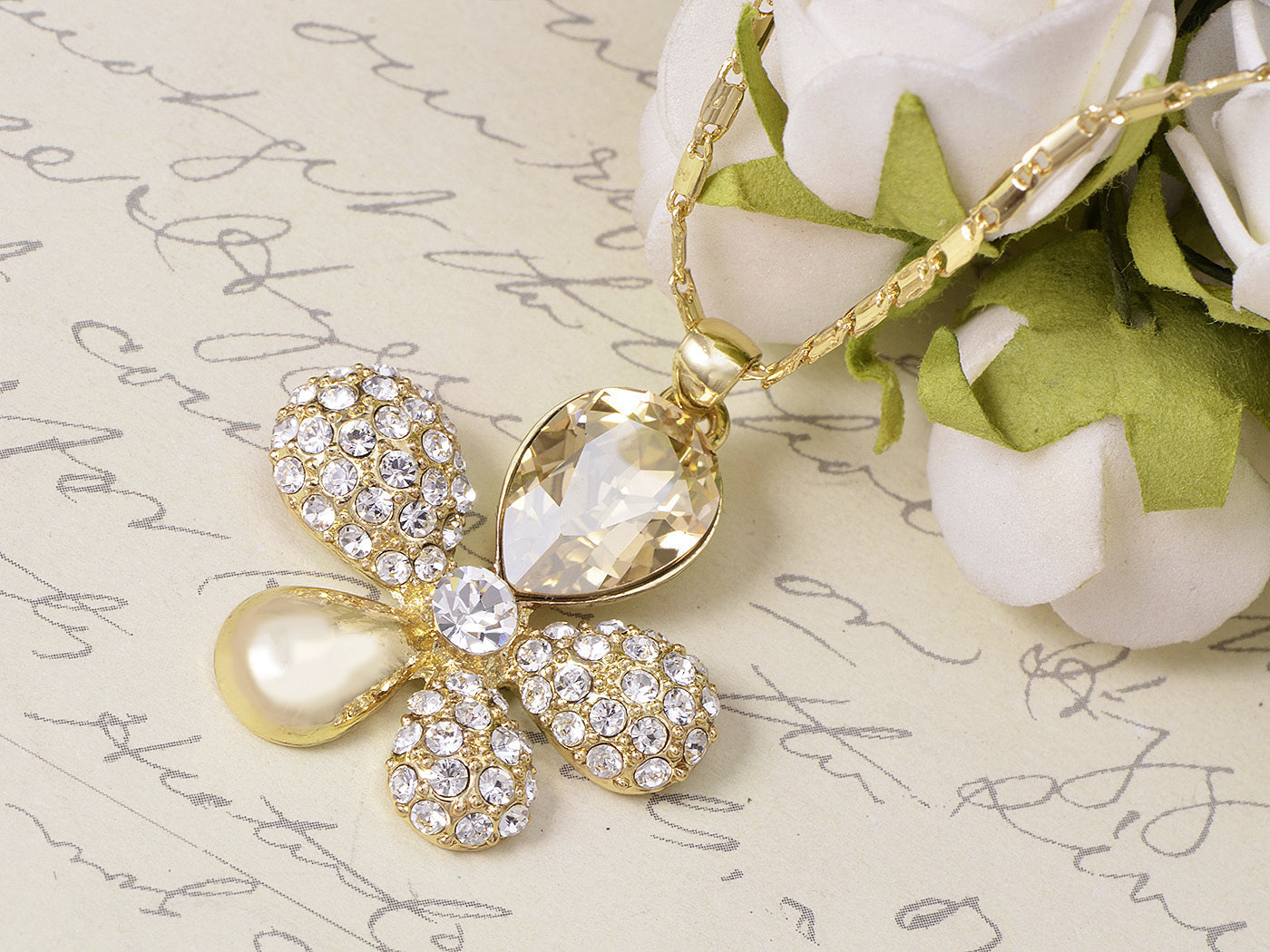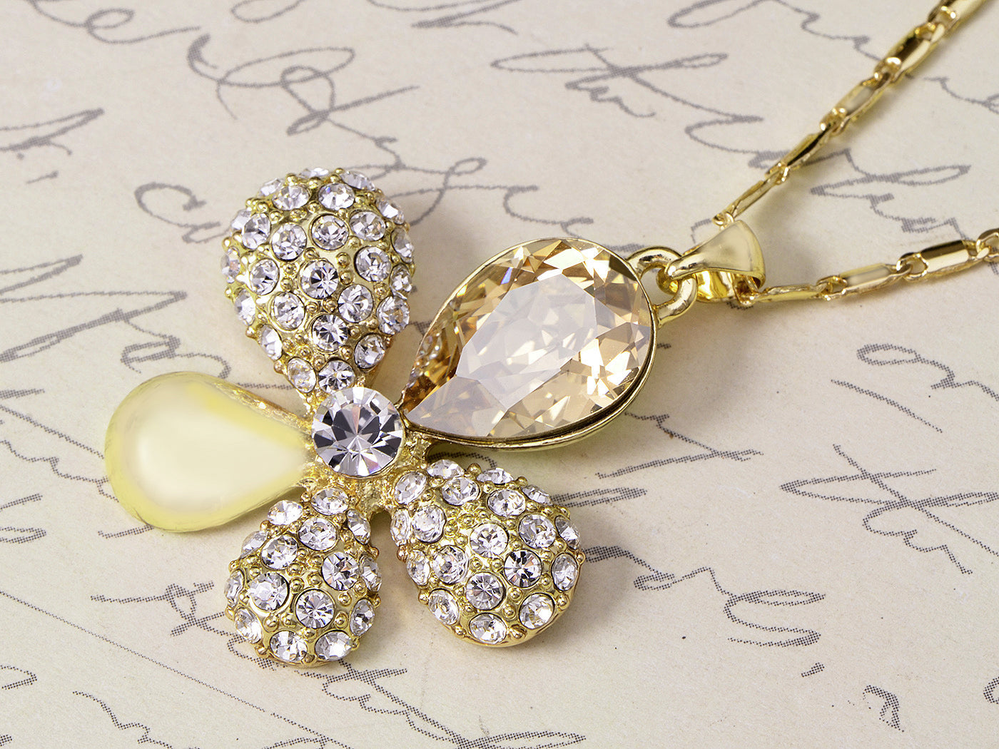 Swarovski Crystal Topaz Fat Flower Petal Pendent Necklace