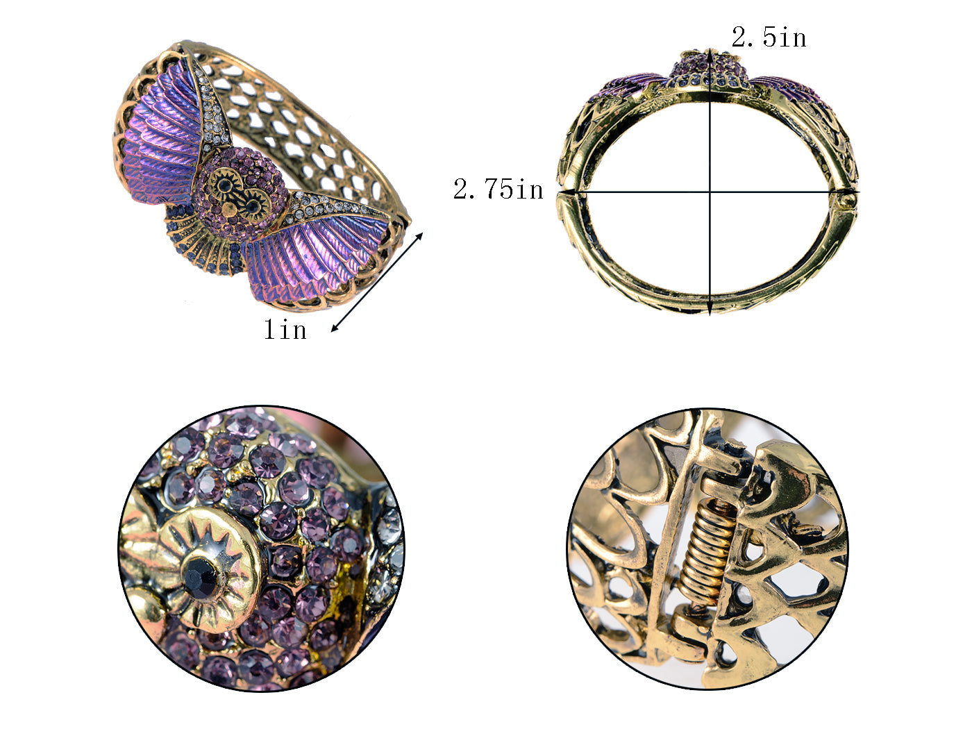 - A PURPLE DREAM - A beautiful night owl painted with a rich purple and a lighter lavender version. Embellished with sparkly rhinestones around the face of the owl as well as along the wings. The base is an antique gold finish and includes a hinge that opens.