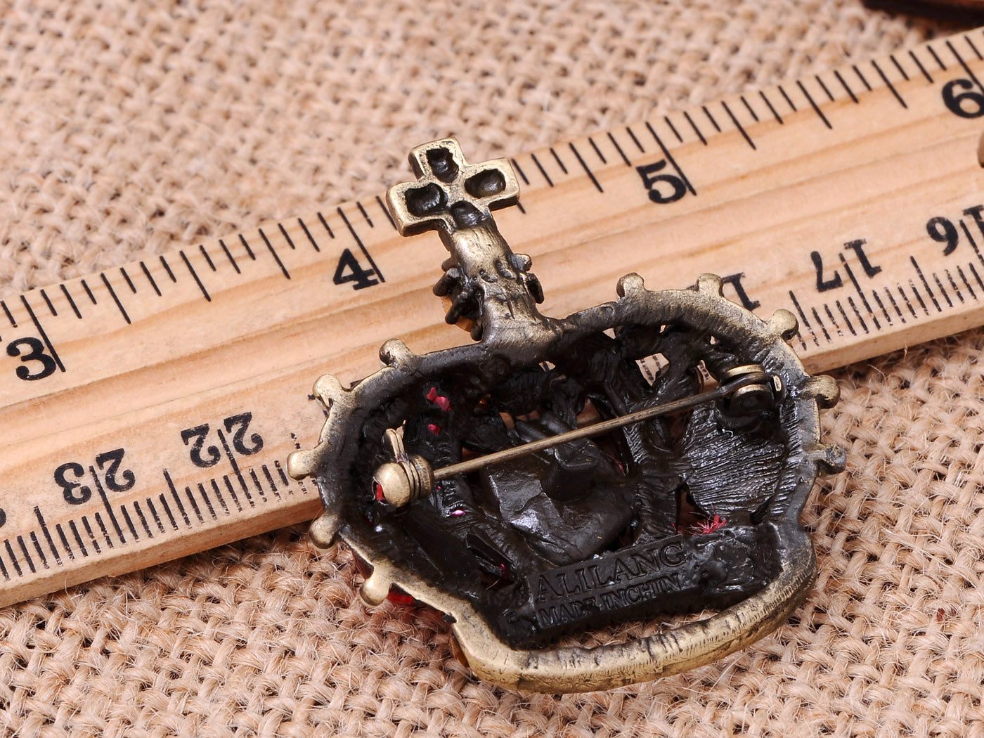 Gun Bronze Multicolored Antique Vintage Crown Brooch Pin