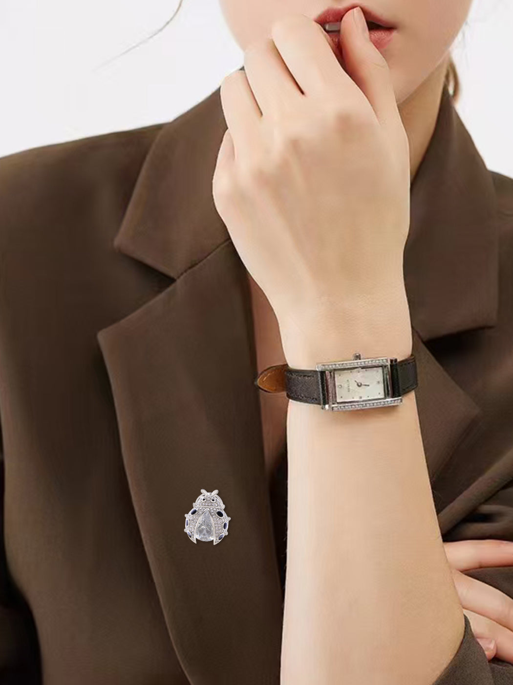 - UNIQUE DESIGN: Brooch with black and green colored rhinestones, green enamel, and winged insect design