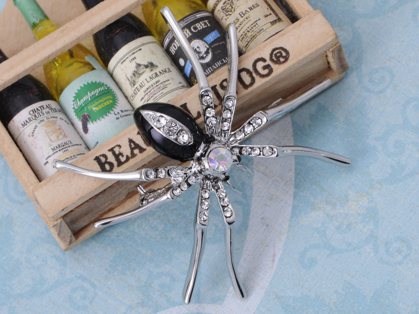 - UNIQUE DESIGN - A brooch pin featuring spider design enriched with light blue colored rhinestones and painted glossy enamel.