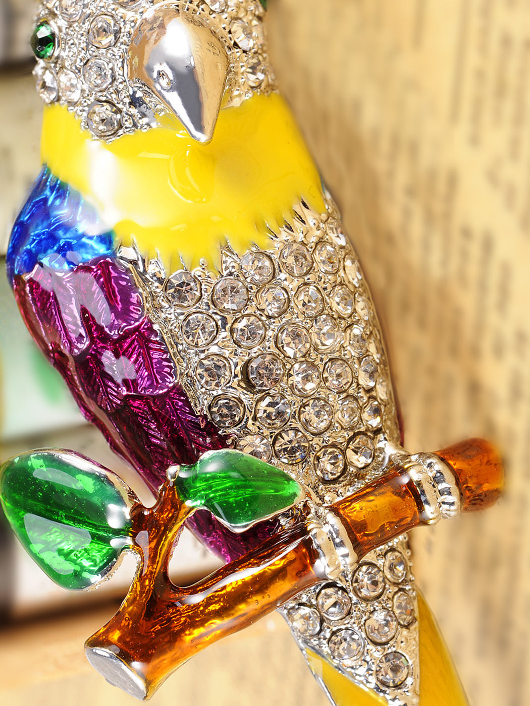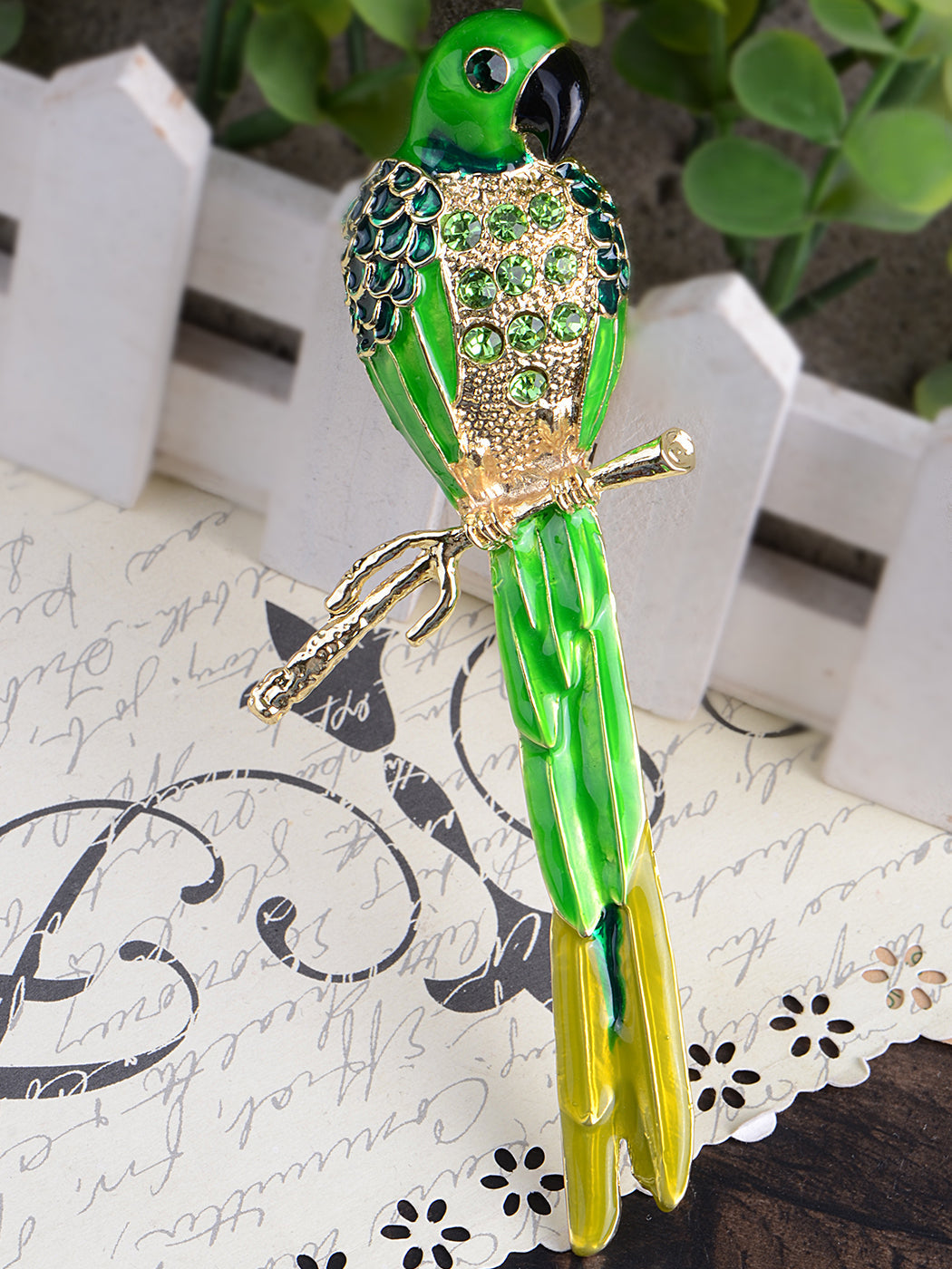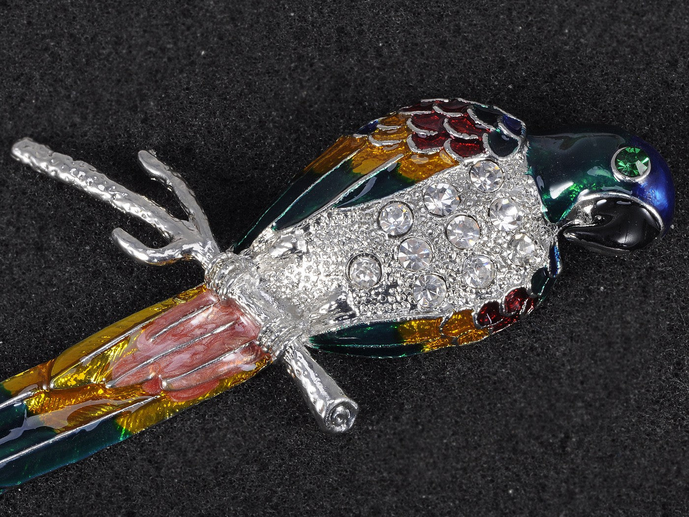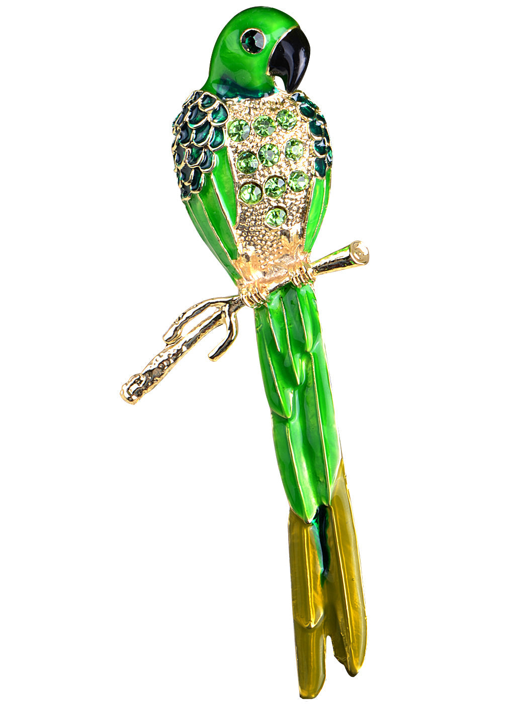 - UNIQUE DESIGN - Brooch featuring parrot design with clear/green colored rhinestones and painted enamel.