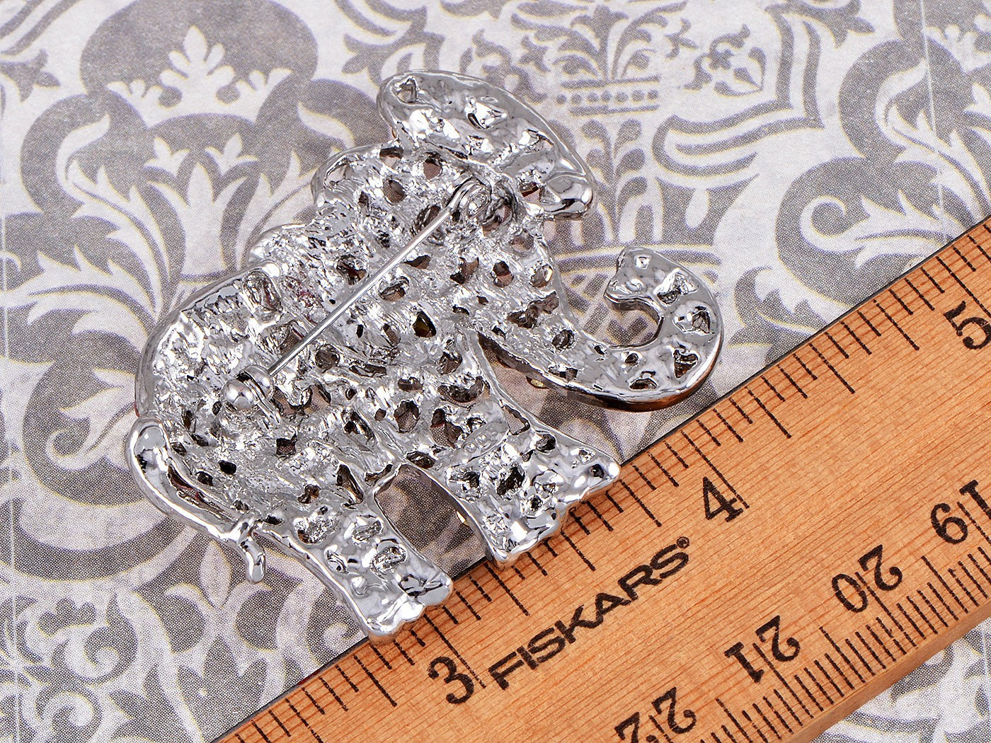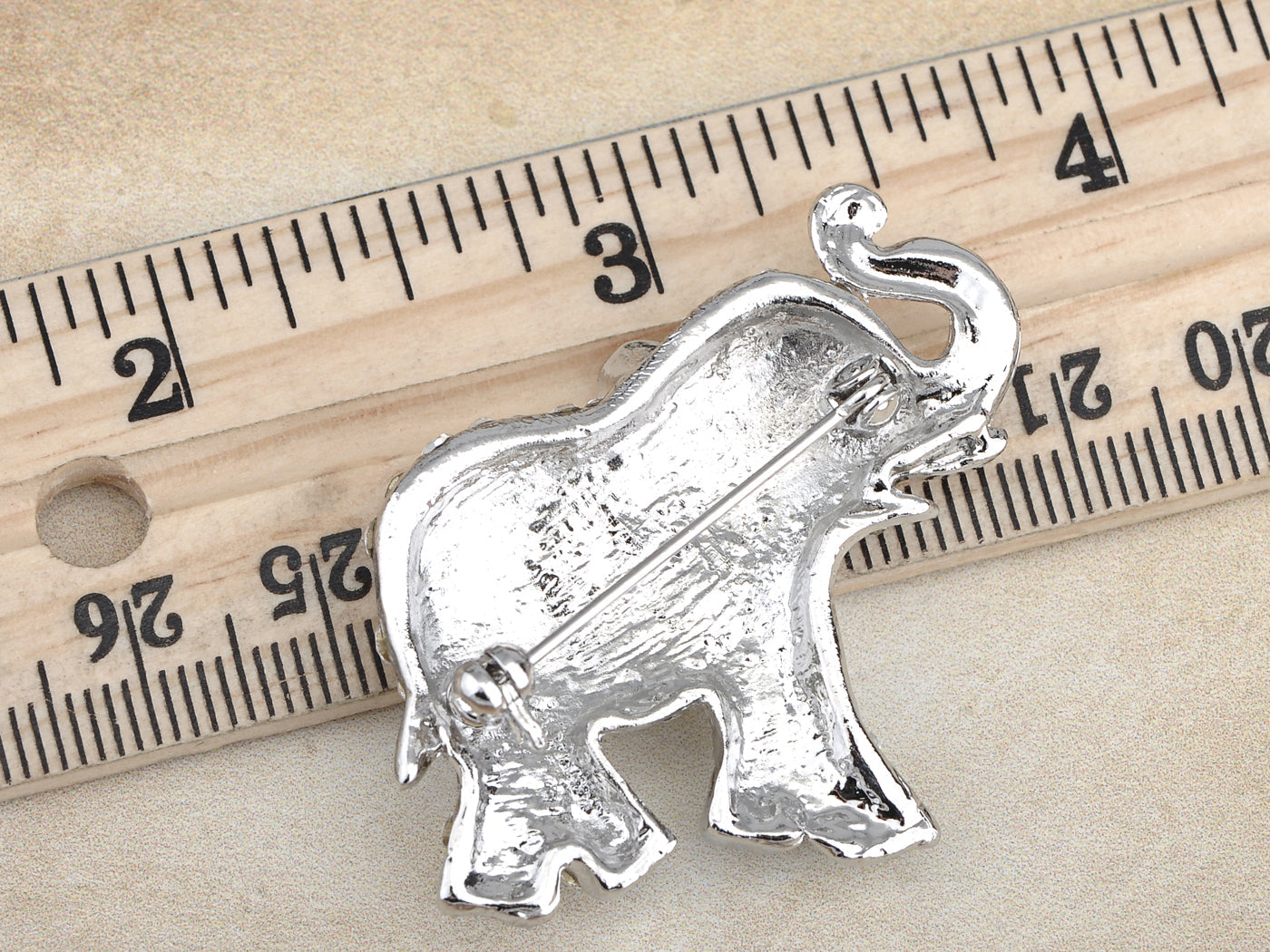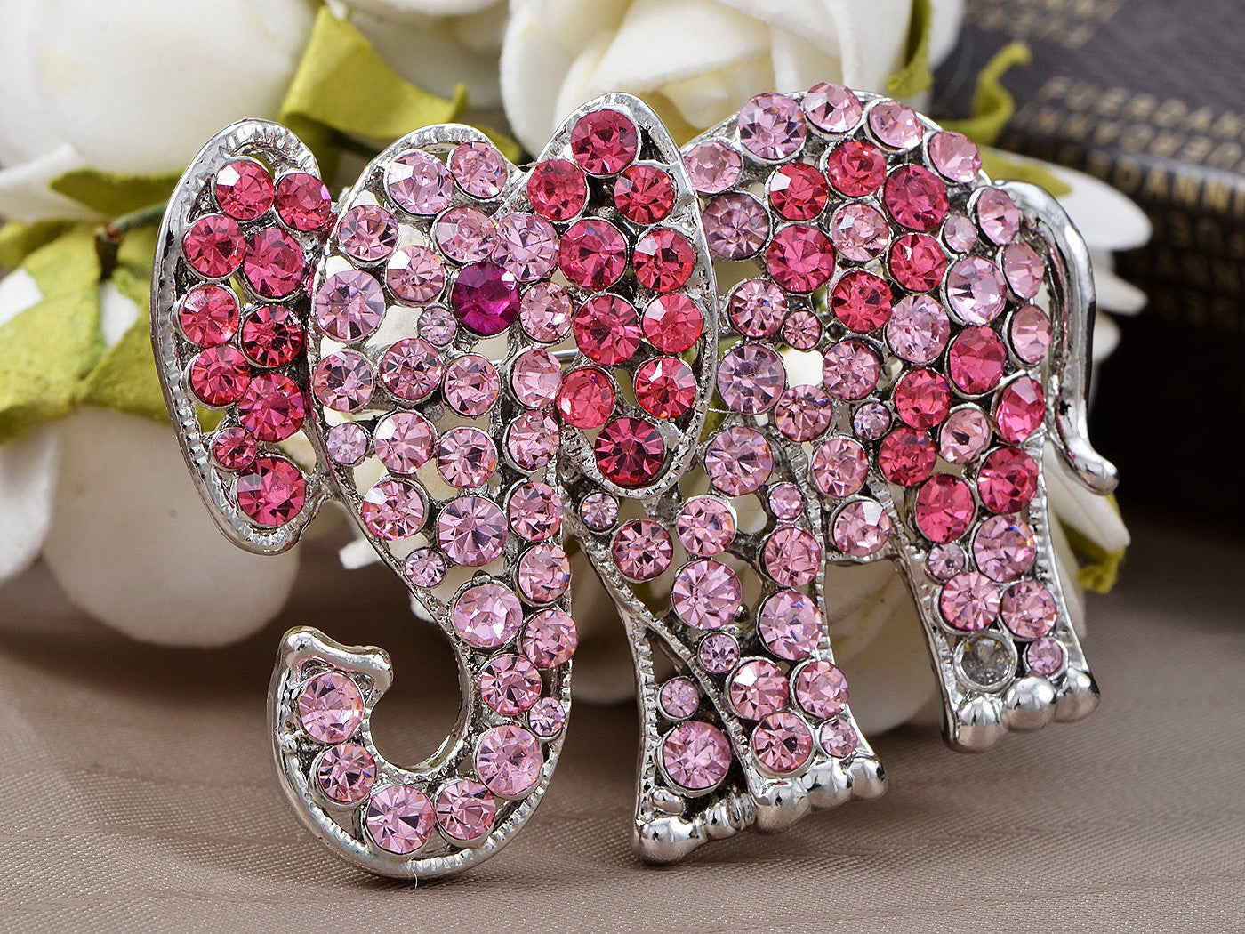 - UNIQUE DESIGN - Silvery tone pink rhinestones circus elephant brooch