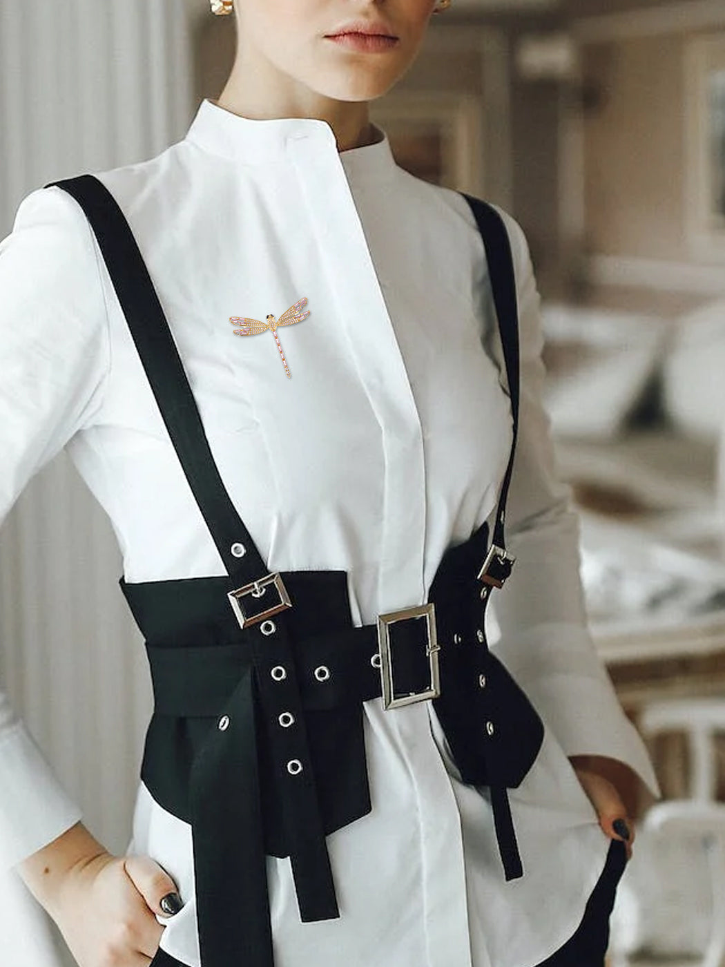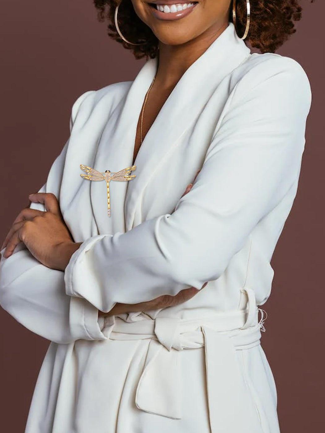- UNIQUE DESIGN: Brooch featuring a dragonfly design with light topaz colored rhinestones and one gemstone.