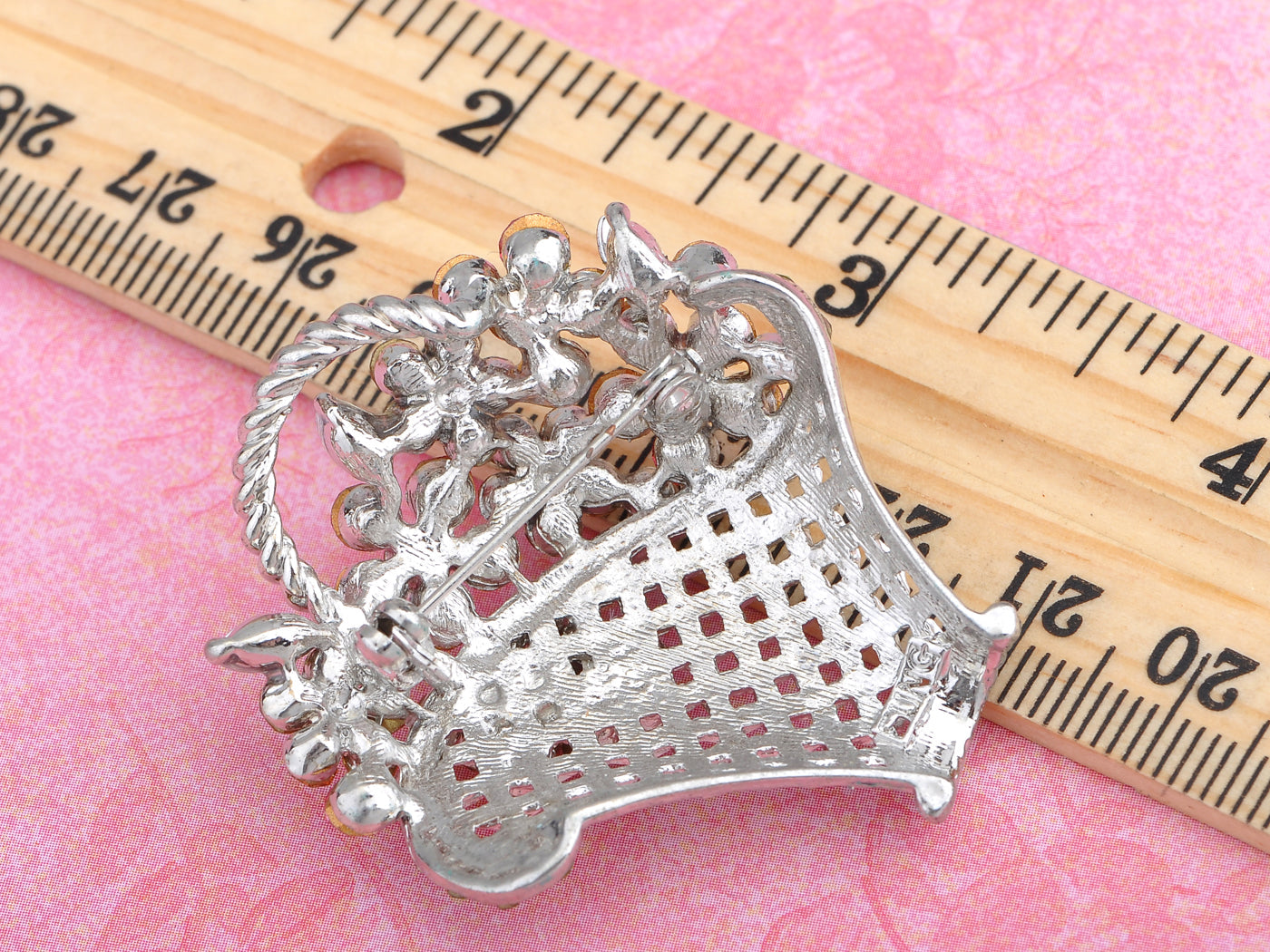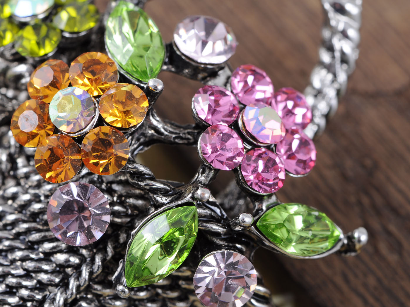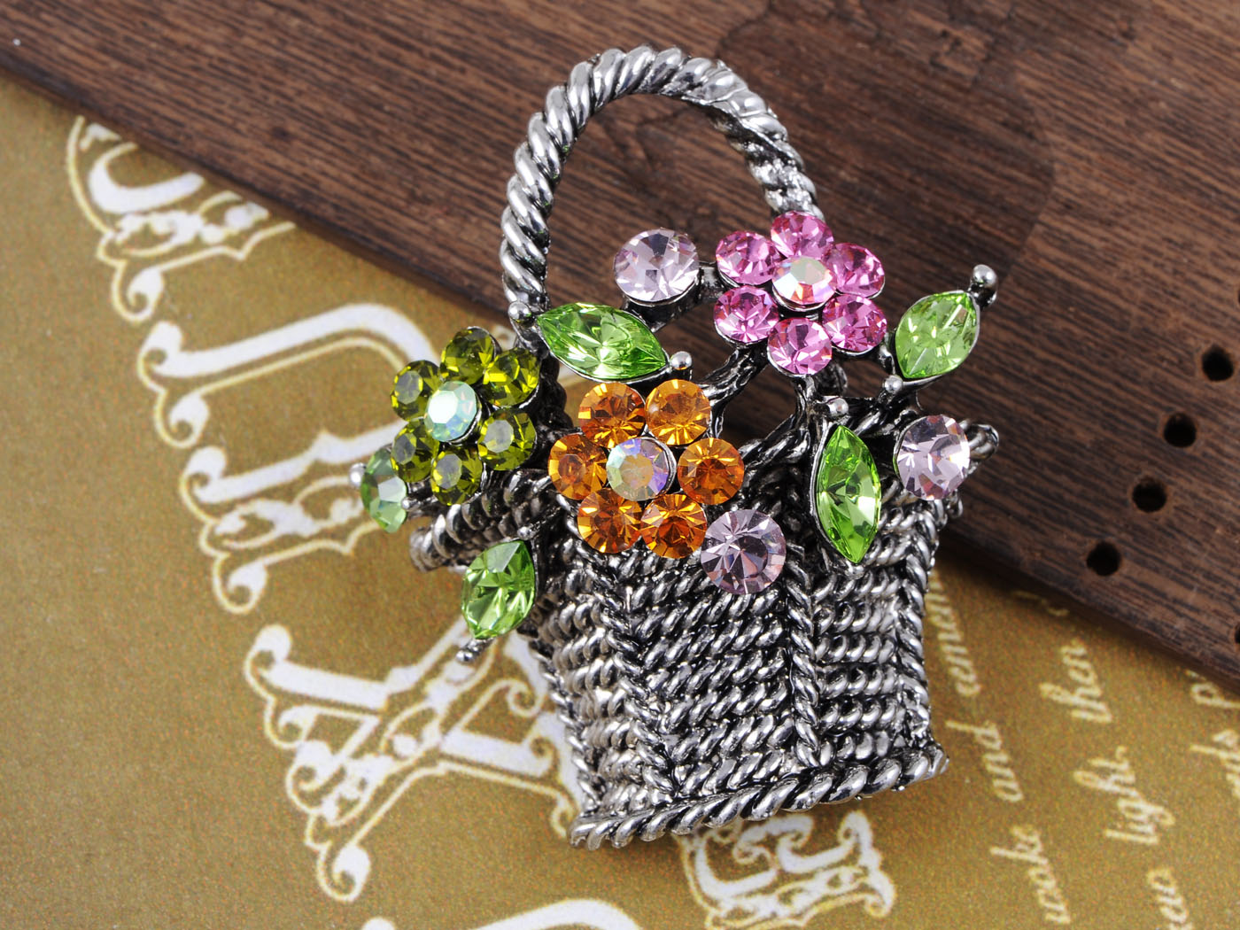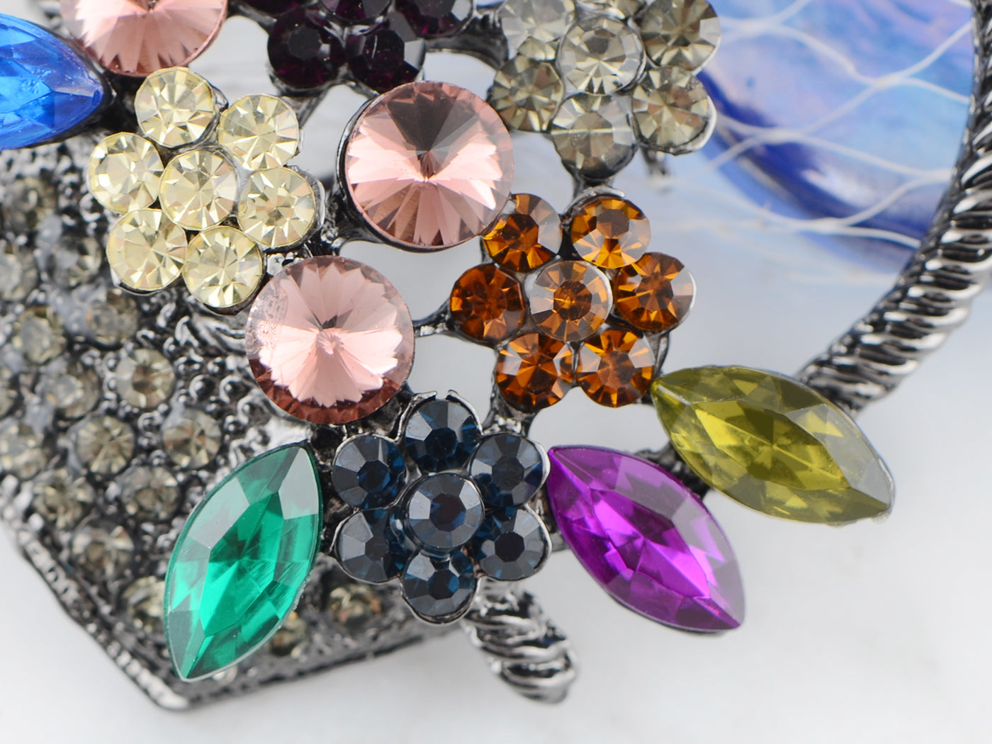 - UNIQUE DESIGN - This brooch featuring floral basket design with sparkly pink/ topaz/ green/ blue multicolored crystal rhinestones, and silvery/gunmetal tone metal alloy base.