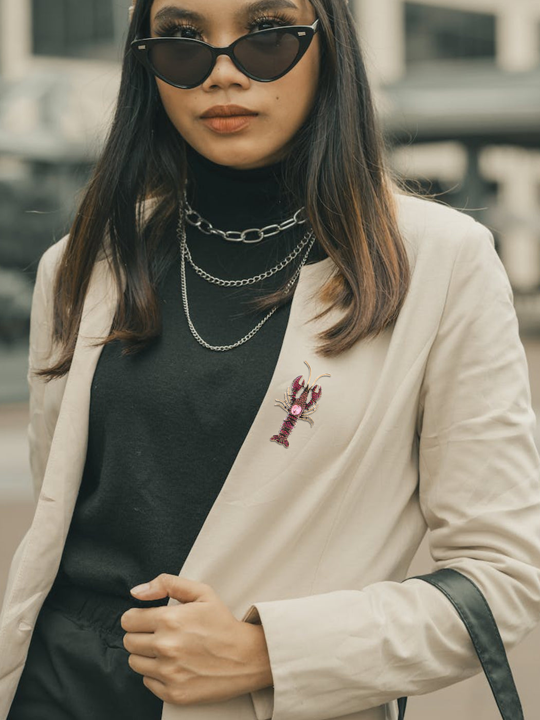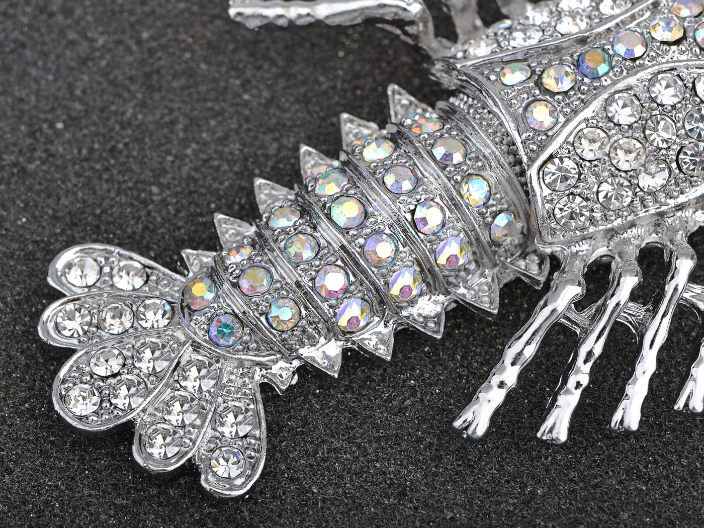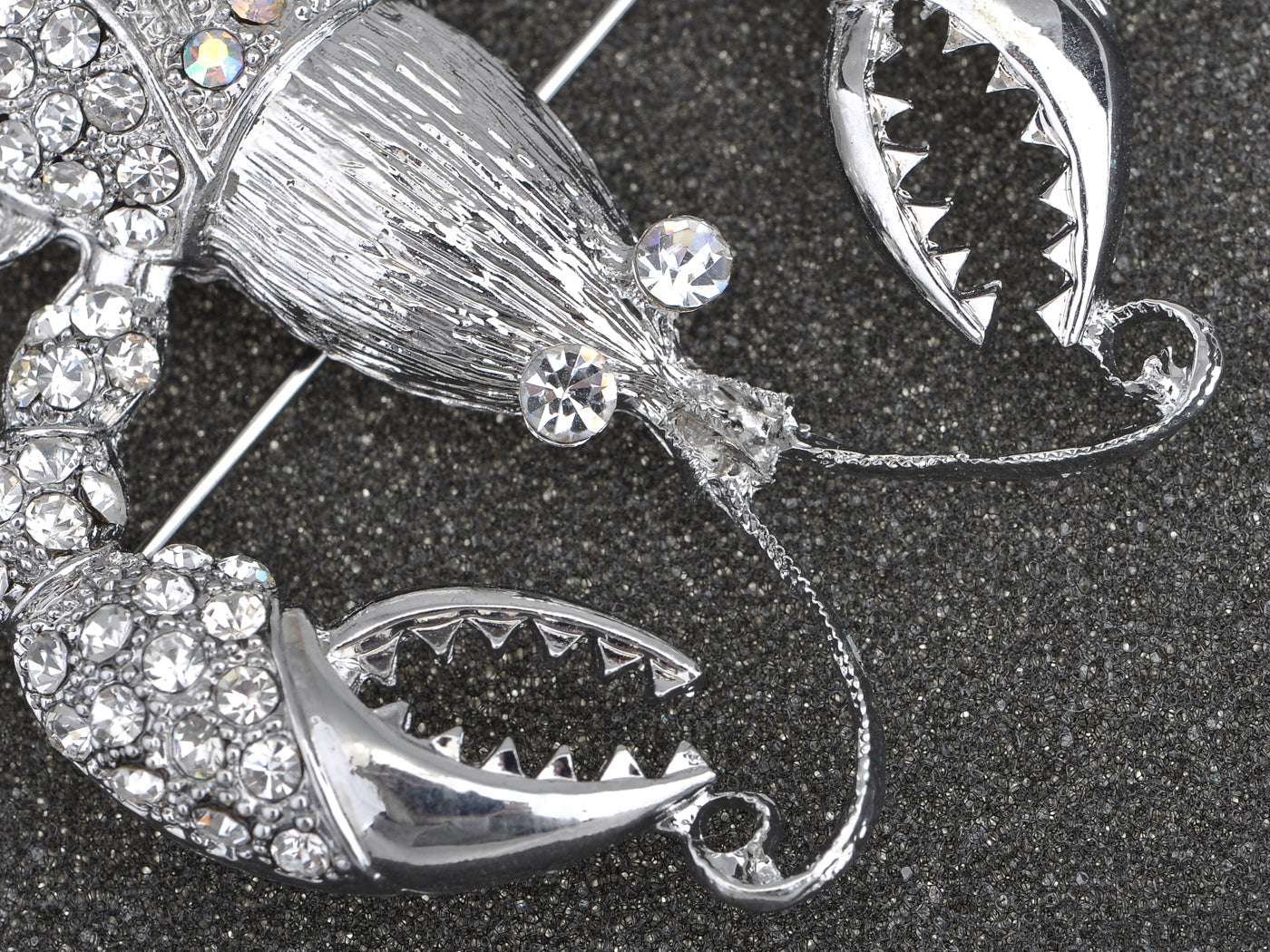 - FUN NOVELTY LOBSTER BROOCH. A fun little crustacean that\'s ready to chill with you regardless if you\'re near the ocean or not! Designed in a gorgeous silvery tone accent and covered in a number of aurora borealis and clear colored crystal rhinestones, thi