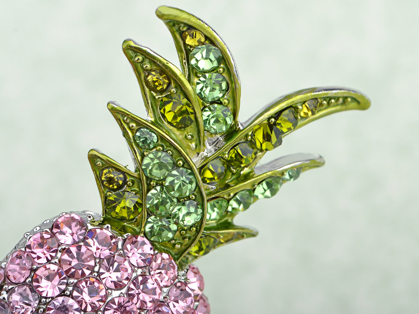 - CUTE ACCESSORY - This beautiful pineapple pin consists of multiple rhinestone colors including green, purple and clear, which makes it easy to wear with anything! You can wear this on your swimsuit at the beach, or which your blazer to work, either way th