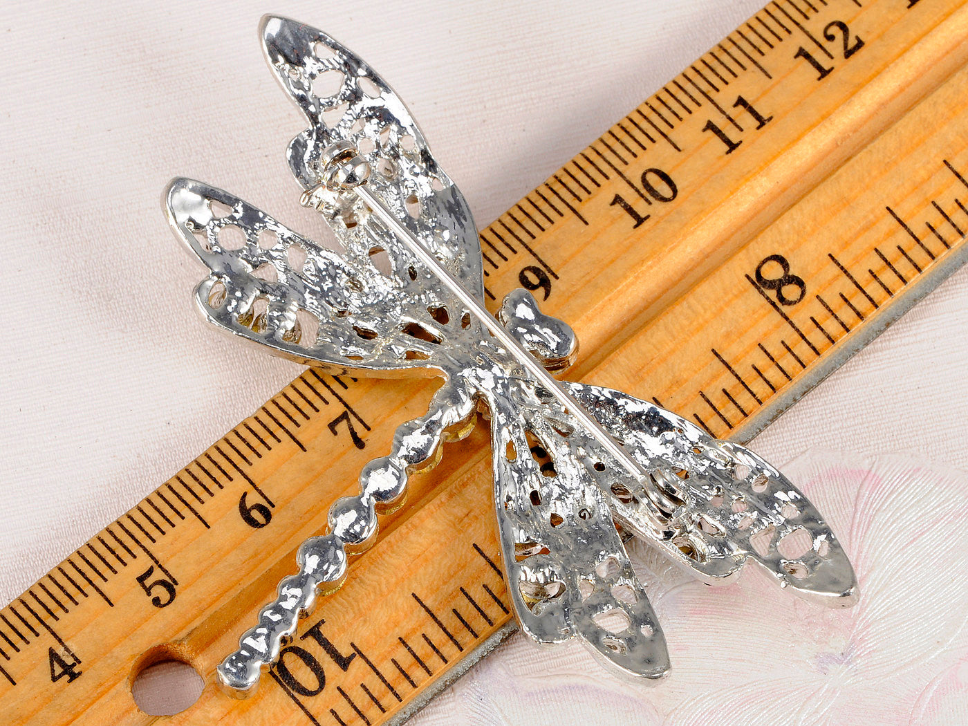 • UNIQUE DESIGN - Brooch featuring dragonfly design with clear crystal/black colored rhinestones.