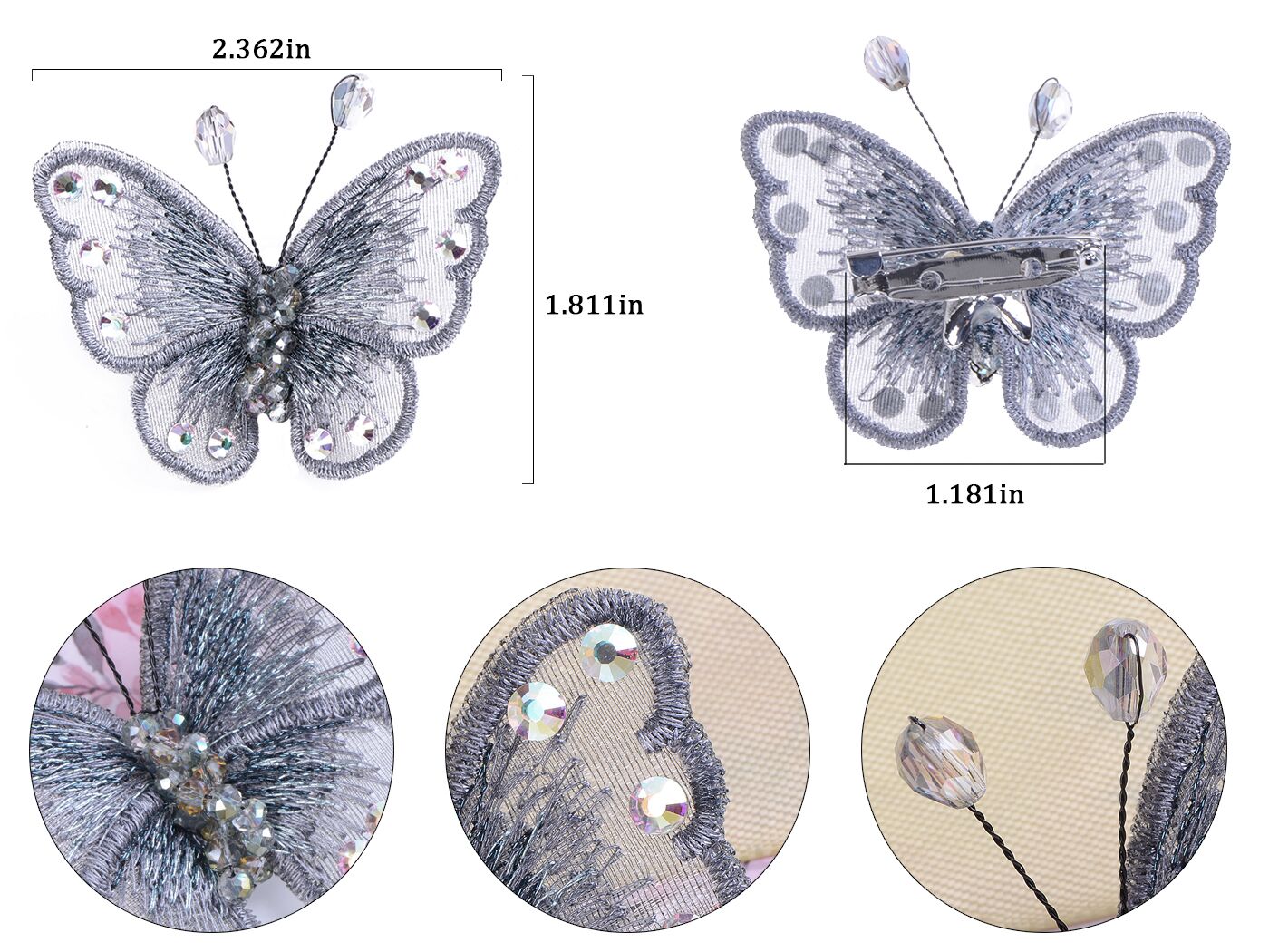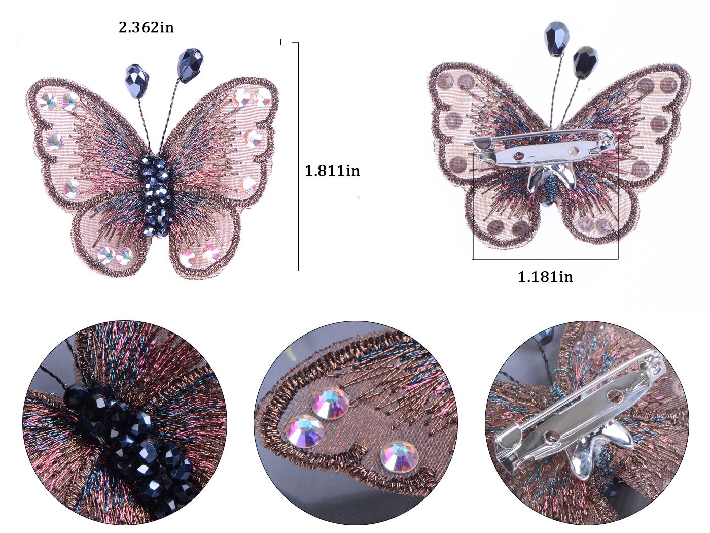 - BEAUTIFUL DESIGN - A unique butterfly pin like this is a must have! This brooch has the most beautiful details such as the embroidery and crystal rhinestones. It also comes in a beautiful brown and grey color.