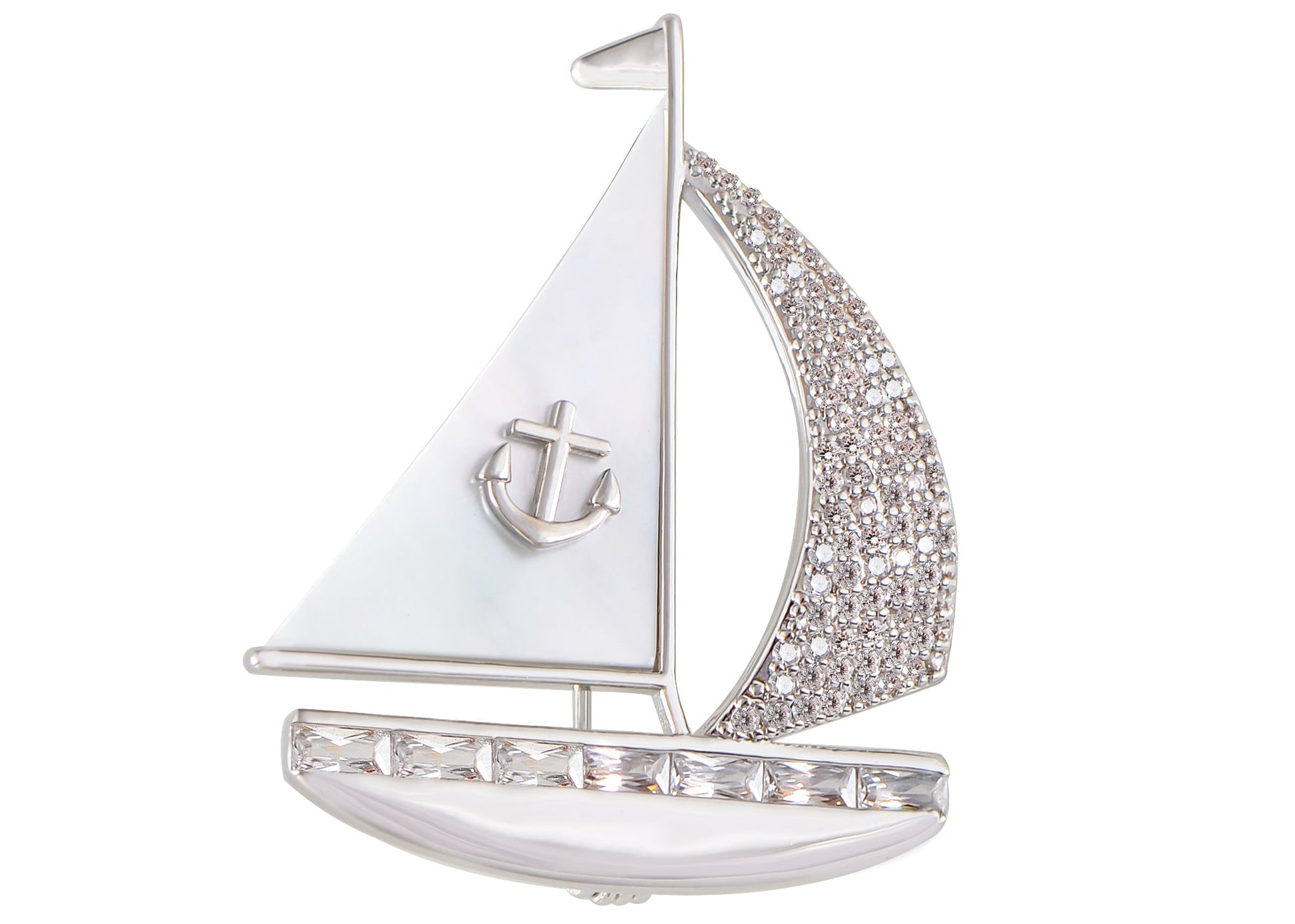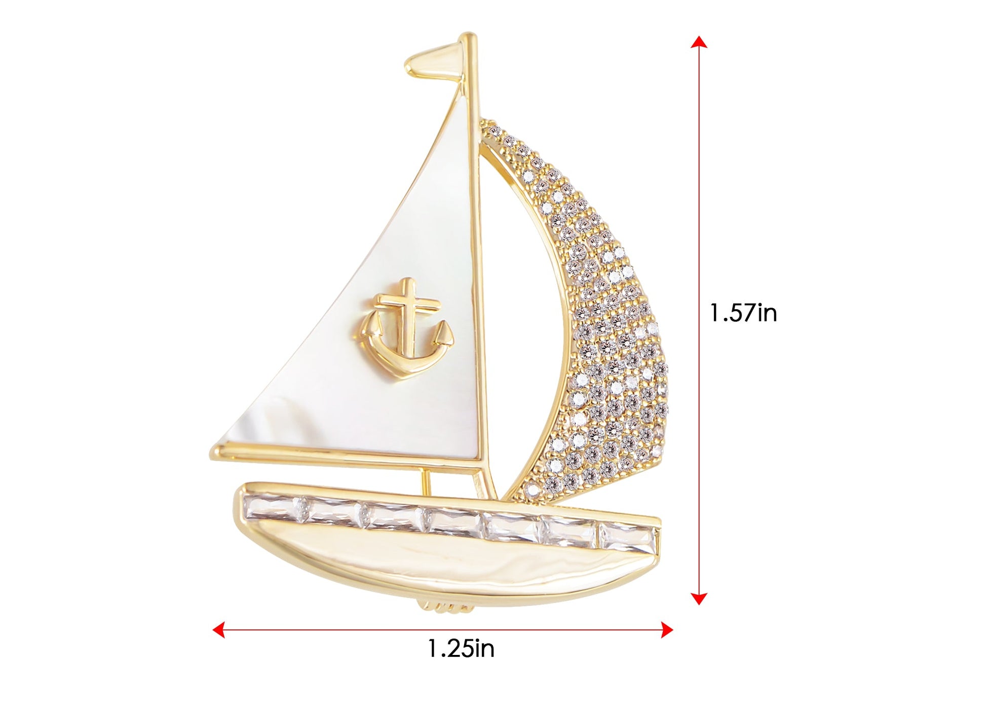 Crystal Rhinestone Sail Boat Brooch Pin - Nautical Sailor Navy Rudder Sailboat Anchor Sea Anchor Accessories Brooch