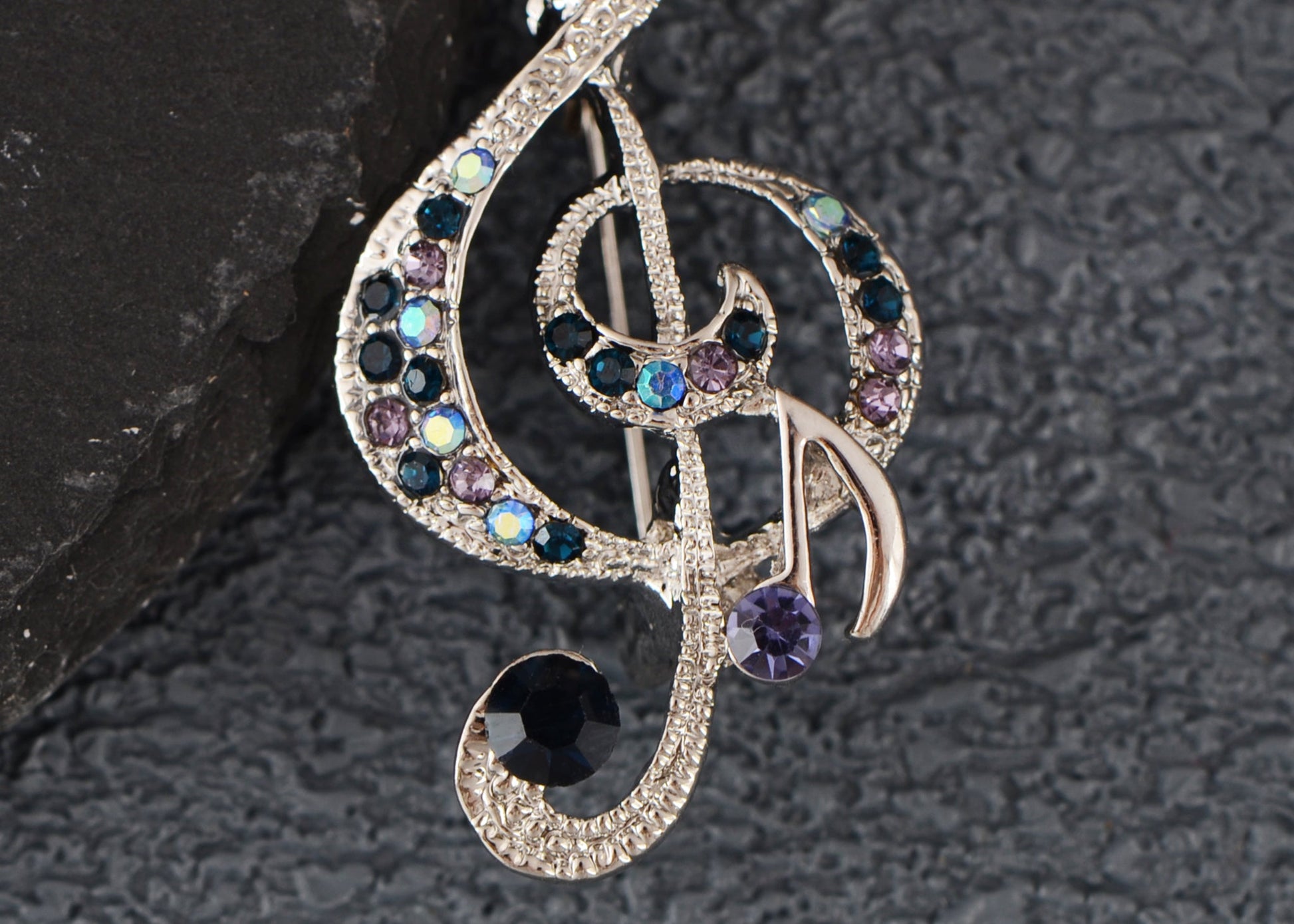 Elegant Design: This brooch features a beautiful Music treble clef design adorned with sparkling rhinestones, perfect for adding a touch of glamour to any outfit.