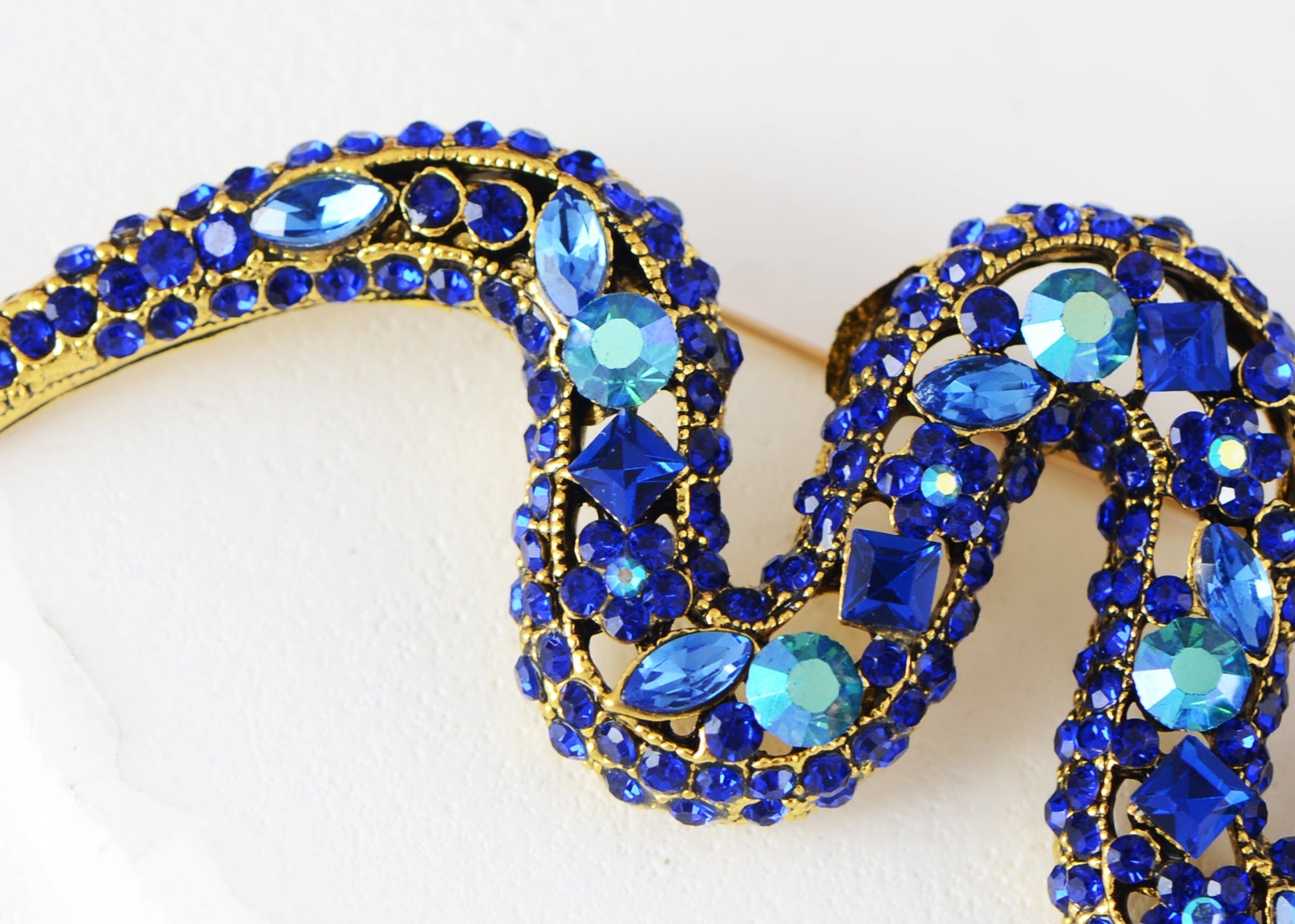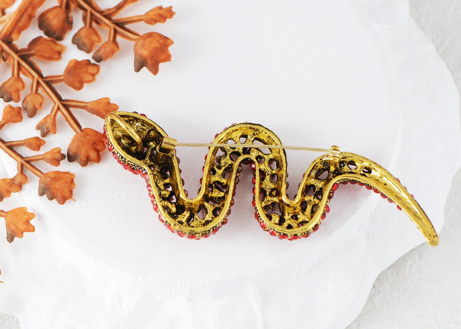 Rhinestone-Embellished Snake: This brooch is intricately designed with sparkling rhinestones and gemstones, creating a bold and glamorous look for your costume or outfit