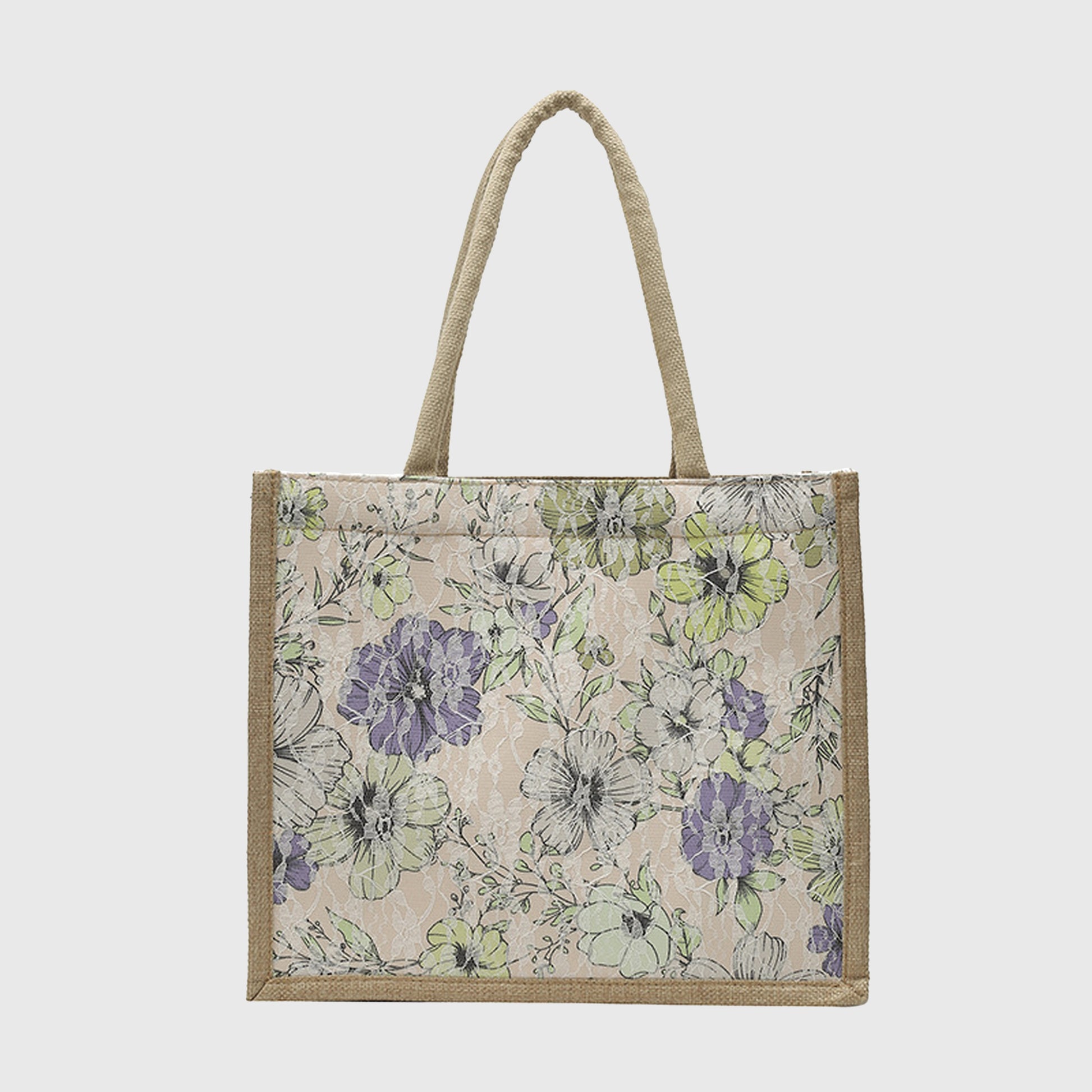 Floral Linen-Polyester Tote Bag-Lightweight Floral Print Shopping Bag