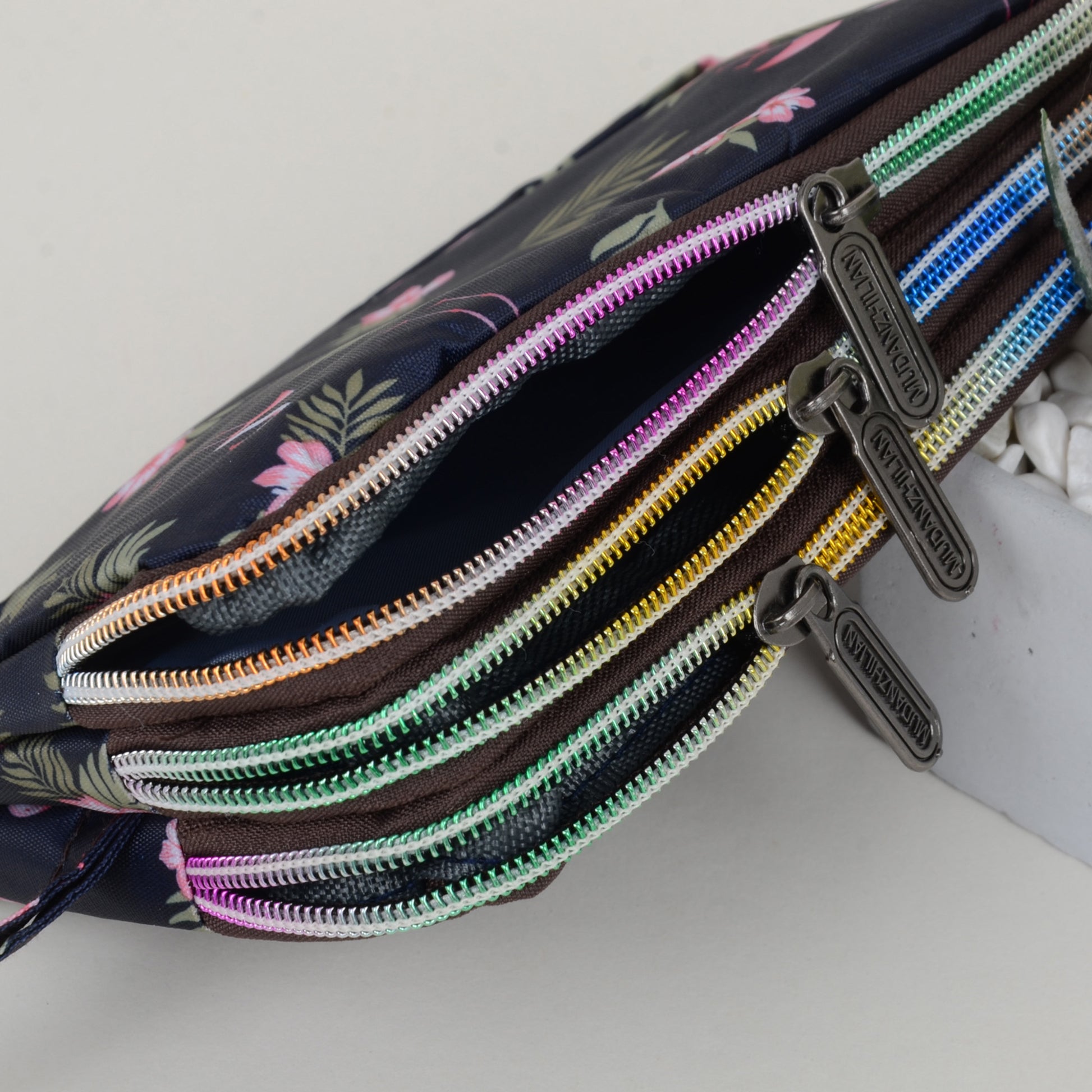 Floral Print Multi-Zip Nylon Wristlet Handbag