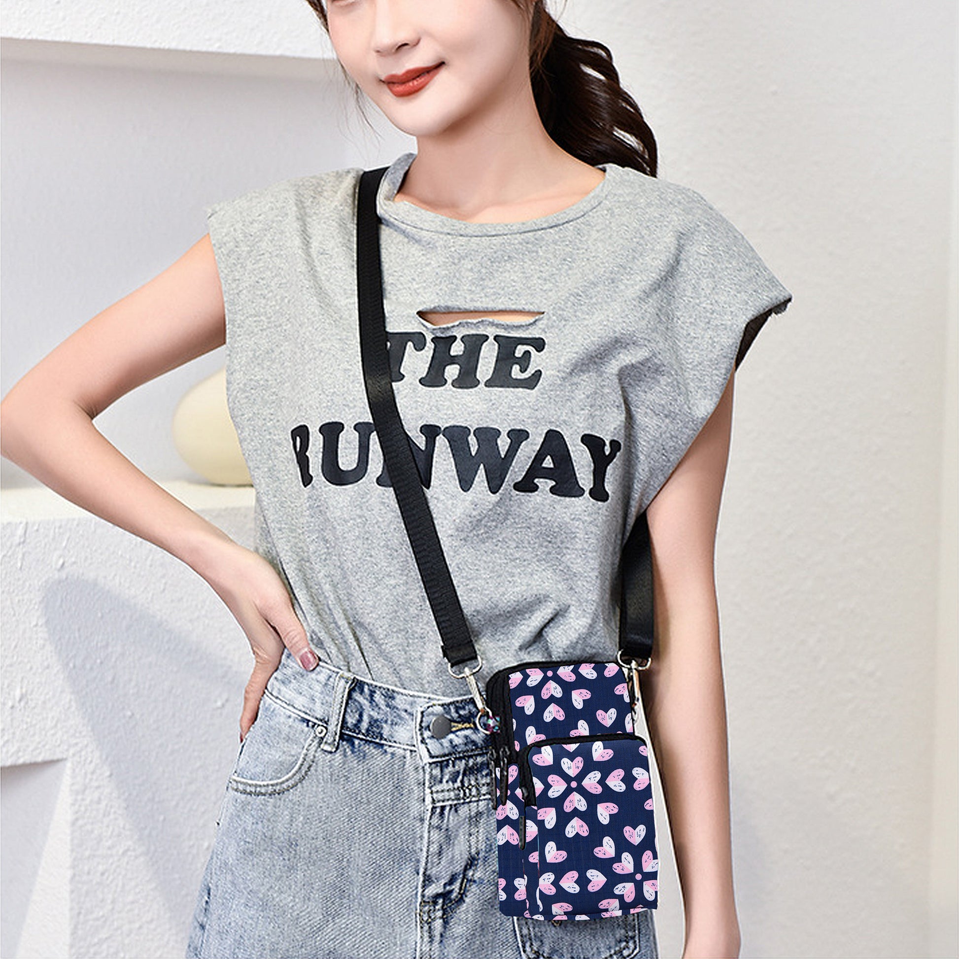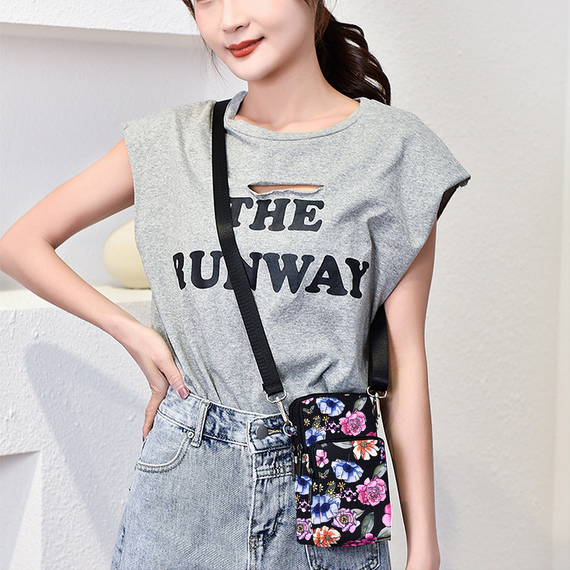 Floral Oxford Cloth Crossbody Bag-Lightweight Compact Shoulder Purse