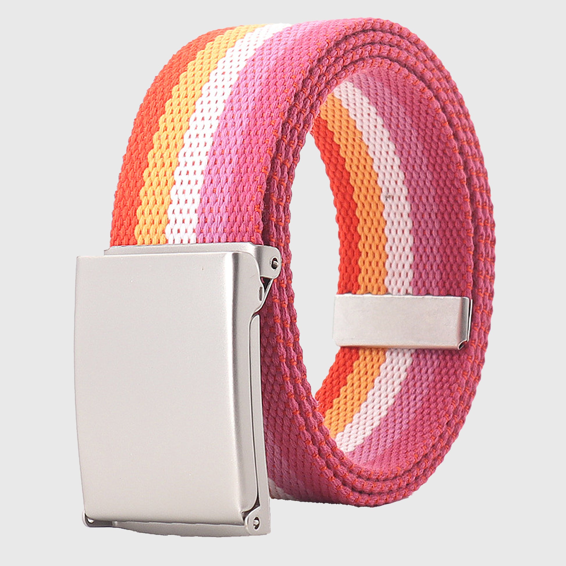 Colorful Striped Canvas Belt with Silver Buckle