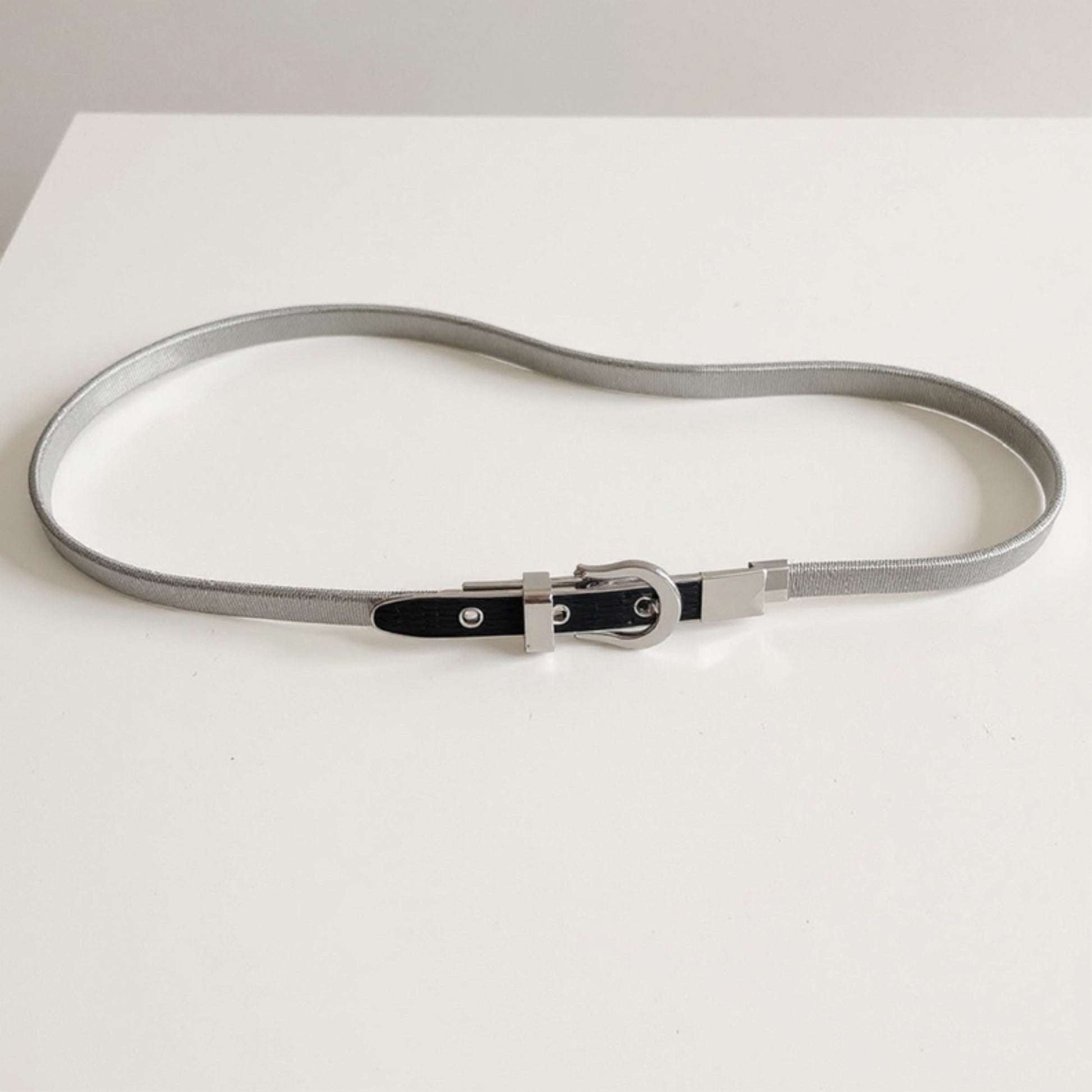 The Anna-Kaci Women's Slim Metallic Belt with Adjustable Buckle and Faux Leather Accents offers a refined, modern touch to any outfit. Designed with a sleek metallic band, this belt features subtle faux leather detailing near the buckle for added contrast and sophistication. Its slim design creates a flattering silhouette that complements dresses, skirts, and high-waisted trousers. Perfect for adding polish to both casual and formal ensembles, this belt is a timeless wardrobe staple.