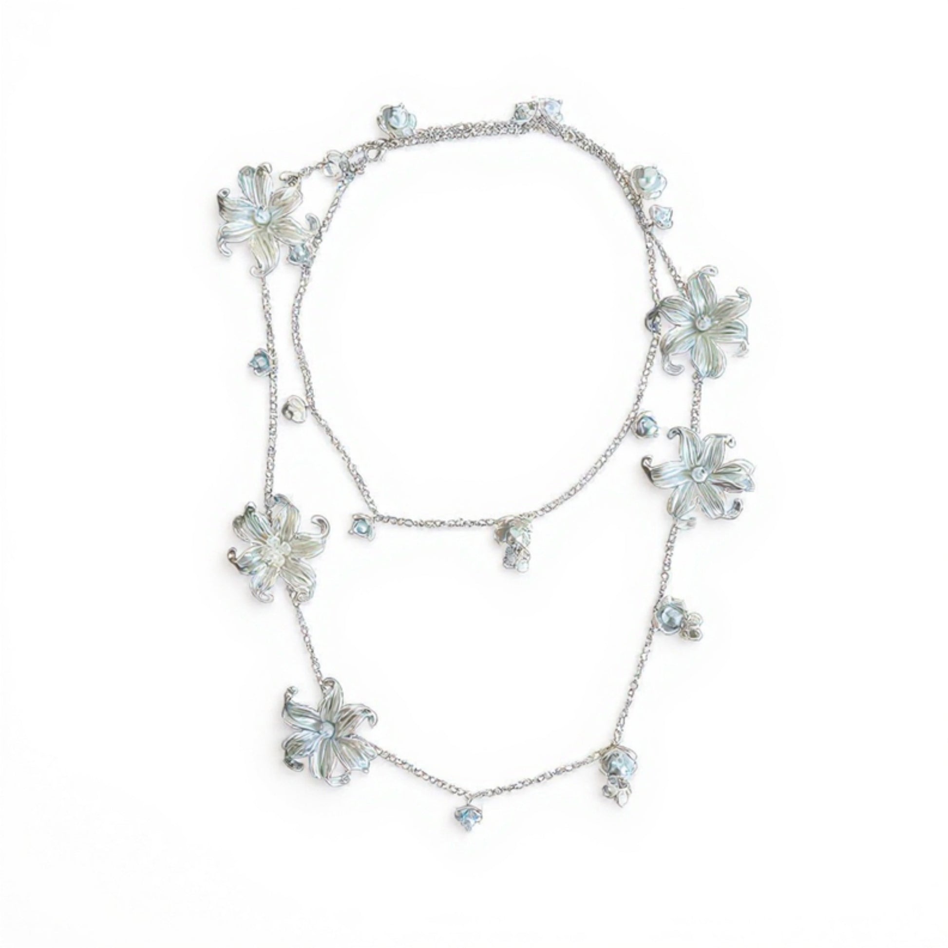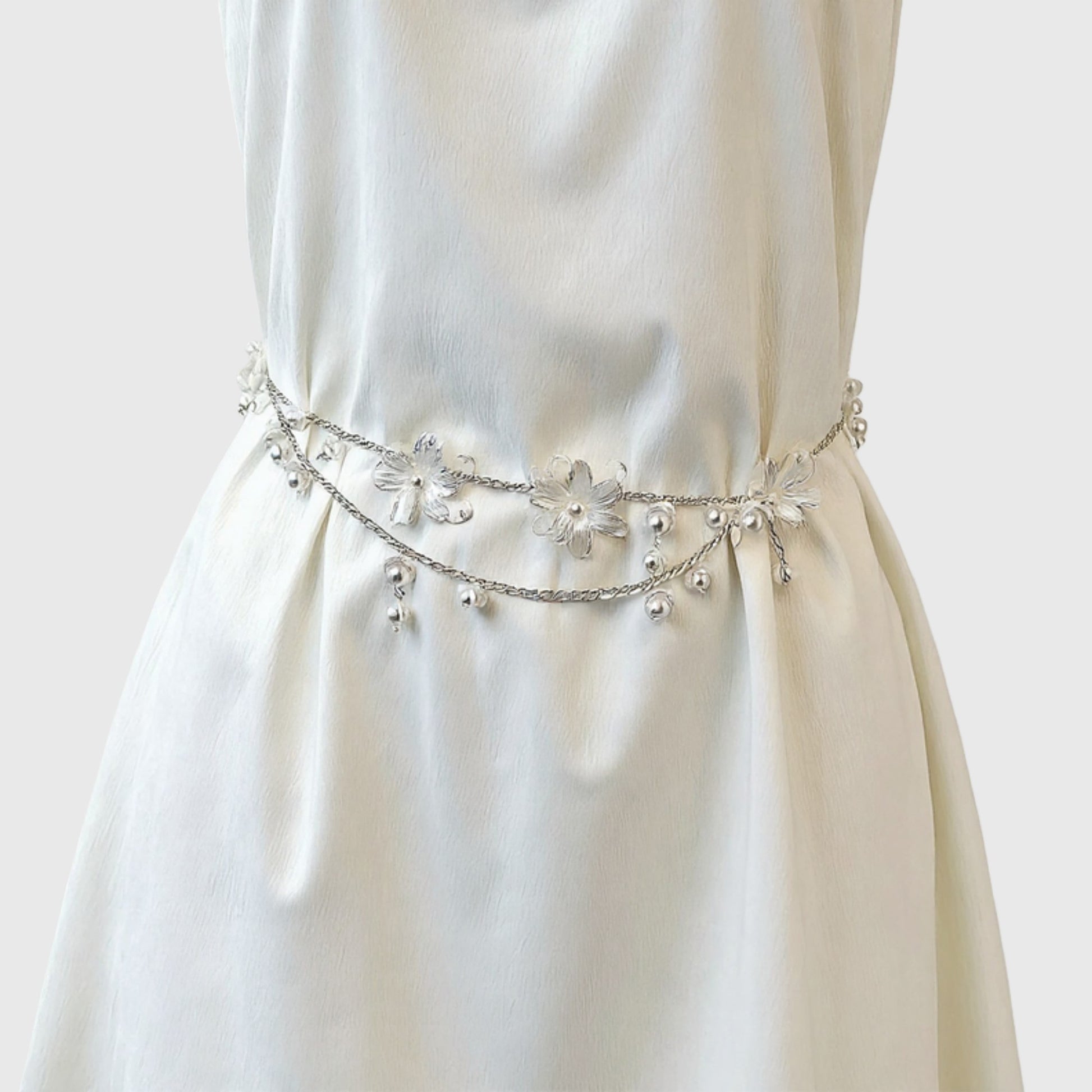 Floral Metal Chain Belt with Faux Pearl Drop Details and Adjustable Fit 45.5in