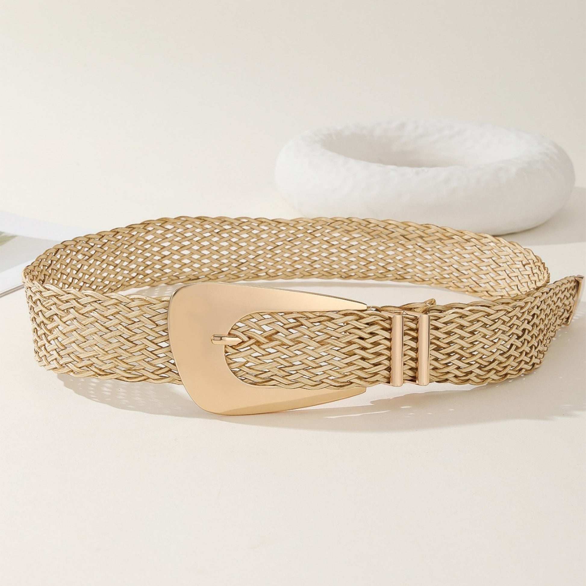 The Anna-Kaci Women's Woven Belt with Oversized Buckle and Textured Weave Design combines bold craftsmanship with effortless style. Its intricate weave pattern and statement buckle create a flattering accent for dresses, skirts, or high-waisted pants. Adjustable for the perfect fit, this belt enhances your silhouette while adding a natural, bohemian-inspired charm. Ideal for elevating everyday or special occasion looks.