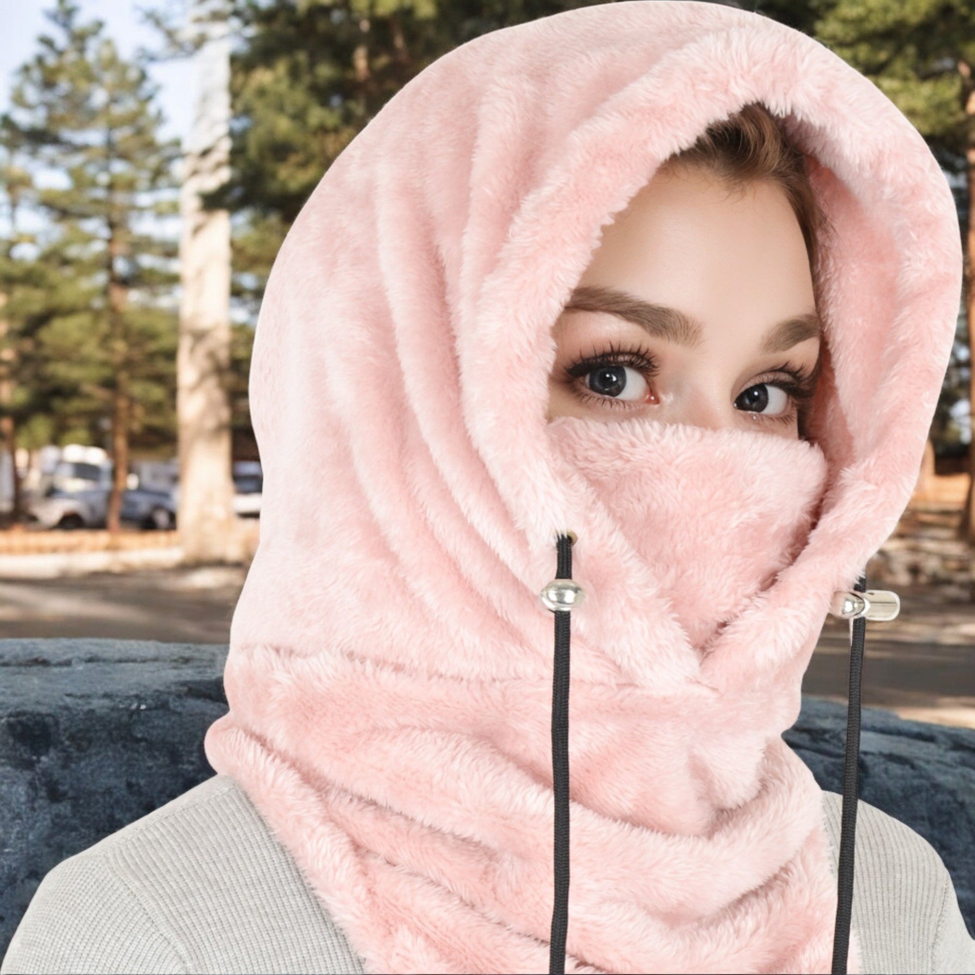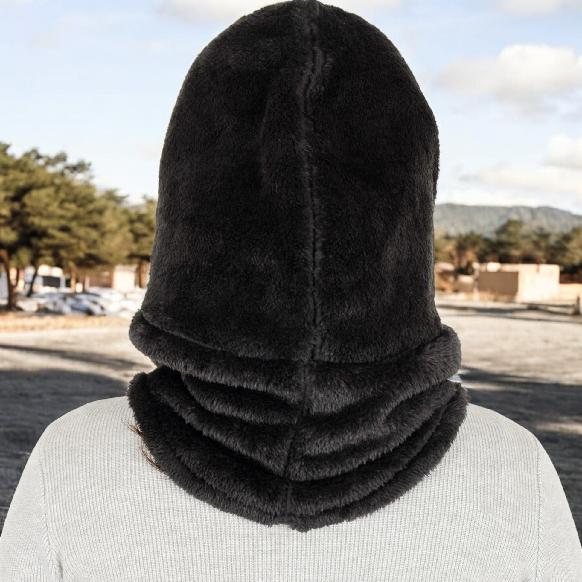 This versatile faux shearling hooded scarf combines warmth and practicality for cold-weather protection. Its plush fabric feels soft against the skin, while the extended neck design ensures optimal coverage to shield you from chilly winds. The adjustable drawstrings offer a customizable fit, making it ideal for layering over your favorite winter outfits. Designed for both comfort and style, this hooded scarf is perfect for outdoor activities, daily commutes, or casual winter outings. Stay cozy and chic throughout the season with this functional yet fashionable accessory.