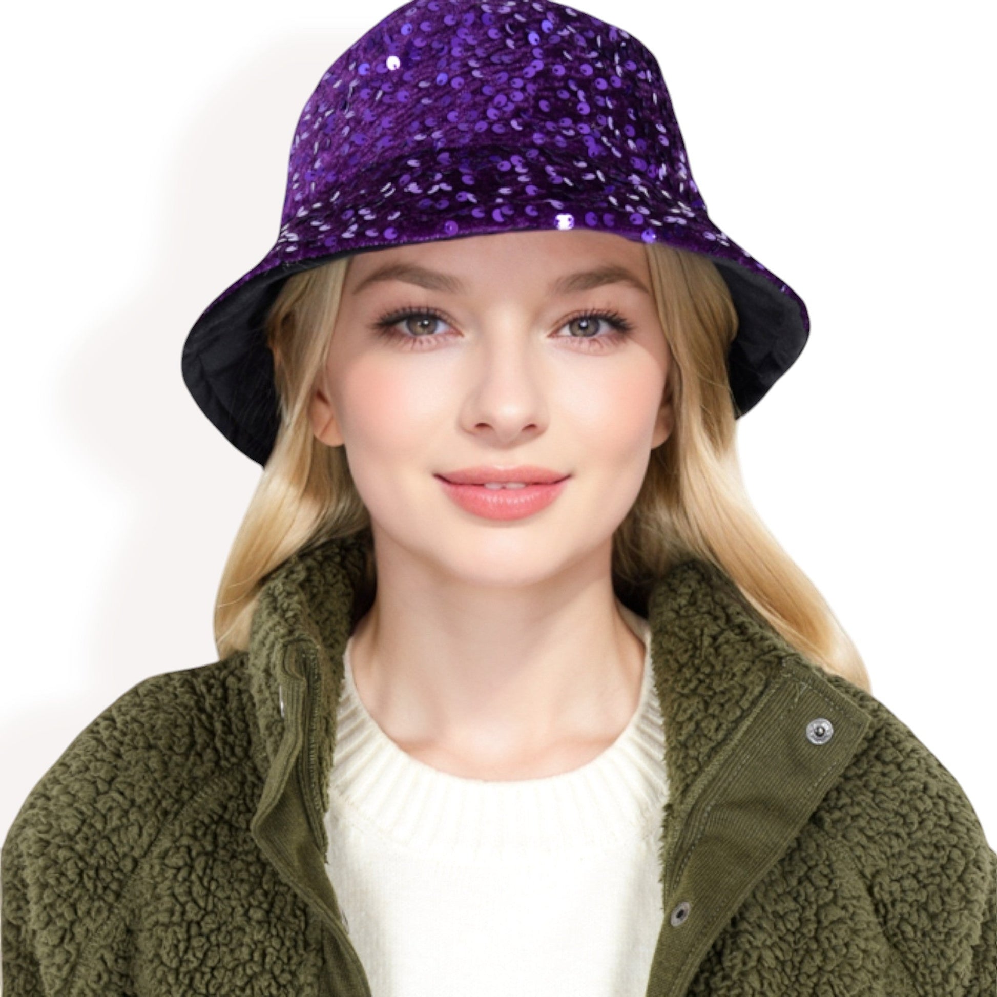Sequin Bucket Hat with Sparkling Design and Reversible Feature for Stylish Casual or Party Looks