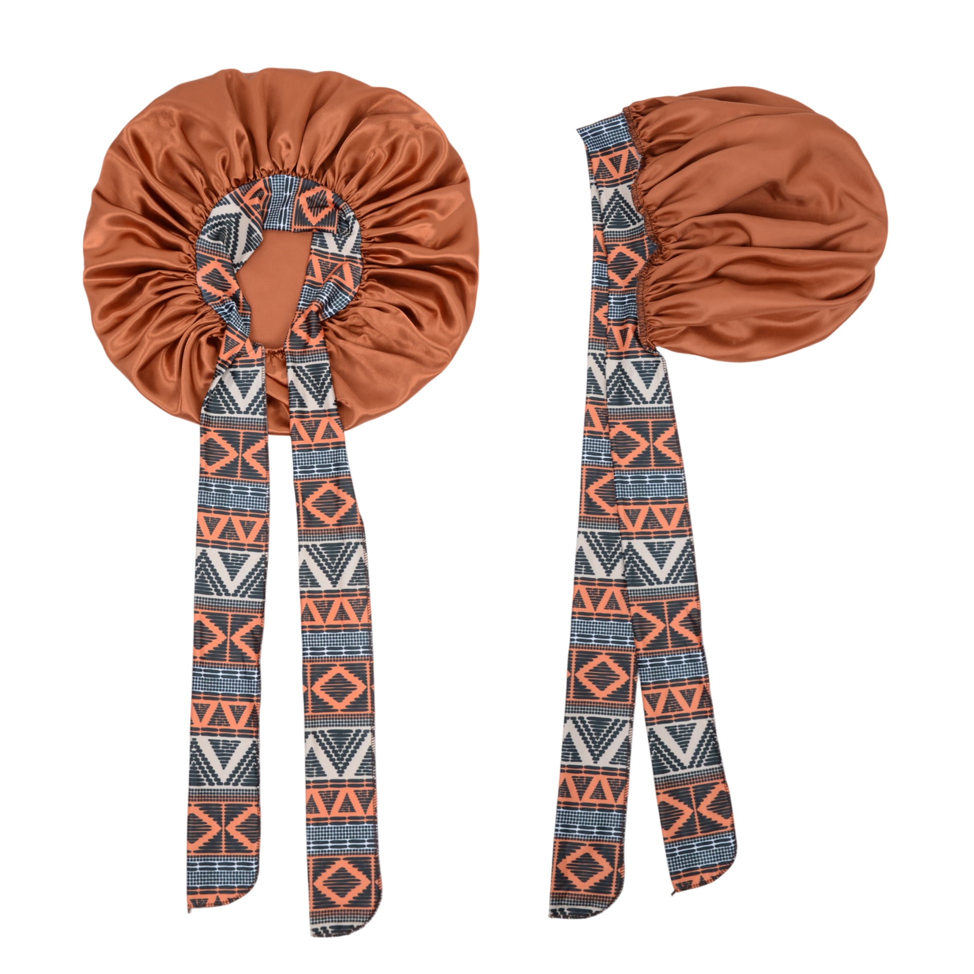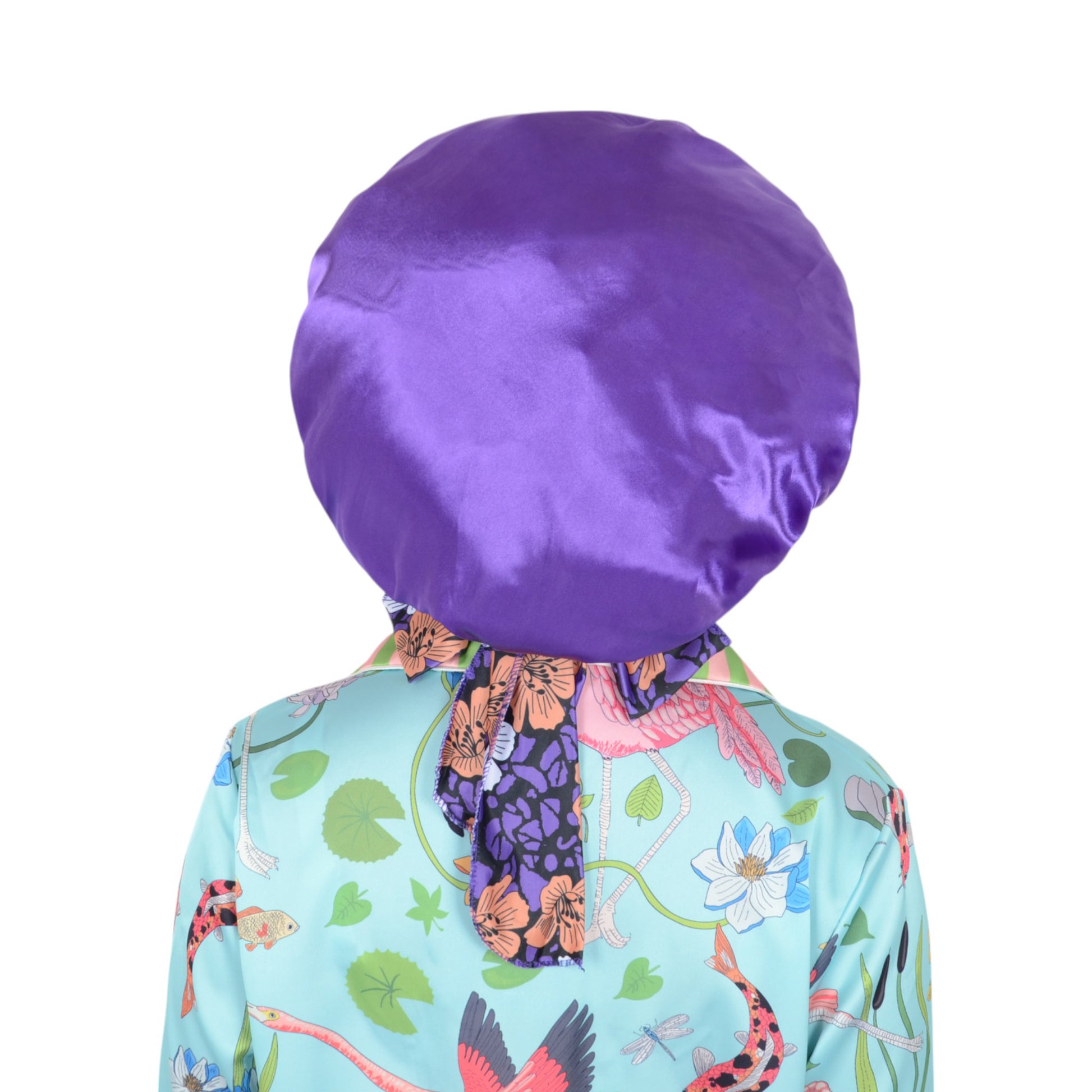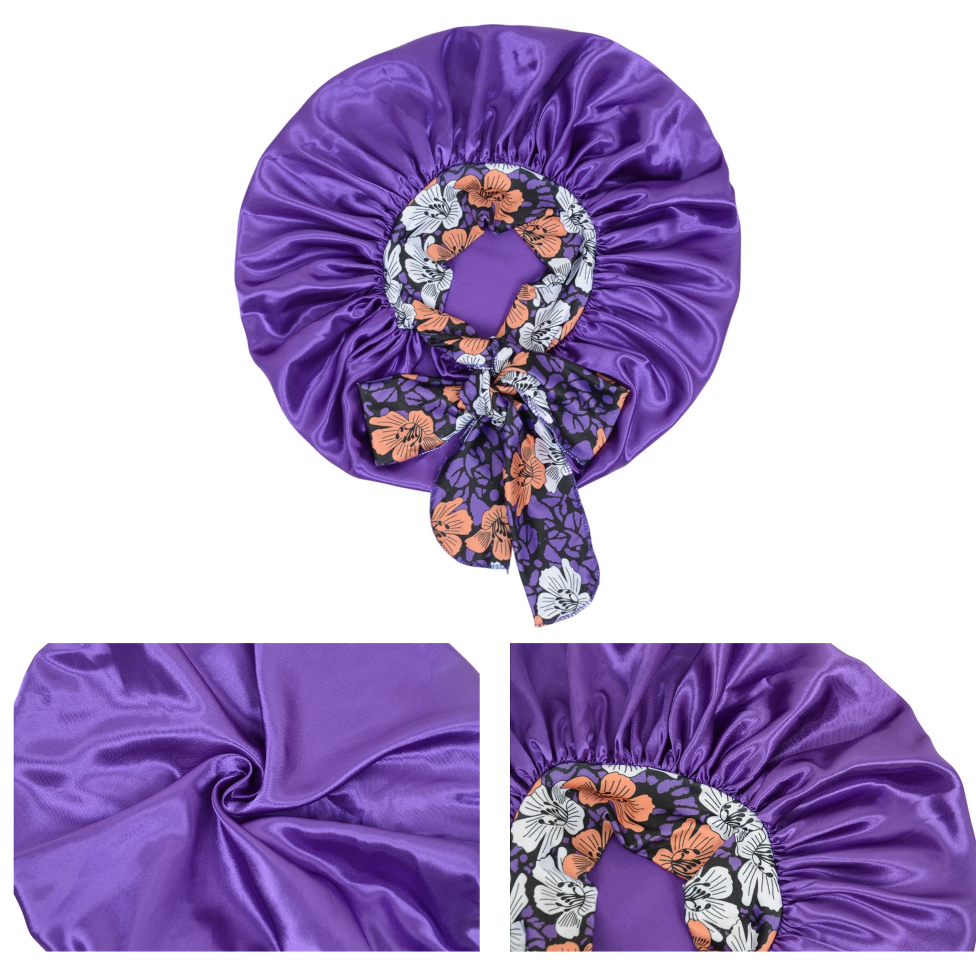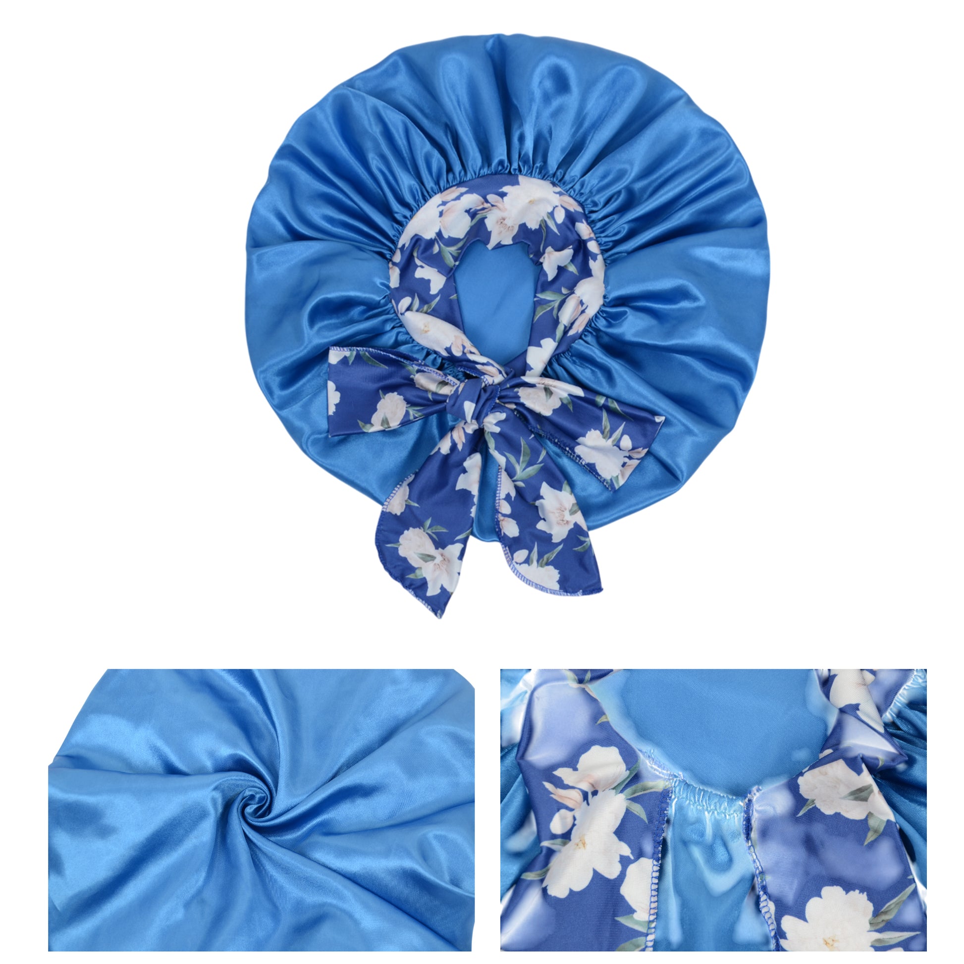 The Satin Hair Bonnet features a stylish floral tie band, providing a secure and adjustable fit. Made from silky satin fabric, it reduces friction, preventing frizz and breakage while retaining moisture for healthy curls. This lightweight and breathable bonnet is perfect for protecting all hair types overnight. Maintain beautiful, tangle-free hair every morning with this chic and functional satin sleep bonnet.