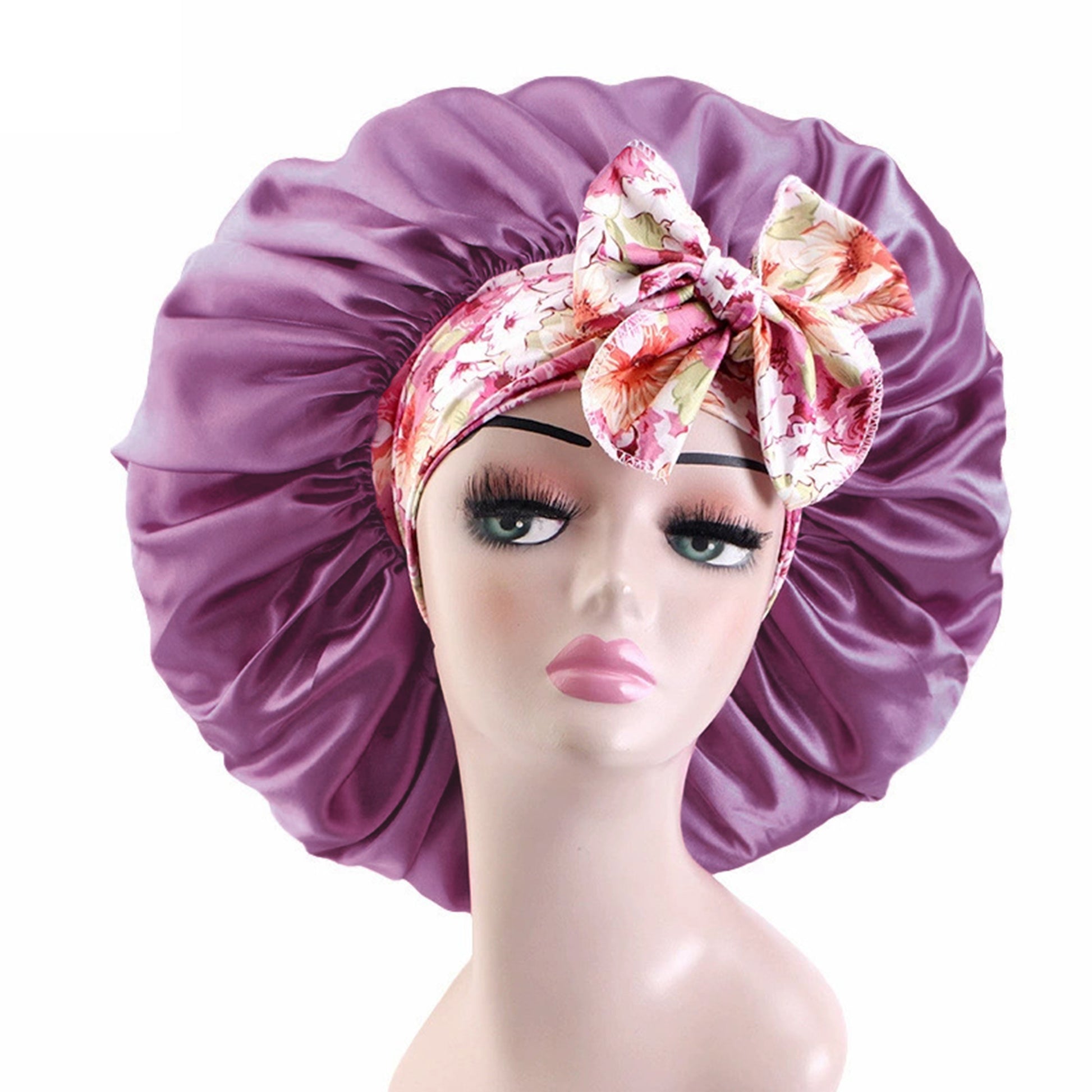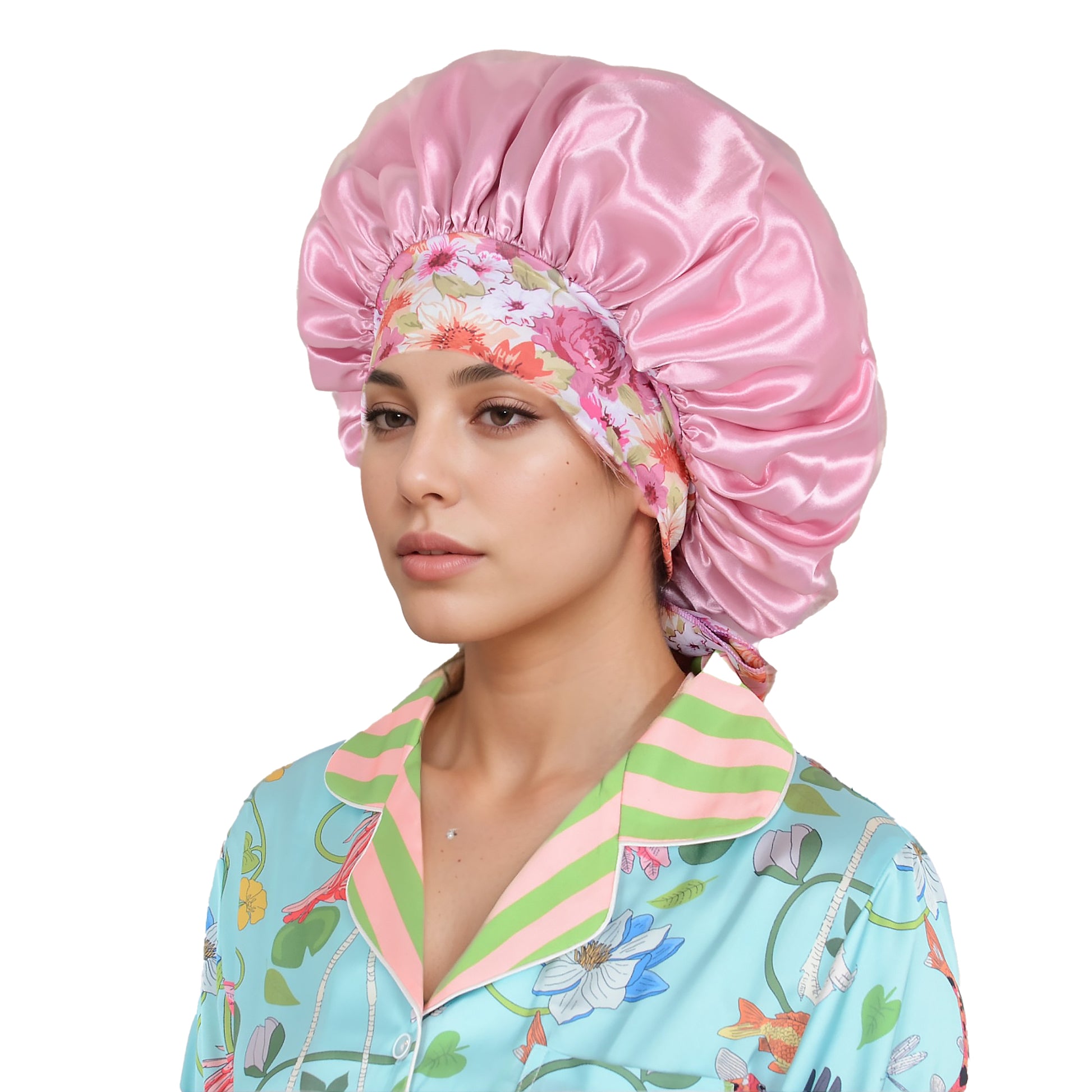 Women Silk Bonnet for Sleeping Satin Lined Hair Bonnet with Floral Tie Band for Curly Hair Protection