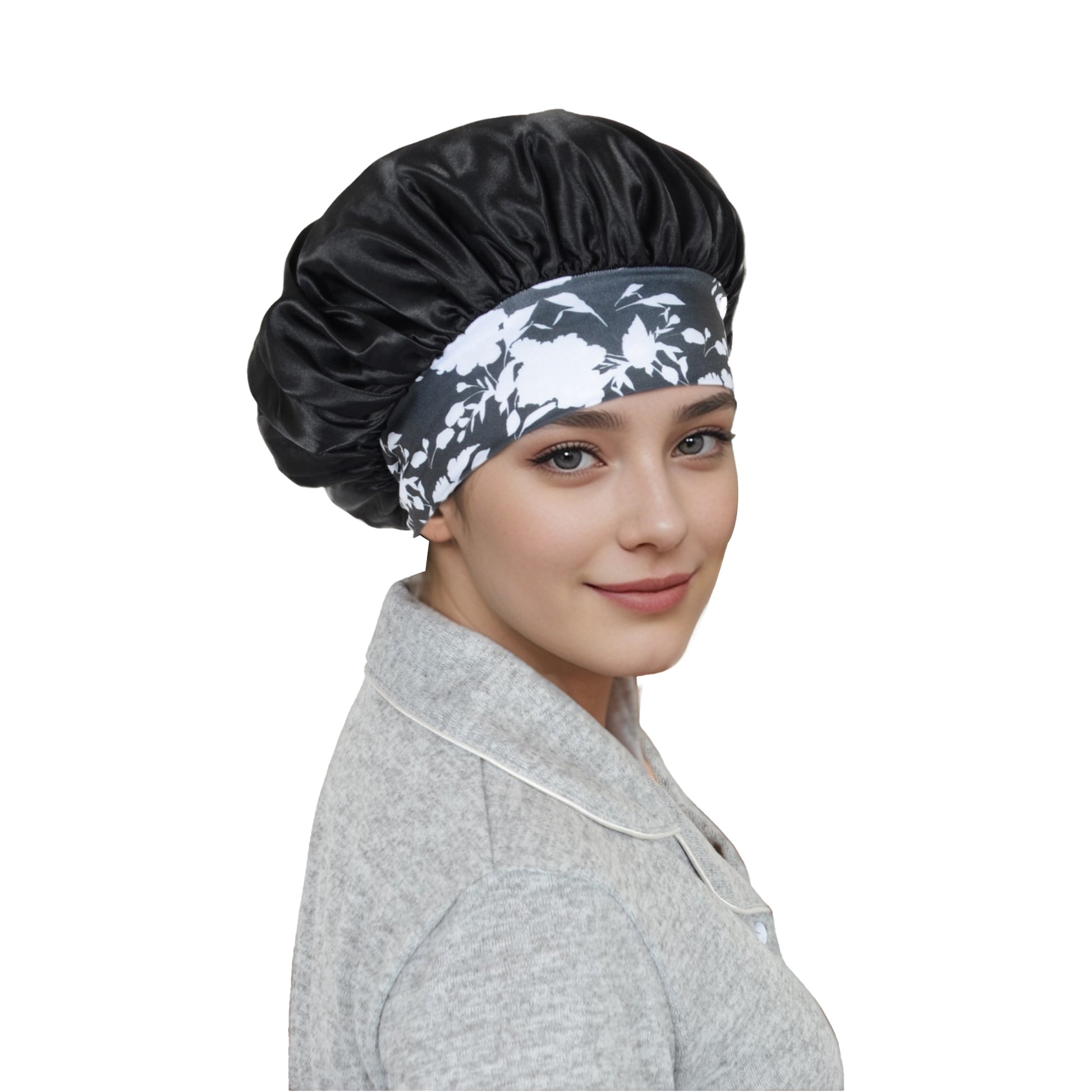 Women Silk Bonnet for Sleeping Satin Hair Bonnet with Floral Elastic Band for Hair Protection