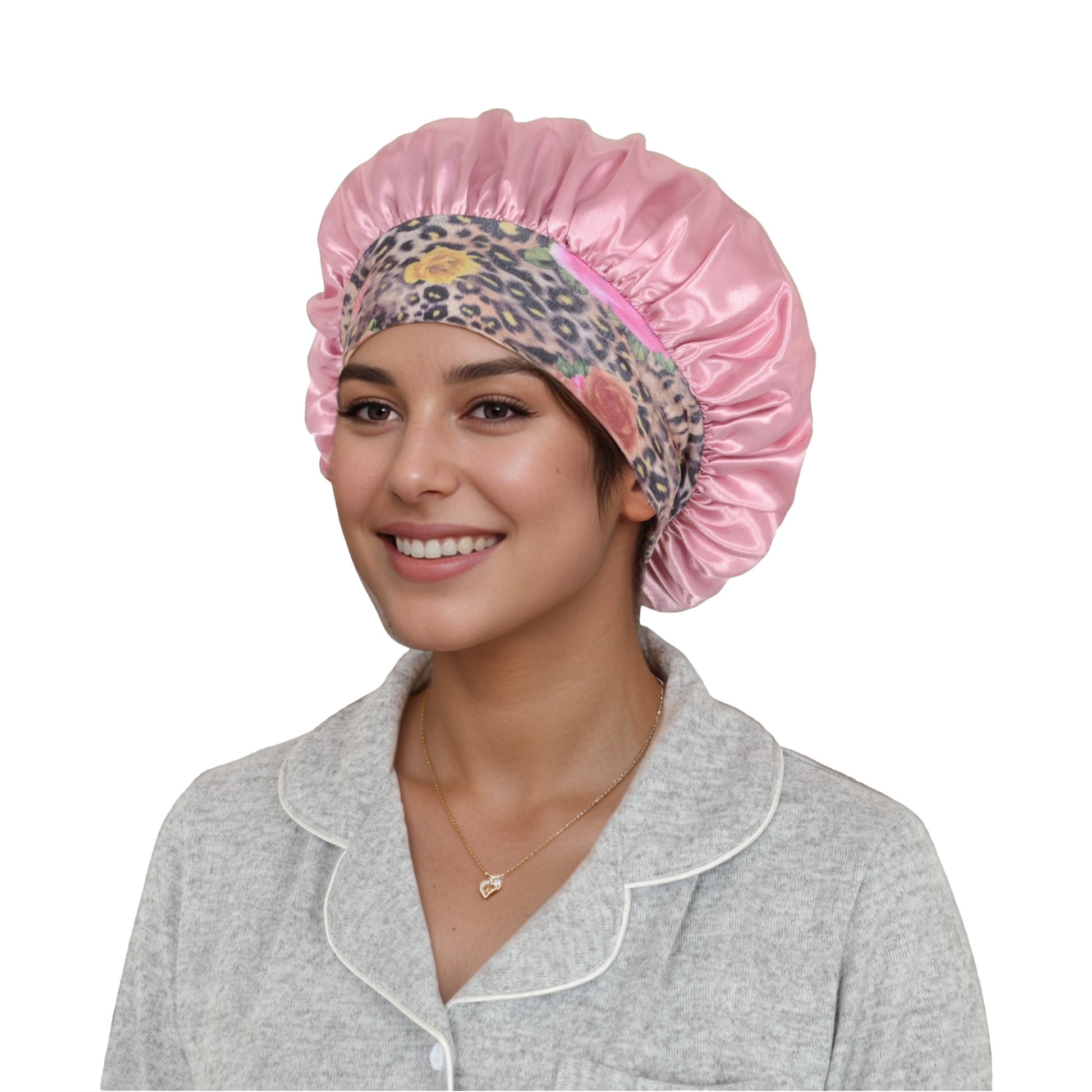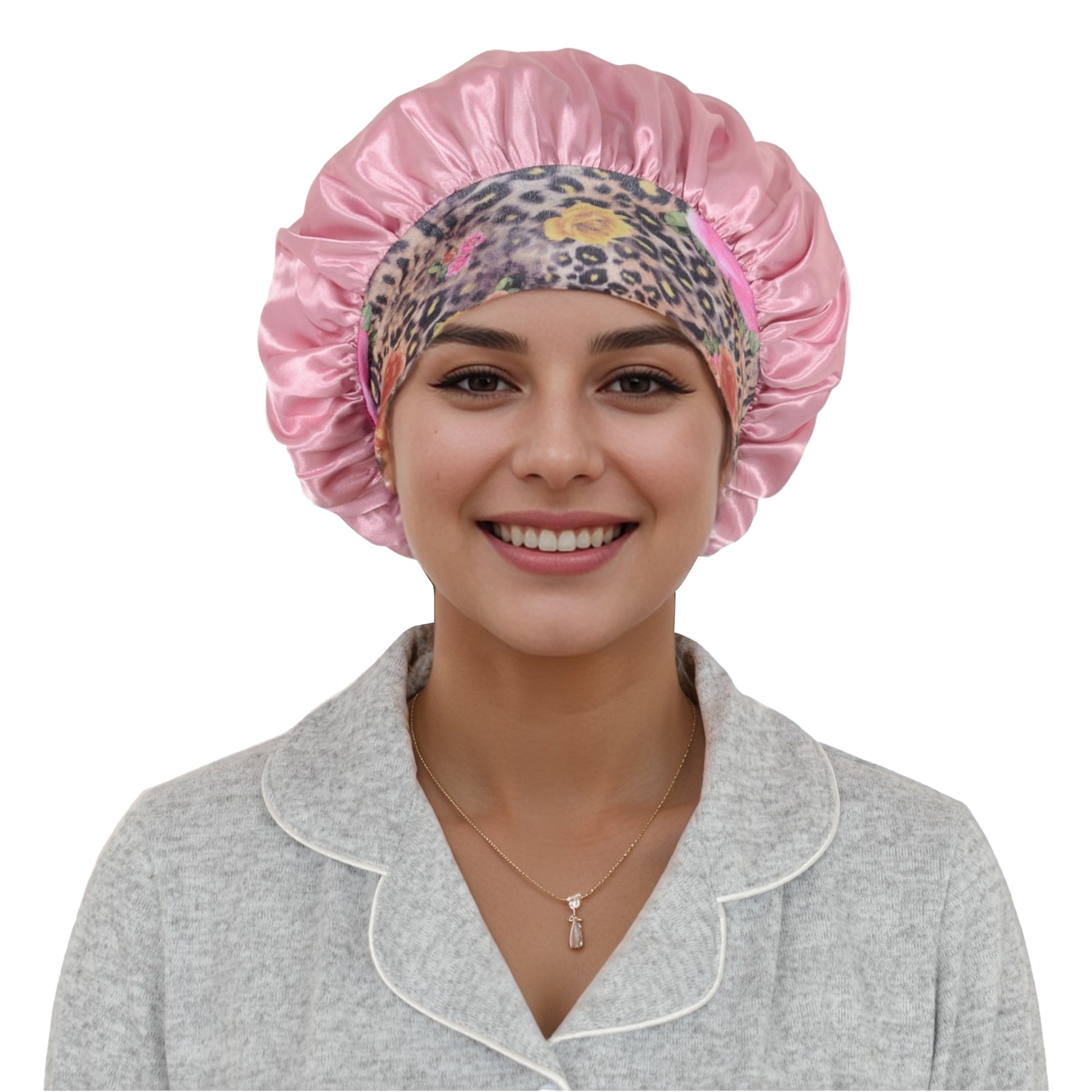 Satin Hair Bonnet features a vibrant floral elastic band for a secure and comfortable fit. Made from silky satin fabric, it minimizes friction, preventing frizz and breakage while retaining moisture for healthy curls. This lightweight and breathable bonnet protects all hair types overnight, ensuring smooth, tangle-free hair every morning. Stay stylish and maintain beautiful hair with this chic satin sleep bonnet.
