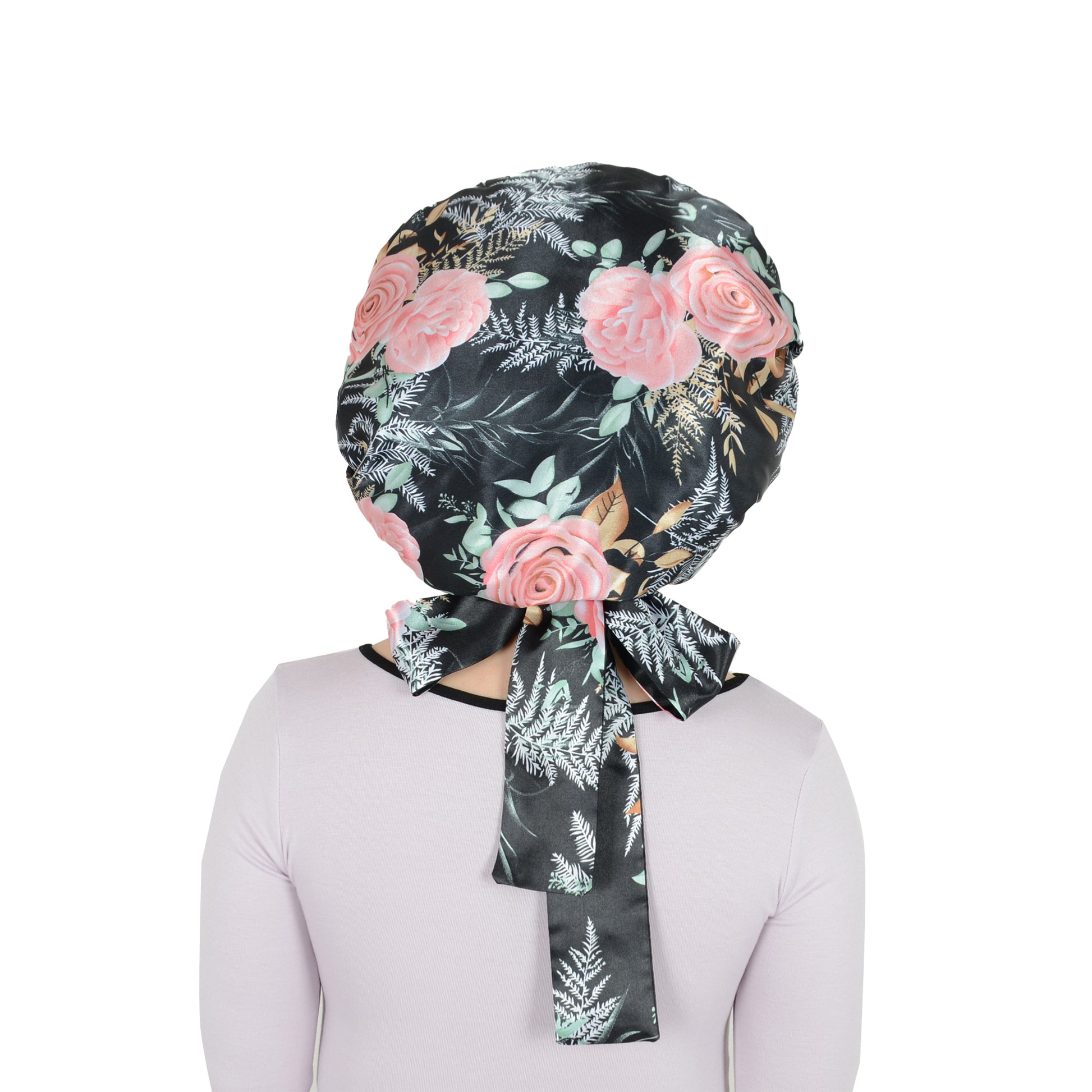 Women Silk Bonnet for Sleeping Satin Hair Bonnet with Floral Print and Long Tie Band