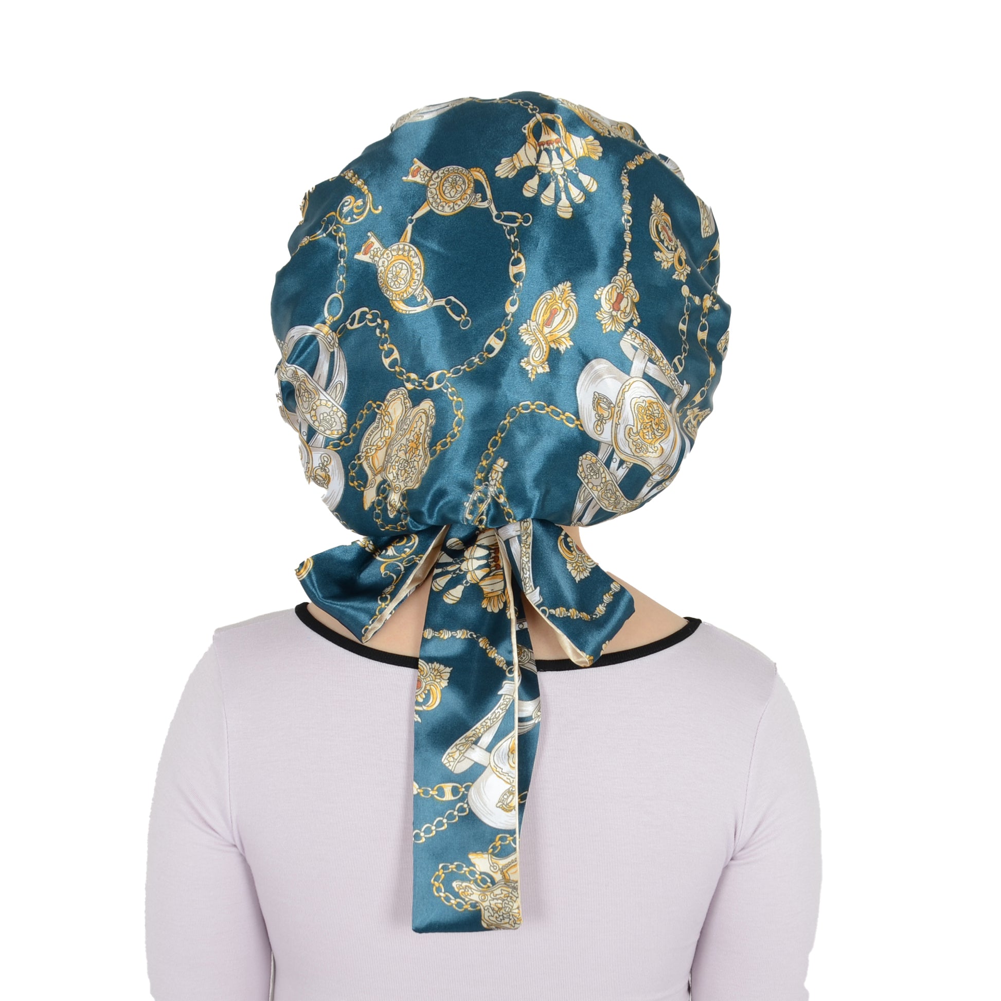 Satin Hair Bonnet features a beautiful floral print and an extra-long tie band for a customizable and secure fit. Crafted from silky satin fabric, it reduces friction, preventing frizz and breakage while preserving hair moisture. This lightweight and breathable bonnet is perfect for all hair types, keeping hairstyles intact overnight. Wake up with smooth, tangle-free hair every morning.