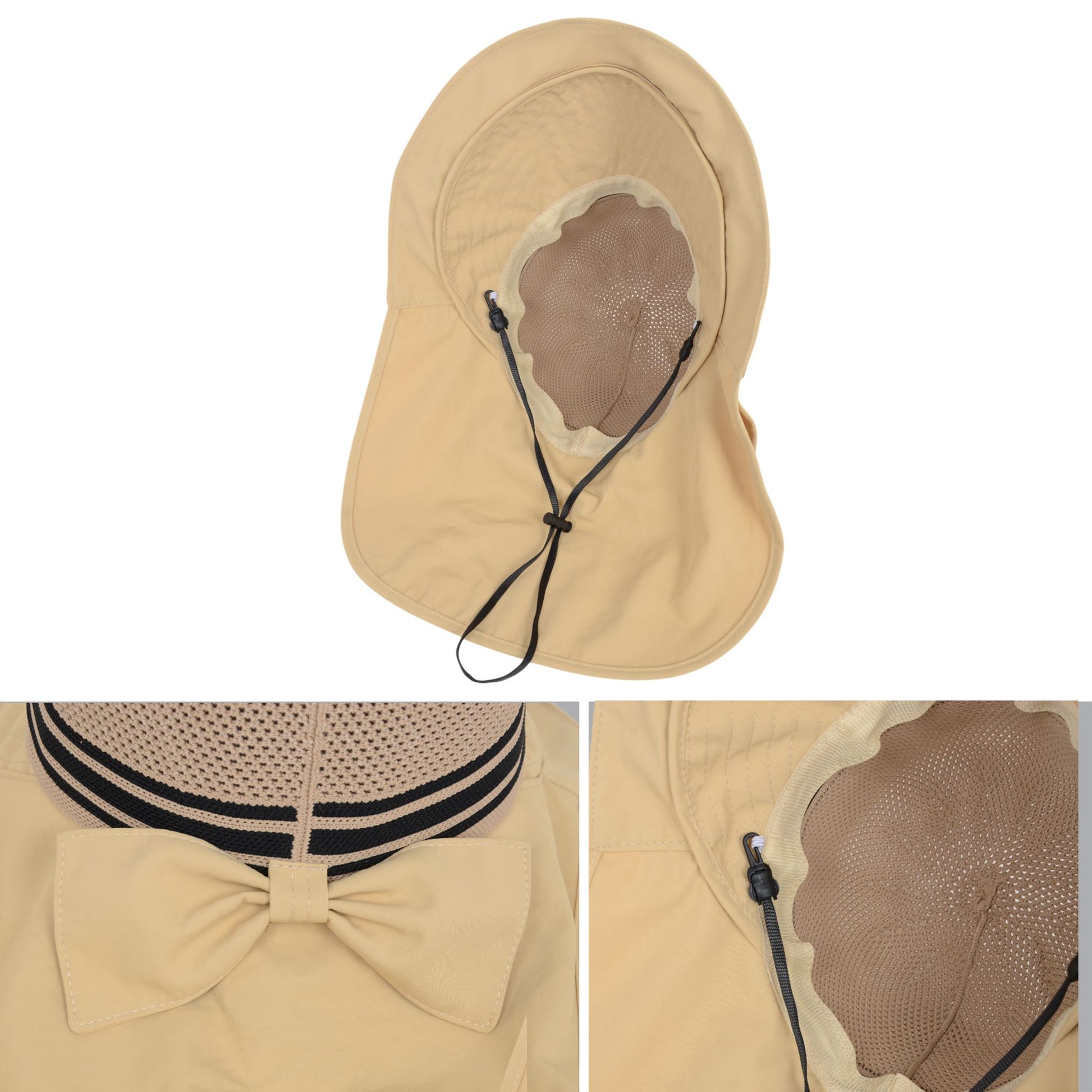 Wide Brim Mesh Sun Hat with Back Bow UV Protection Foldable Travel Hat for Women Outdoor Summer Style
