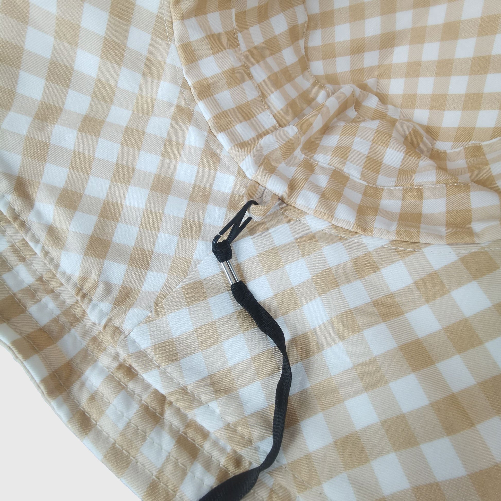 Elevate your summer style with our Women's Reversible Checkered Bucket Hat. This hat is a versatile and practical accessory for sunny days. With its reversible design, you can switch between a solid beige look for a minimalist vibe or a classic checkered pattern to add a touch of retro charm.