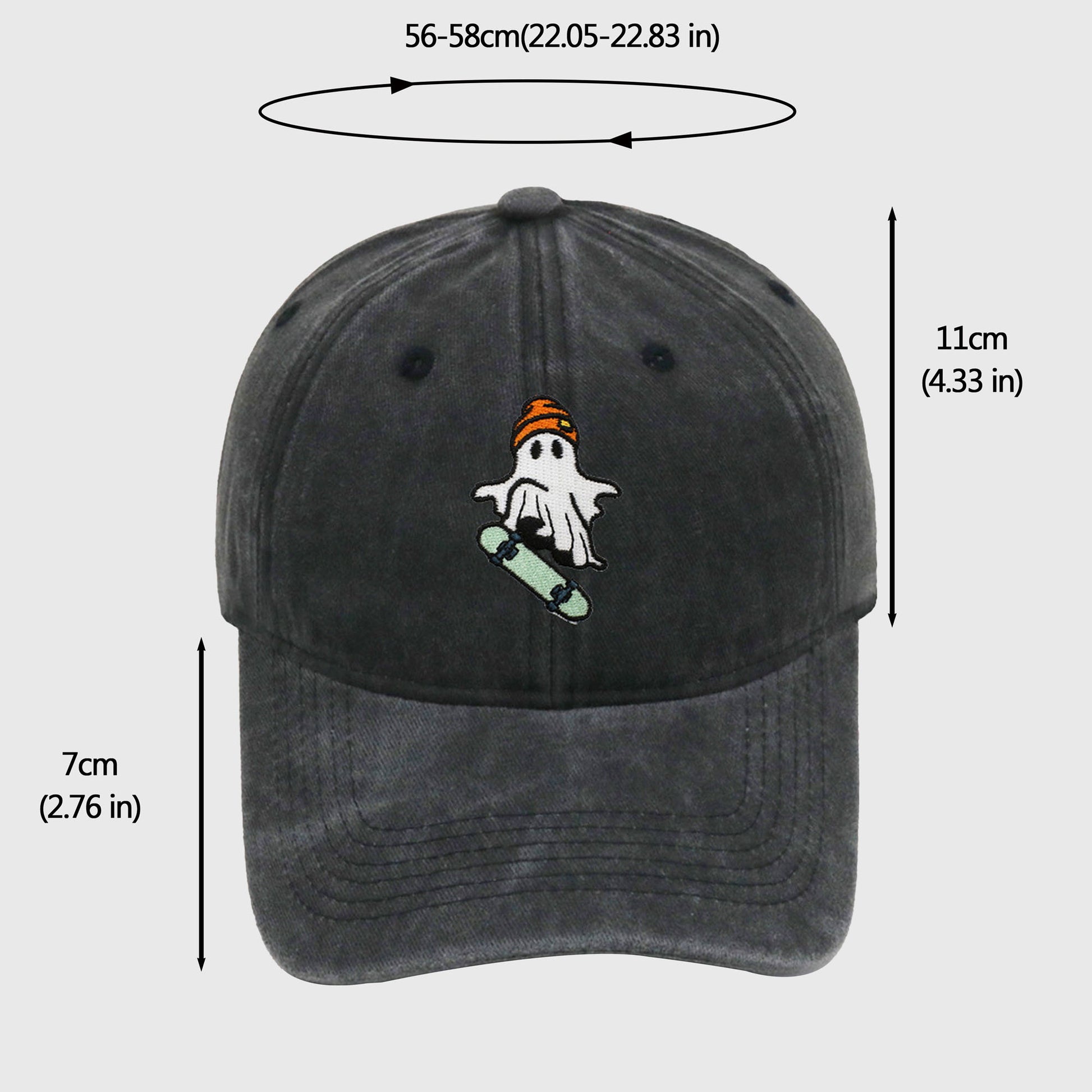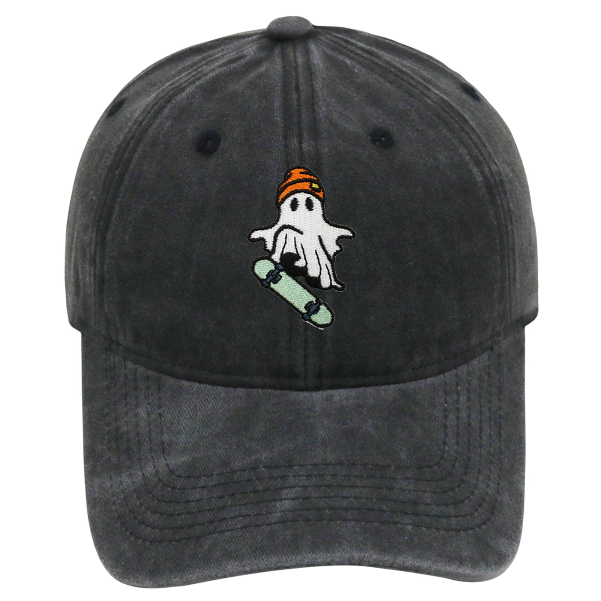 Vintage Washed Baseball Cap with Skateboarding Ghost Embroidery