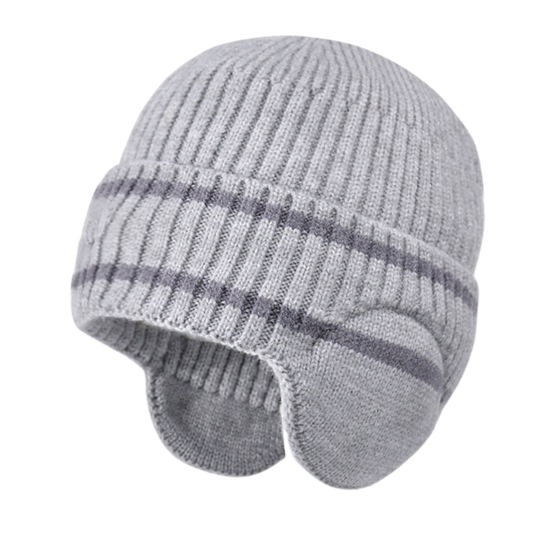 Striped Knit Beanie with Ear Flaps - Winter Warm Hat
