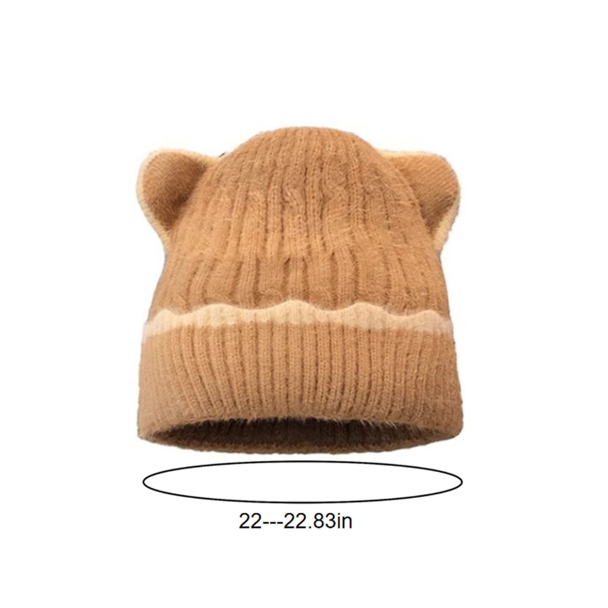 Knit Beanie Hat with Adorable Bear Ears and Soft Ribbed Texture
