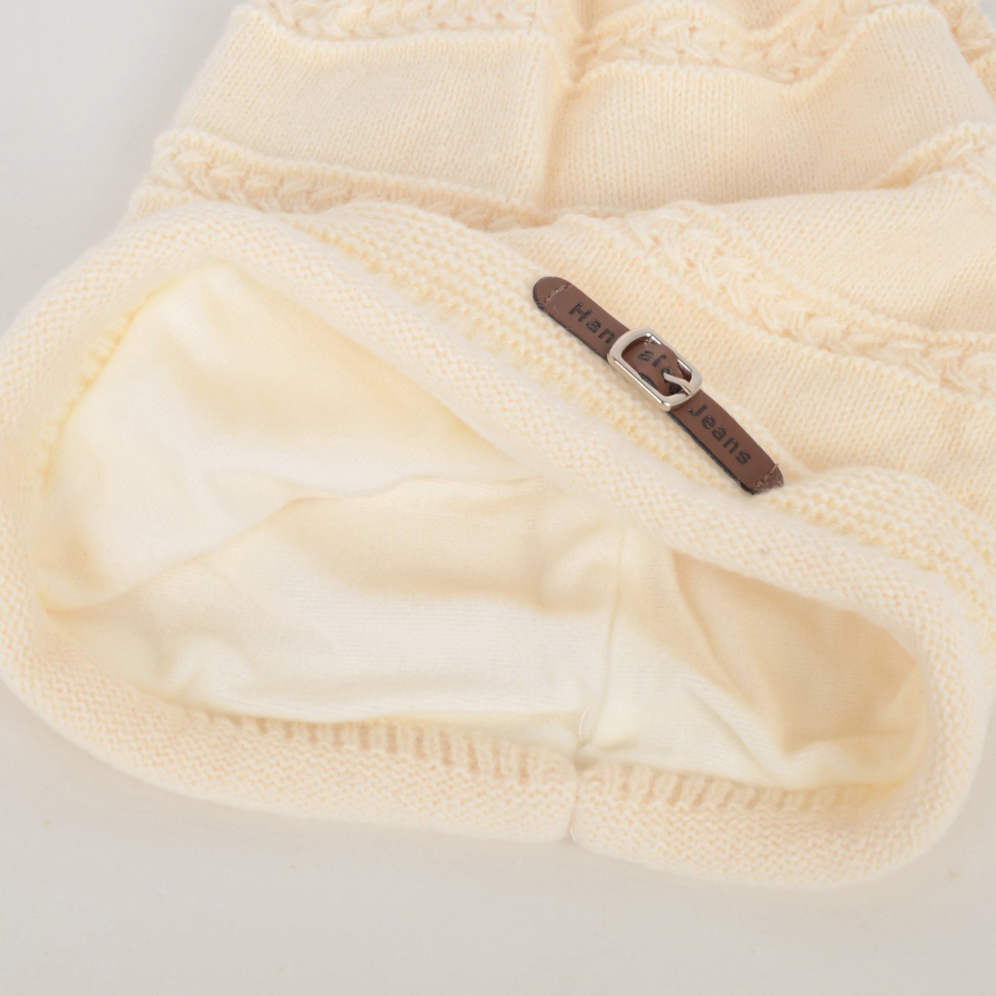Knit Beanie Hat with Faux Leather Buckle Detail and Folded Edge