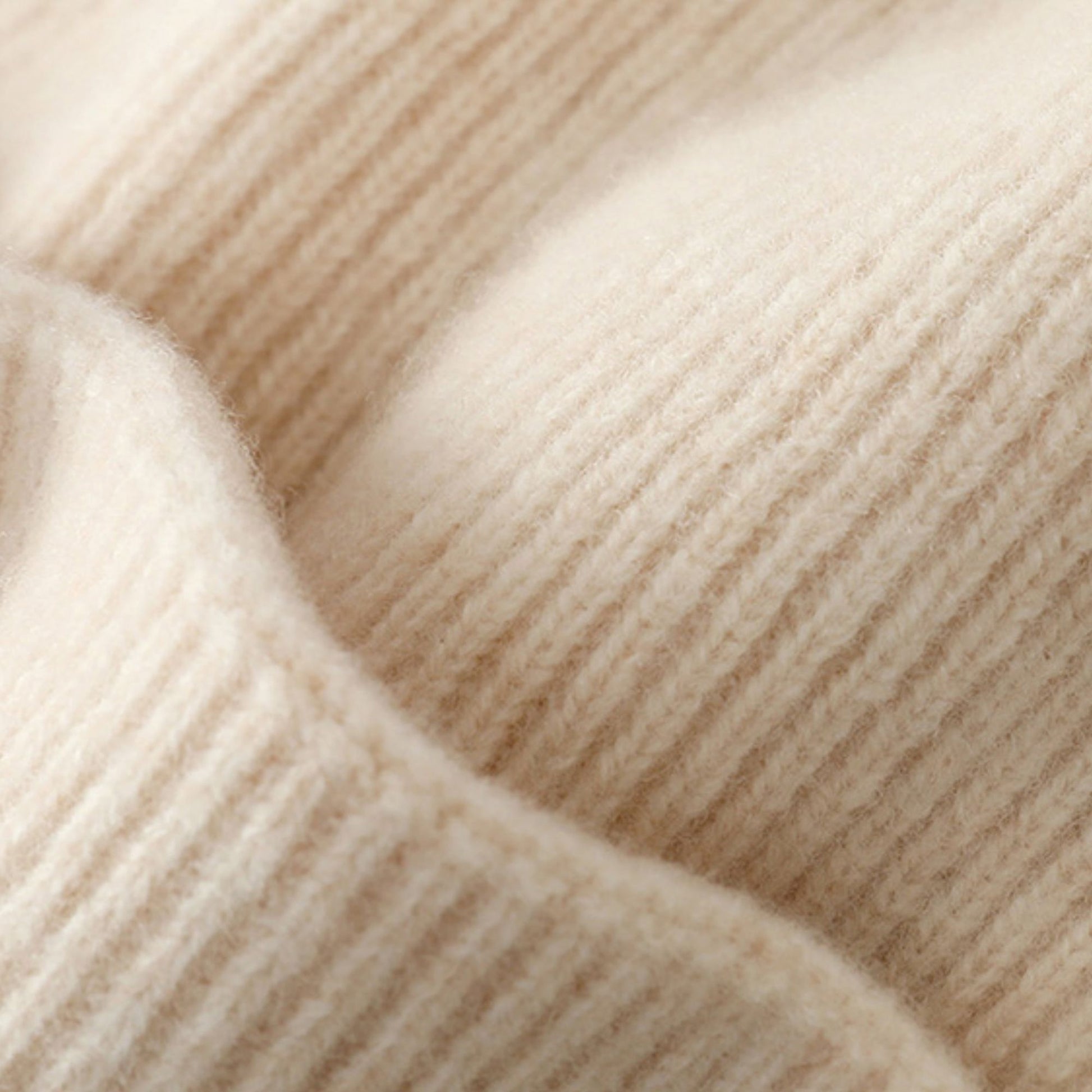 Ribbed Wool Knit Beanie Hat with Folded Cuff