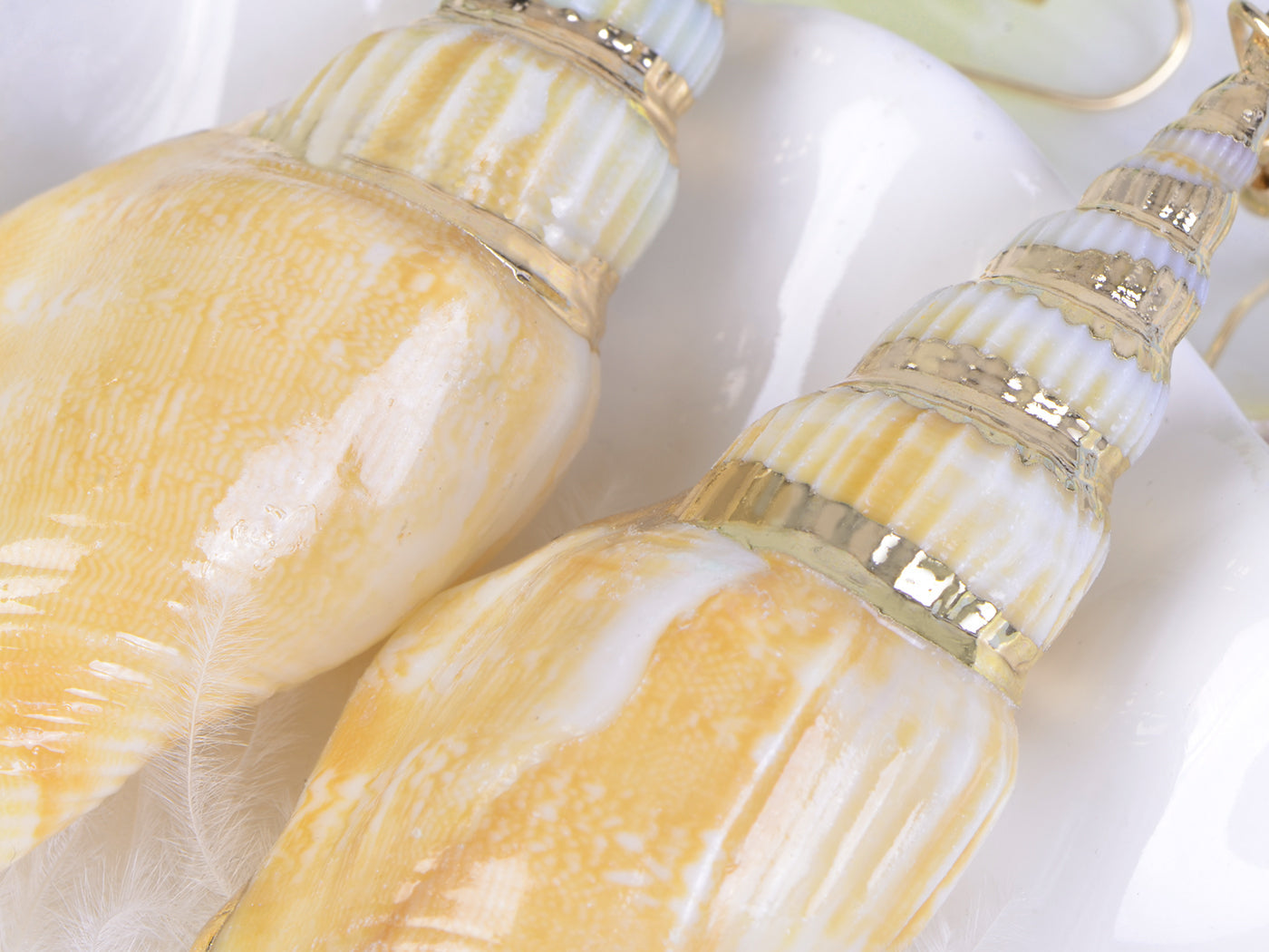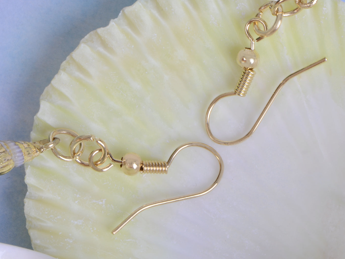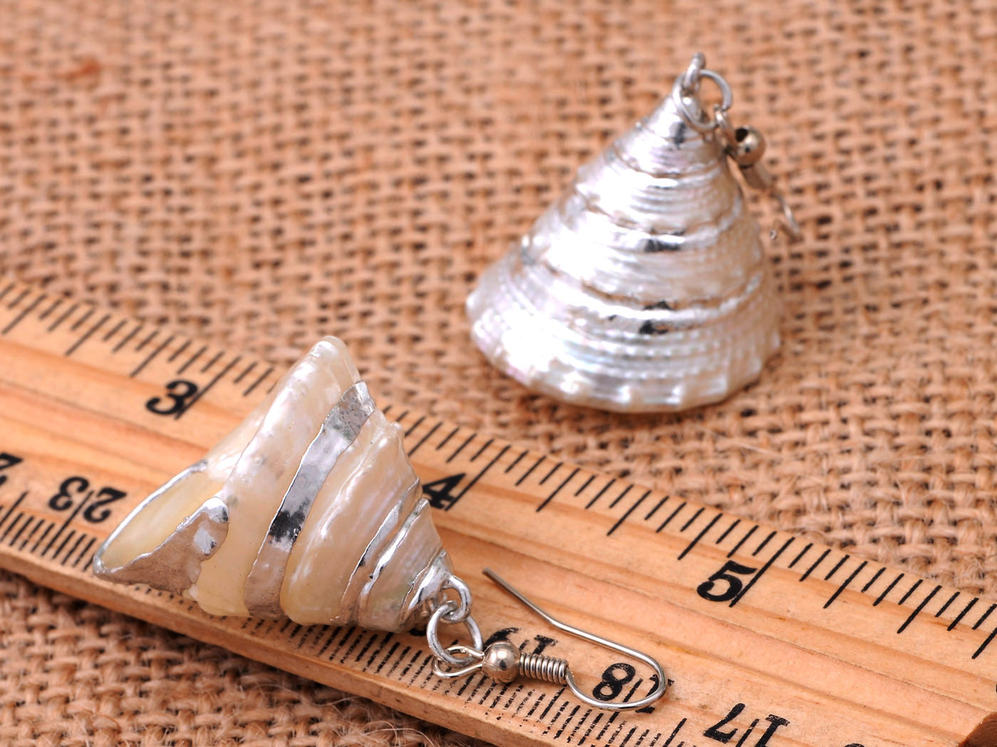 - STUNNING DANGLE SEASHELL STYLE. These gorgeous seashell dangle drop earrings are the perfect accessory to add a nautical touch to any outfit. From the elegant teal shells decorated with a delicate gold accent to the unique standout statement pieces, you\'re sure to find a style suited for a variety of tastes.
