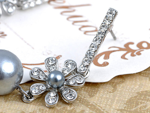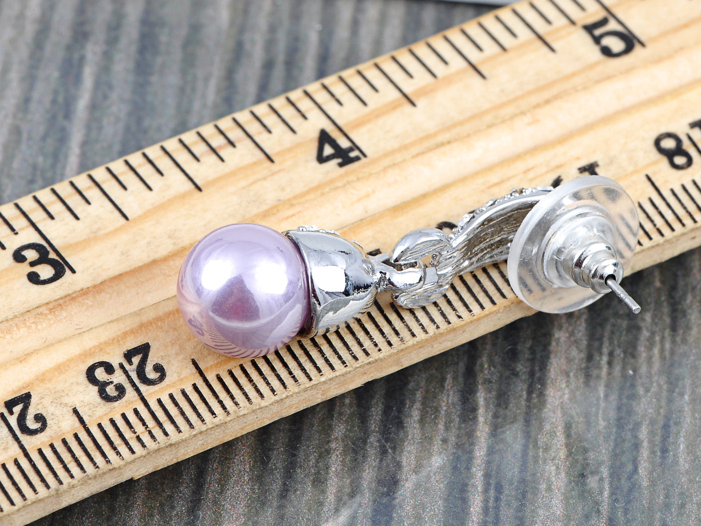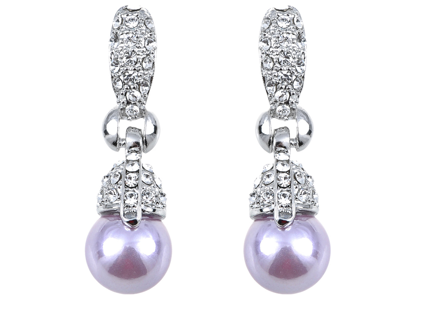 Swarovski Crystal Element Silver Pearl Colored Fish Hook Dangle Earrings