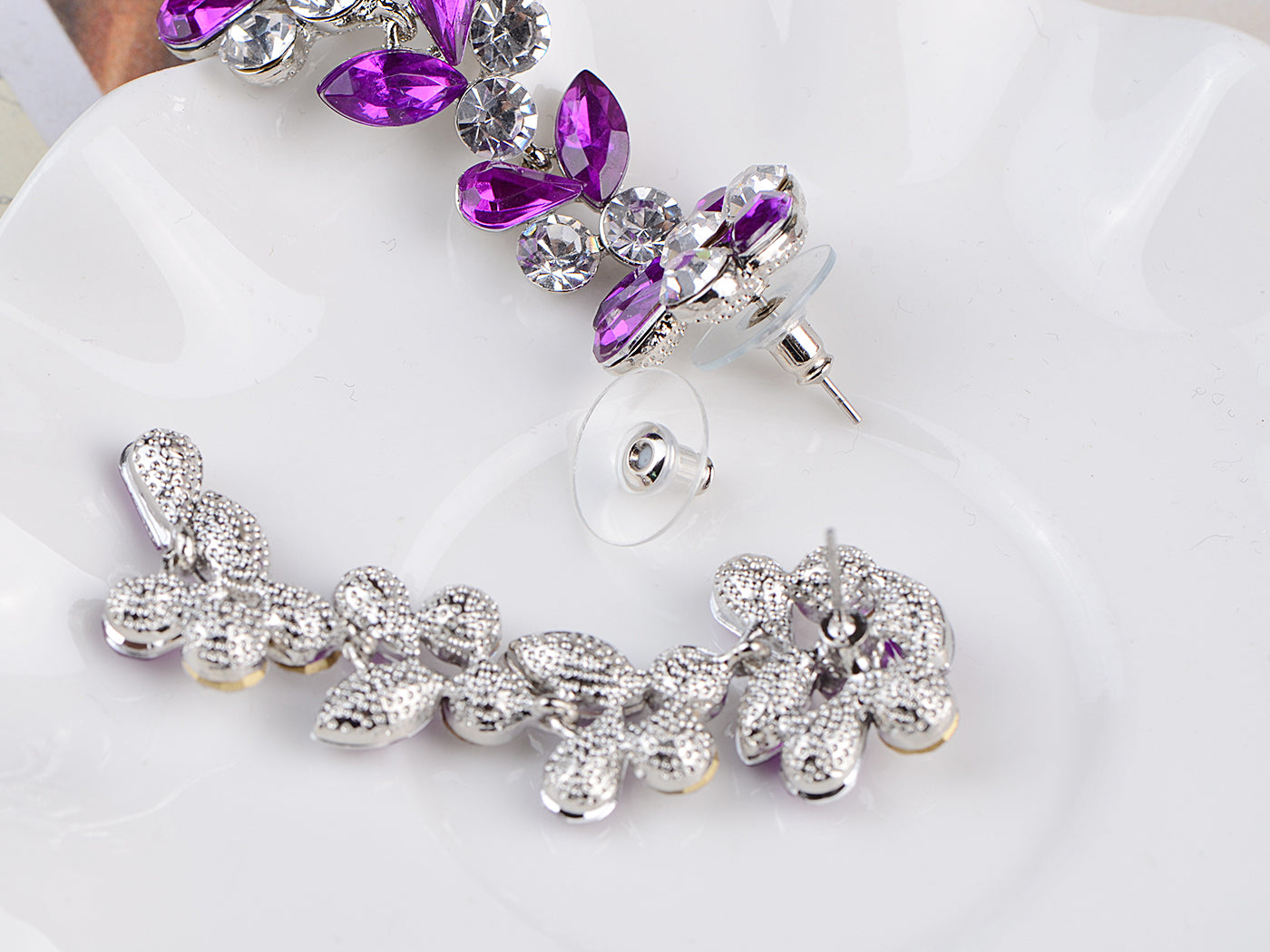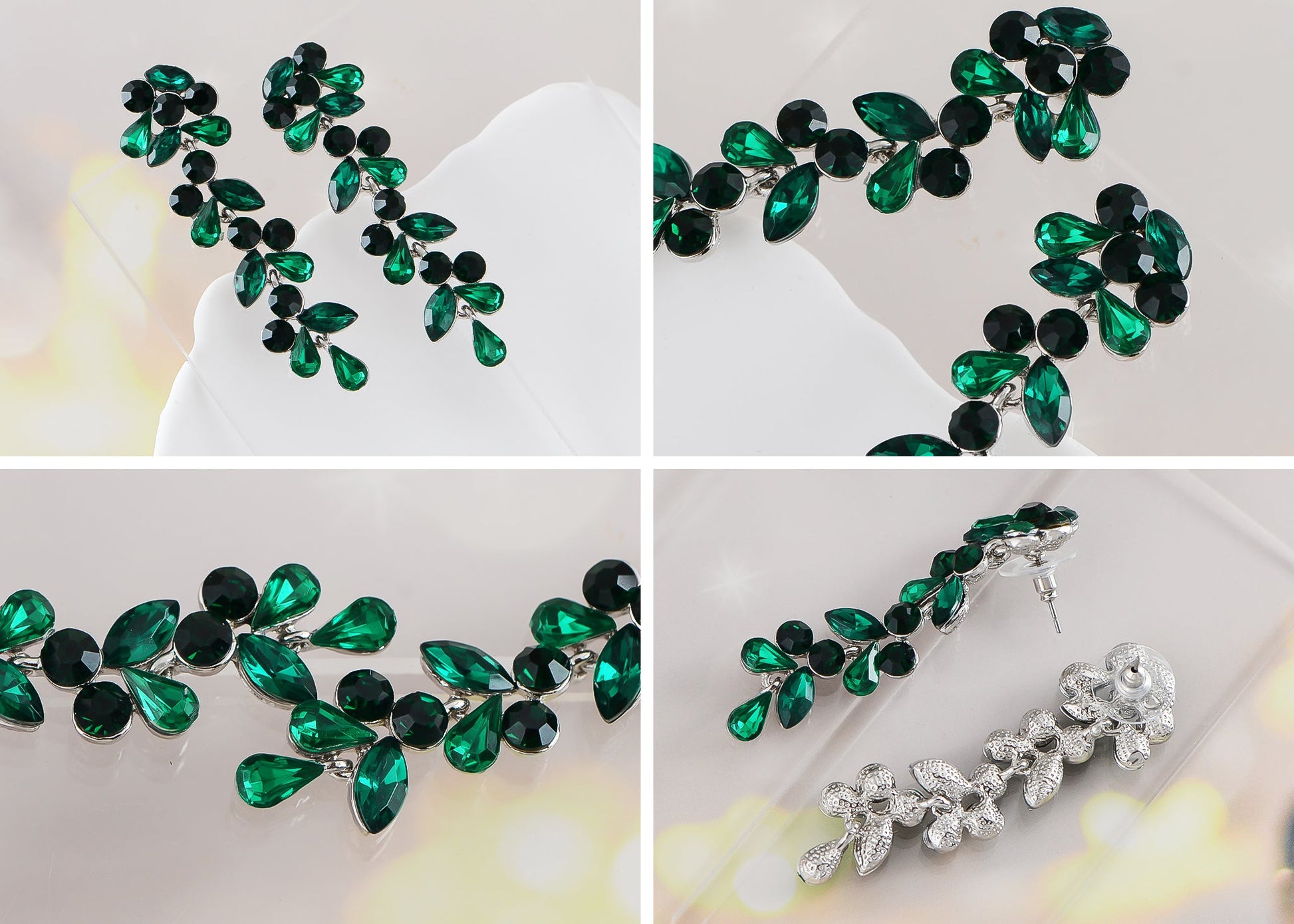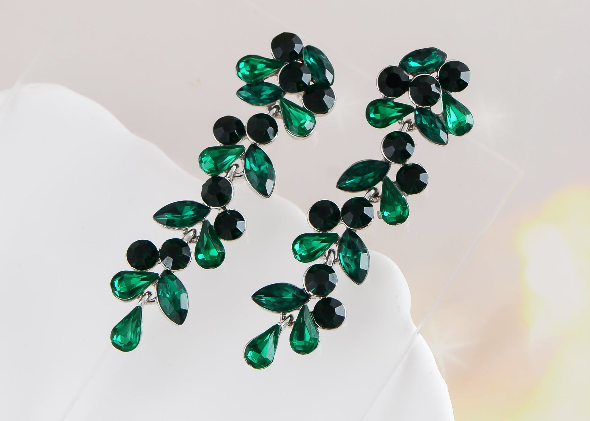 - UNIQUE DESIGN: Drop earrings with different cuts of light and silver colored stones.