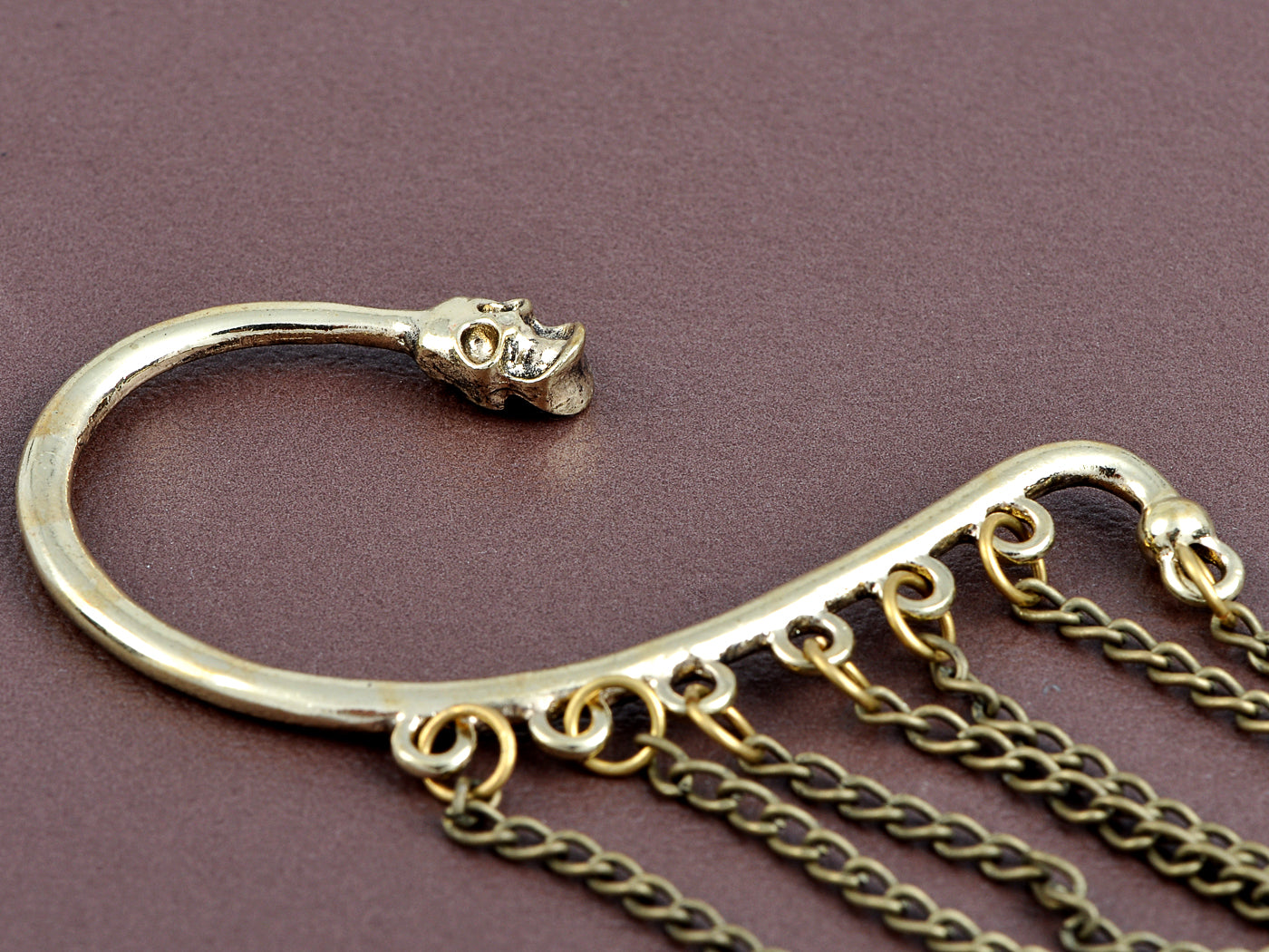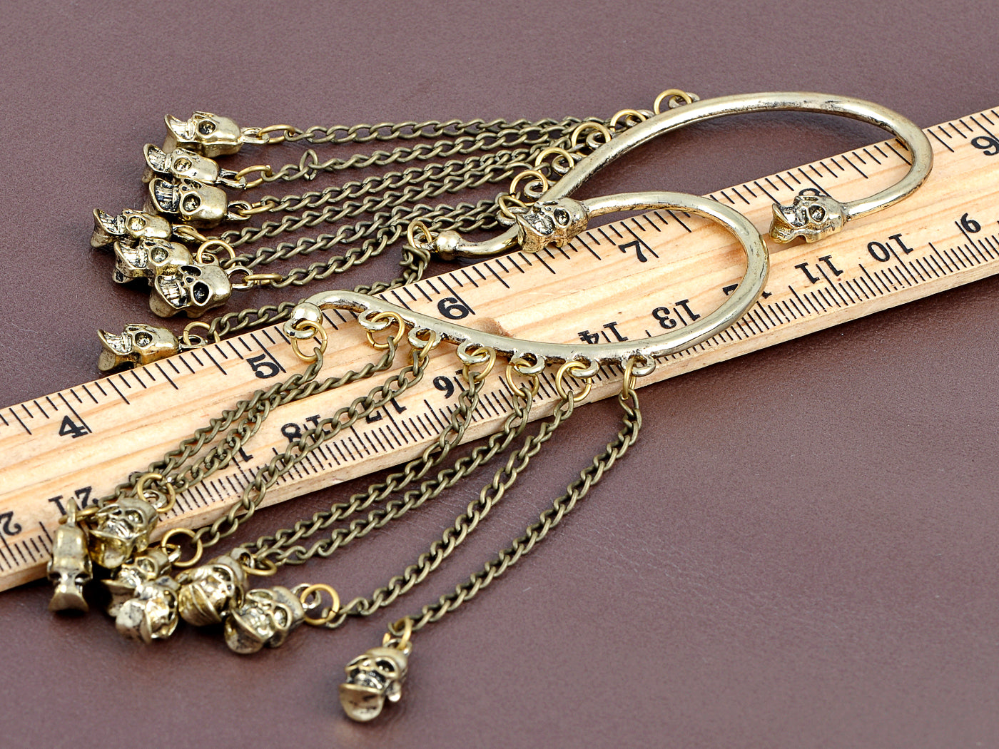 Grey Bronze Dangling Skull Chorus Line Shimmering Utter Magic Cuff Earrings