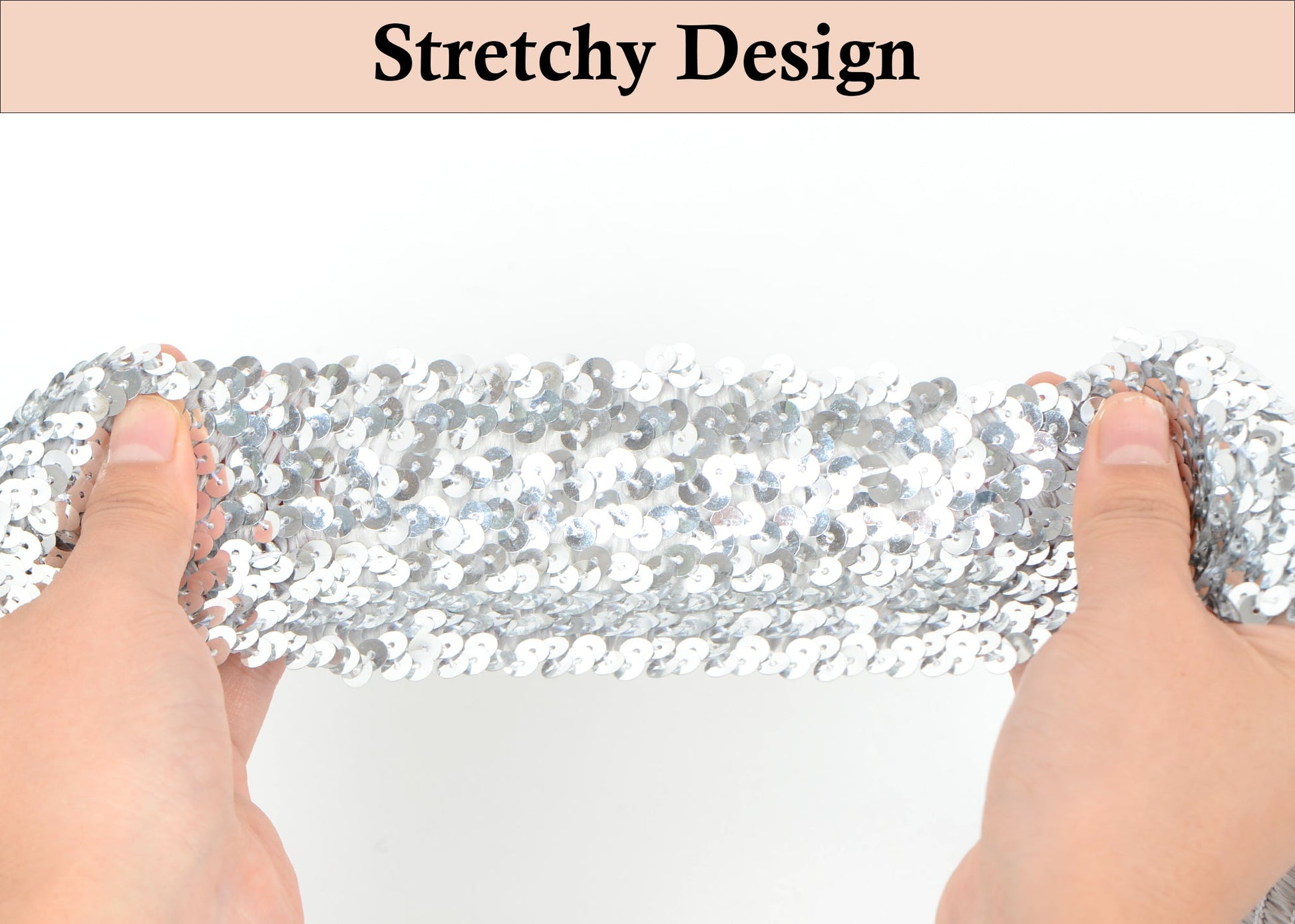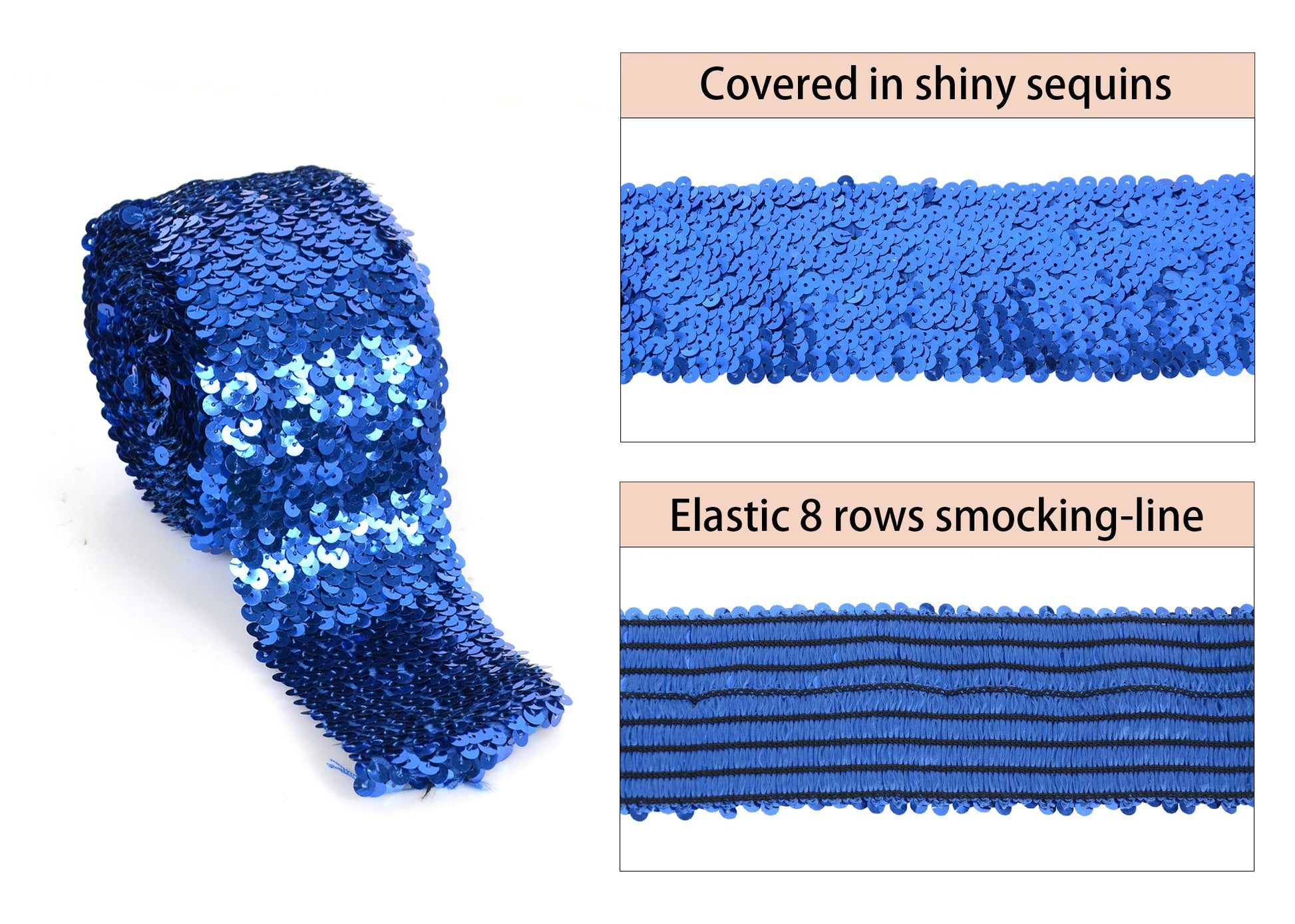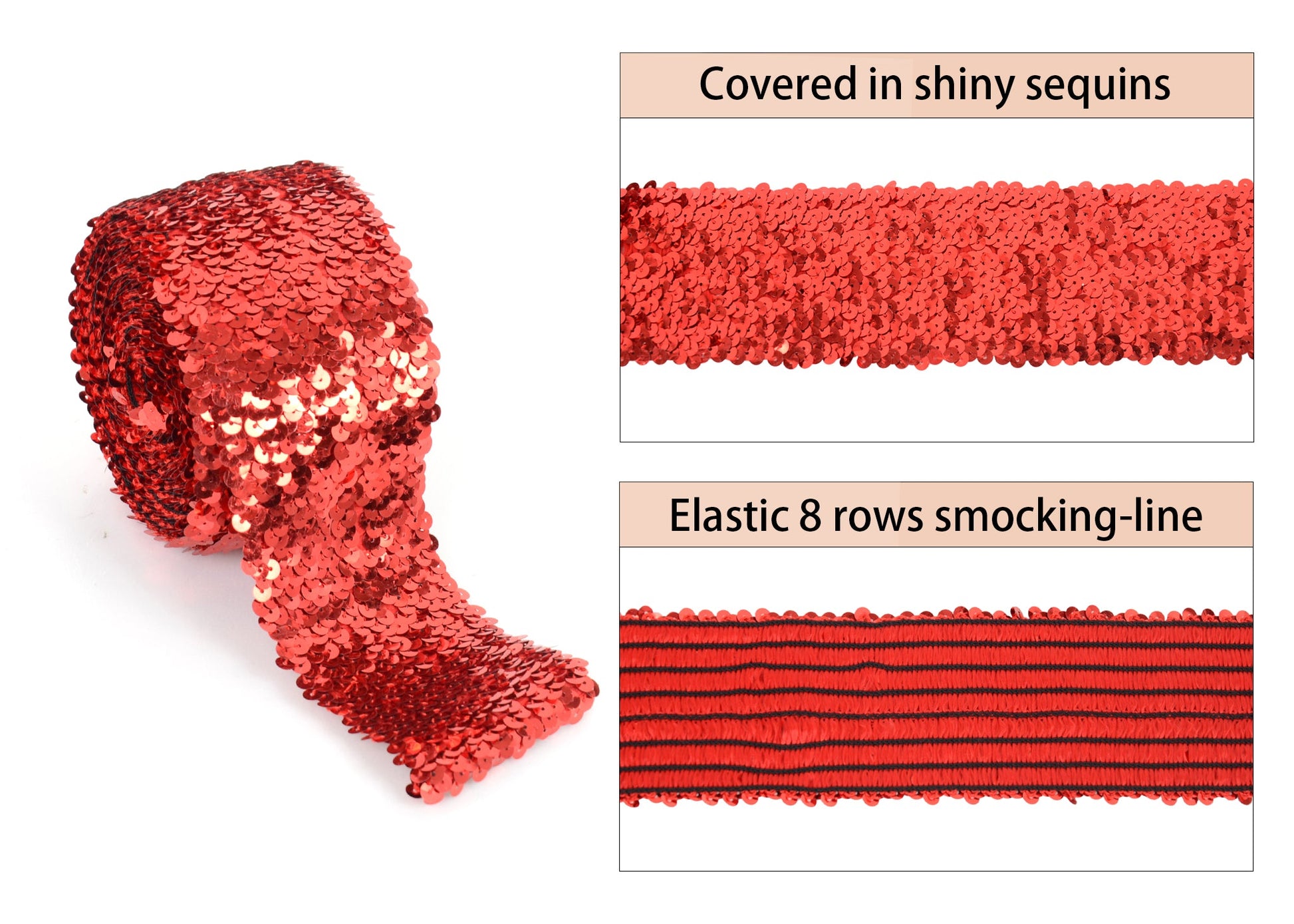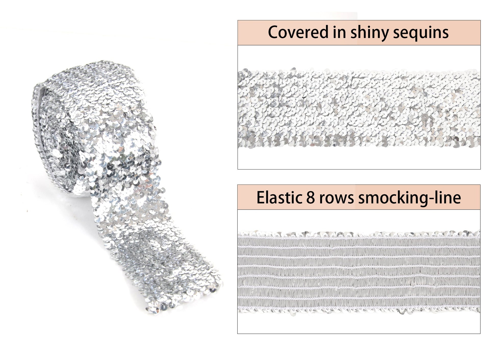 Covered in full shimmering sequins, this trim is designed to catch the light and create eye-catching effects. The stretch smocking band fabric provides both durability and flexibility, making it easy to incorporate into various DIY projects.Whether you're designing costumes for parties or creating festival decorations, this sequin trim is a versatile addition to your craft supplies. It can also be used for gift wrapping, adding an extra special touch to your presents. Additionally, it is great for scrapbooking and card making, allowing you to add a touch of elegance to your creations.Simply sew it onto your desired fabric or surface, and watch as your projects come to life with sparkle and shine. Elevate your sewing, crafting, and decorating with this beautiful and versatile trim.