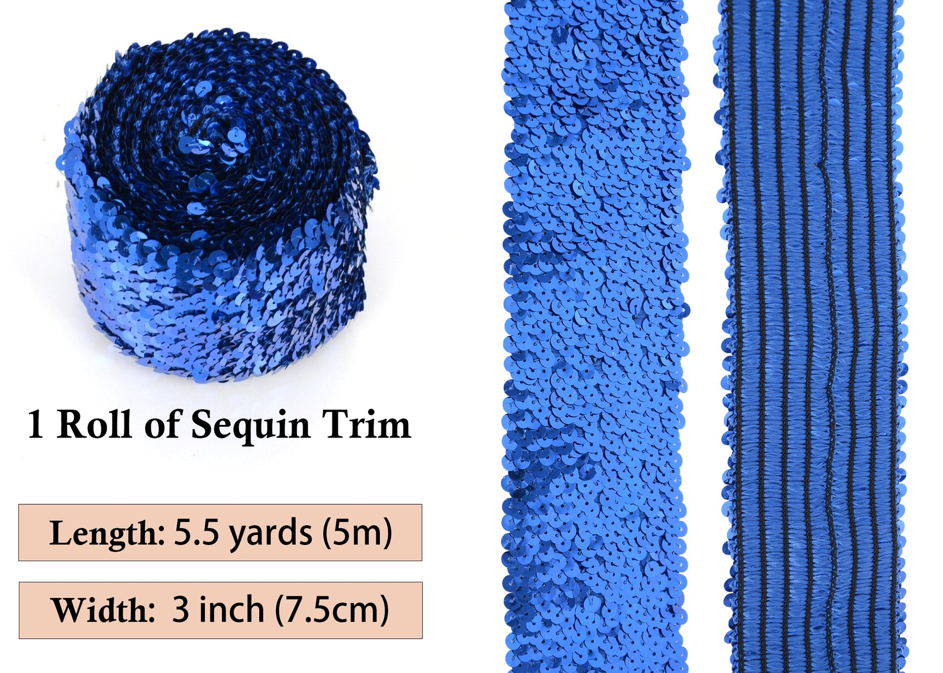 Elastic Sequin Trim, 3 Inch 8 Row Wide Flat Glitter Bling Fabric Paillette Sequin Ribbon, Metallic Sewing DIY Project, 5.5 Yards