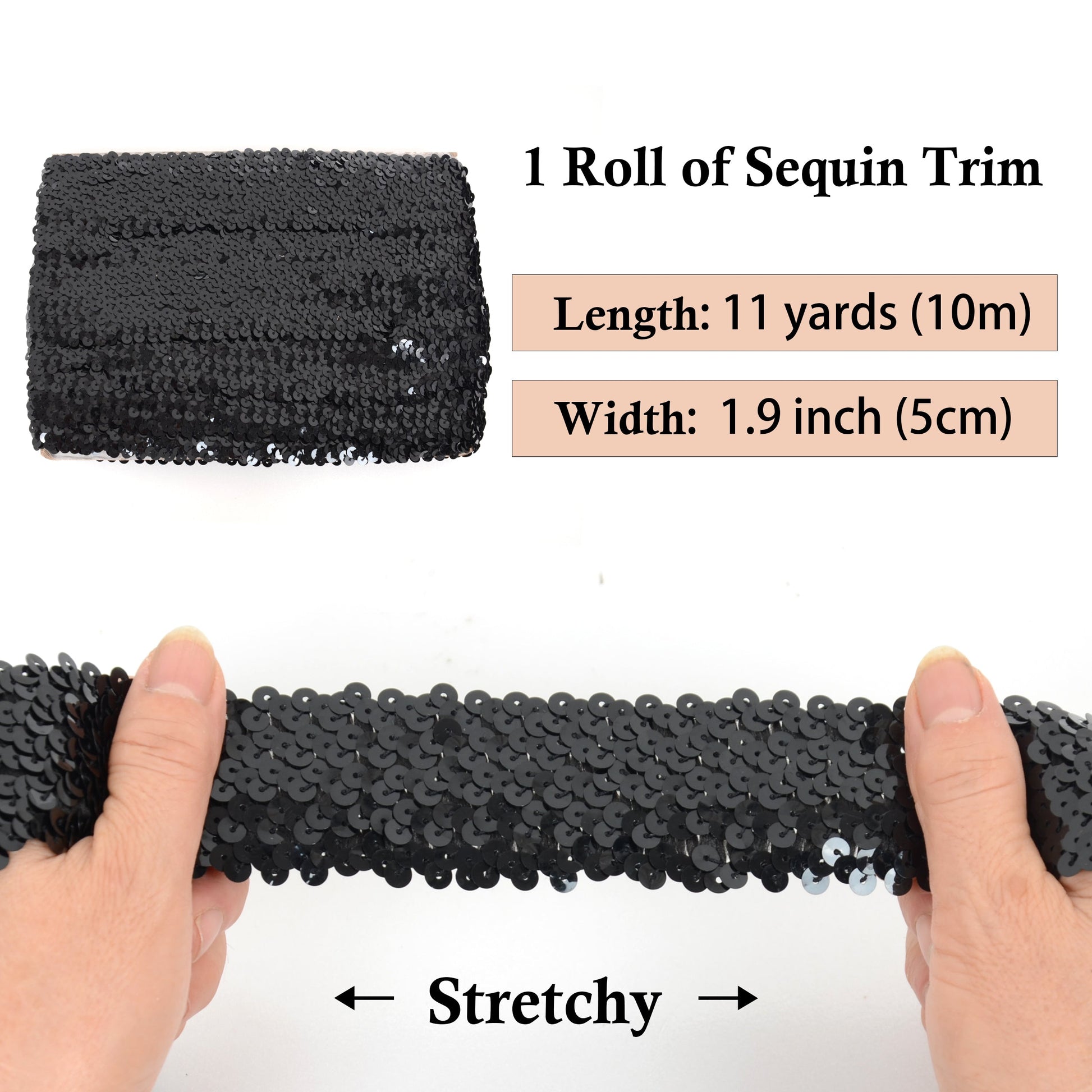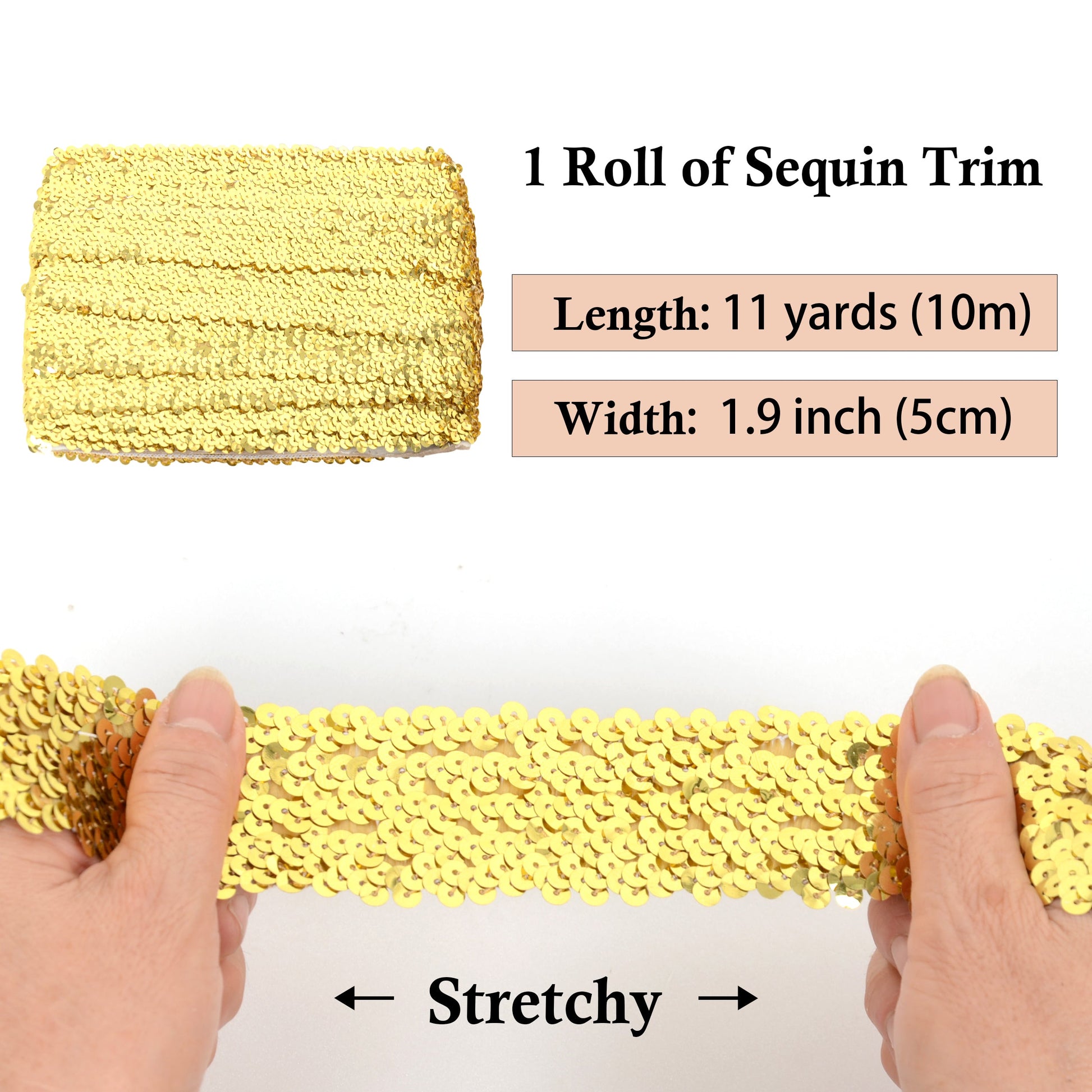 Elastic Sequin Trim, 1.9 Inch 5 Row Flat Glitter Paillette Sequin Ribbon, Bling Fabric DIY Metallic Stretch Sequin Strip, 11 Yards