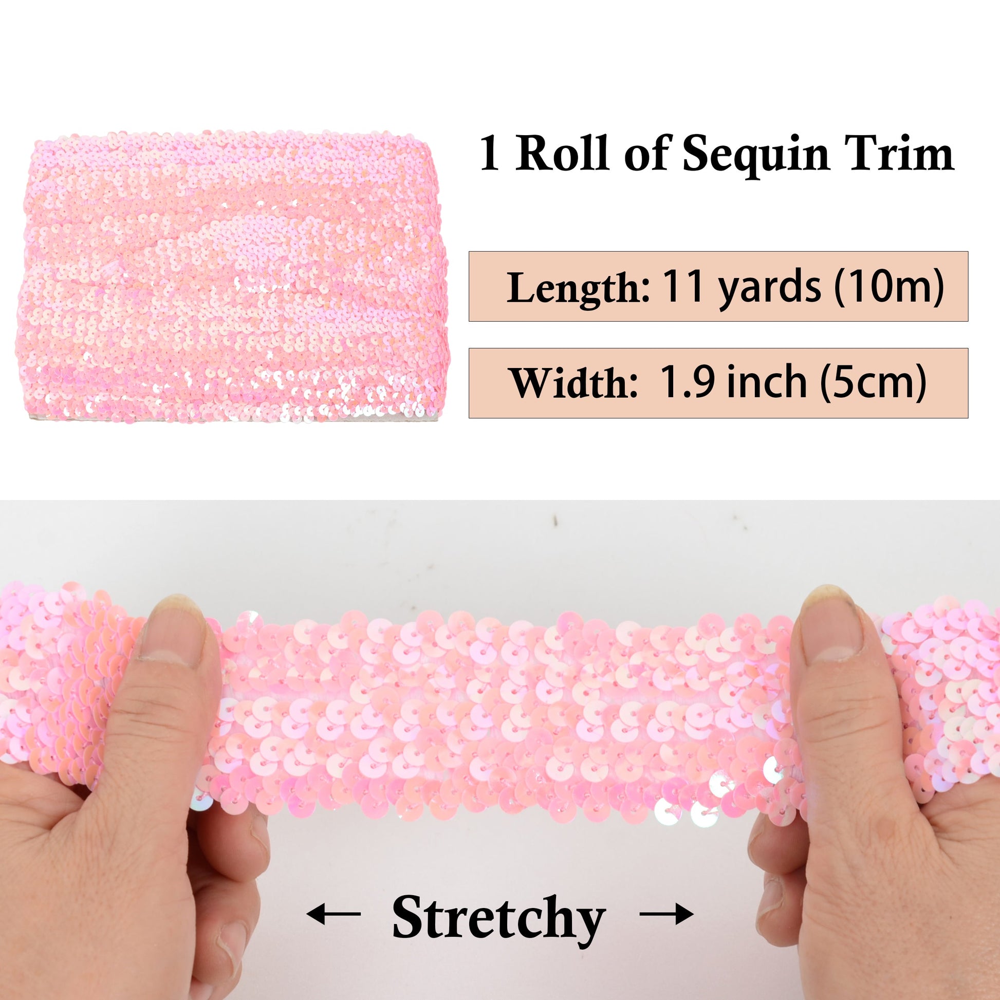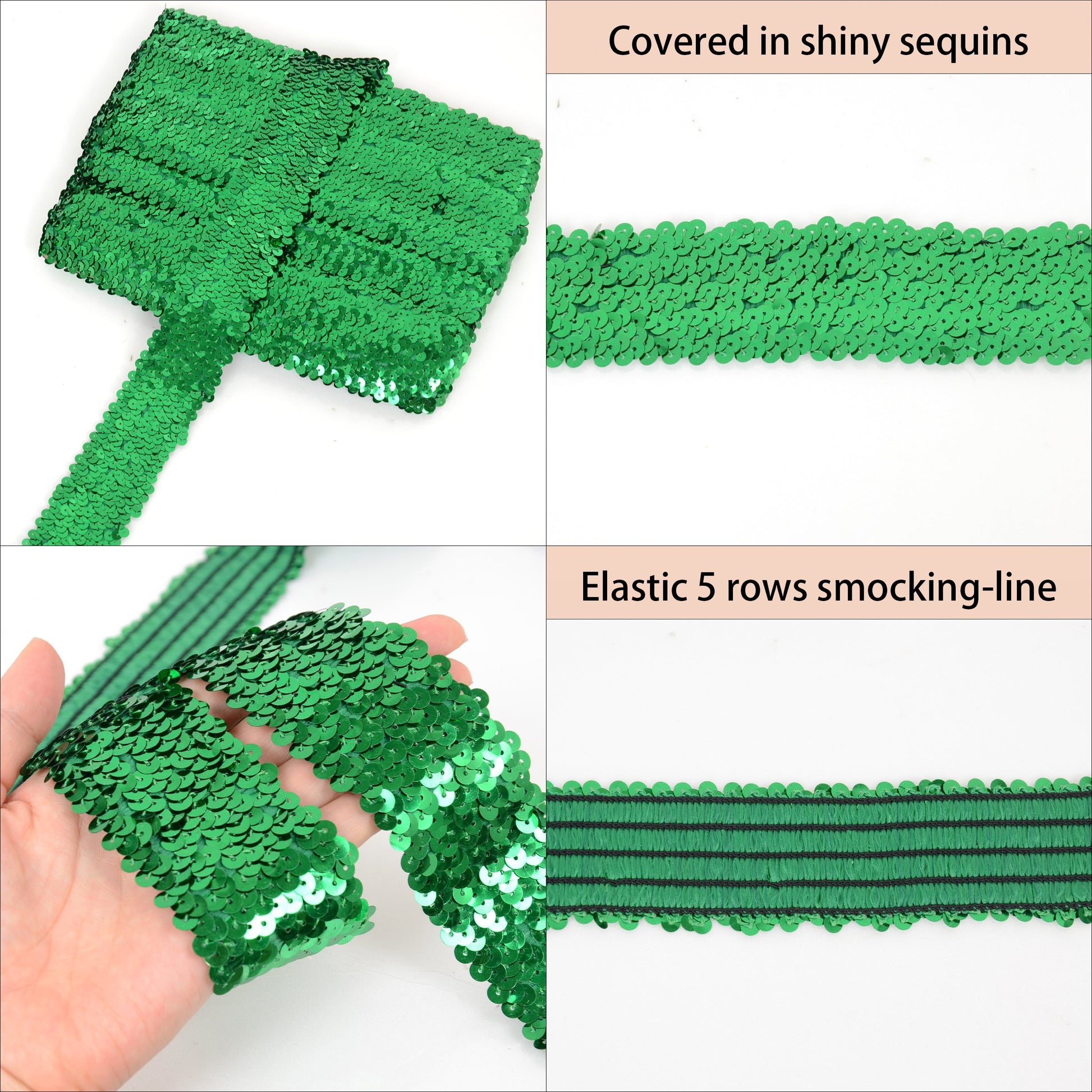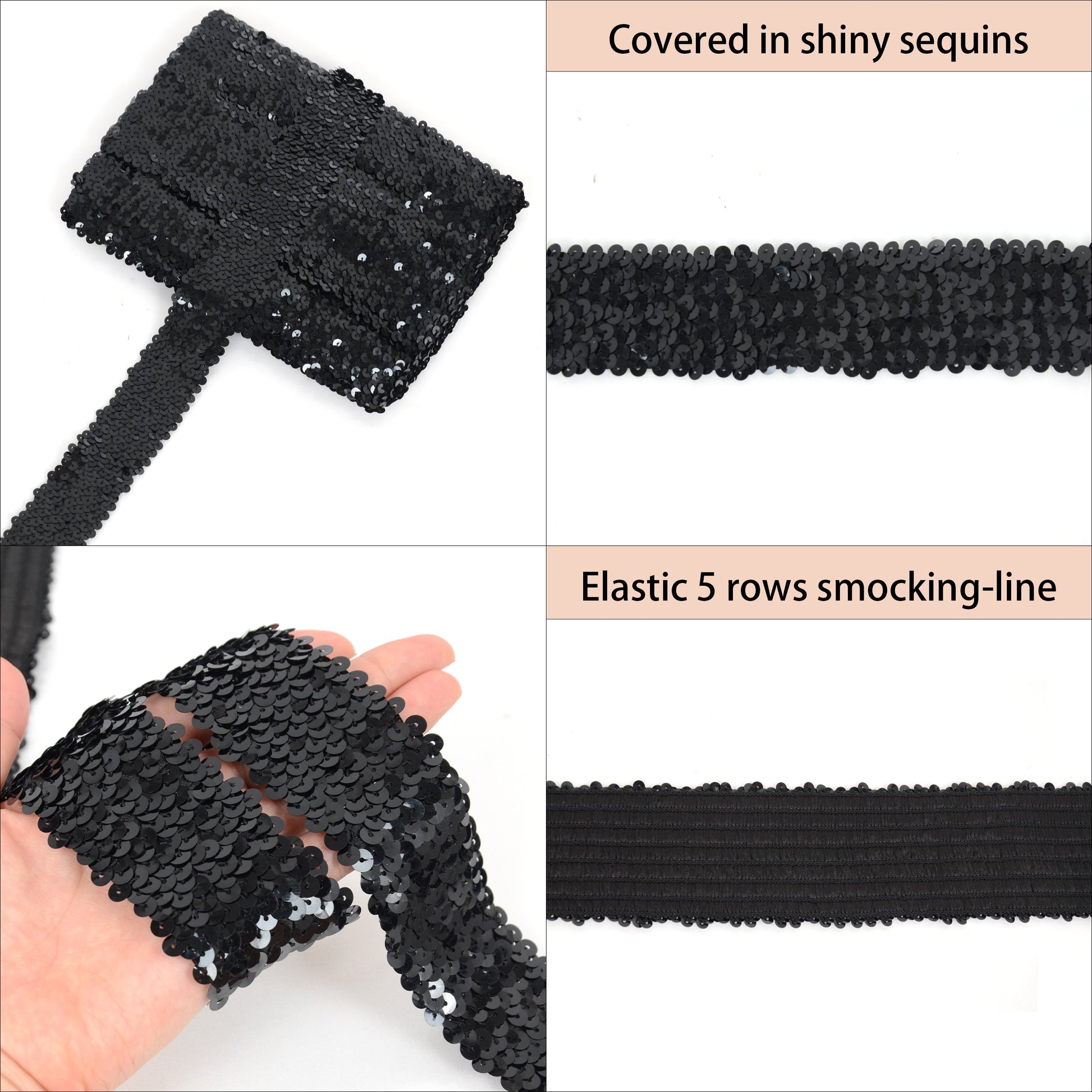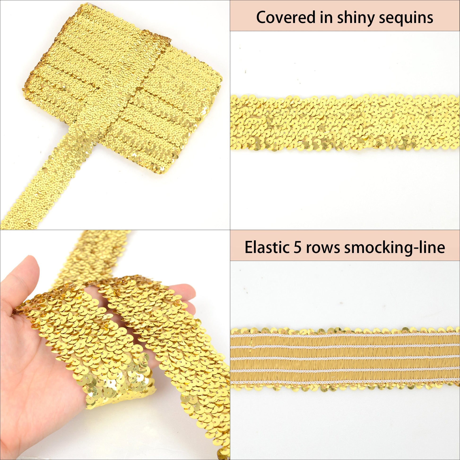 Covered in full shimmering sequins, this trim is designed to catch the light and create eye-catching effects. The stretch smocking band fabric provides both durability and flexibility, making it easy to incorporate into various DIY projects.Whether you're designing costumes for parties or creating festival decorations, this sequin trim is a versatile addition to your craft supplies. It can also be used for gift wrapping, adding an extra special touch to your presents. Additionally, it is great for scrapbooking and card making, allowing you to add a touch of elegance to your creations.Simply sew it onto your desired fabric or surface, and watch as your projects come to life with sparkle and shine. Elevate your sewing, crafting, and decorating with this beautiful and versatile trim.