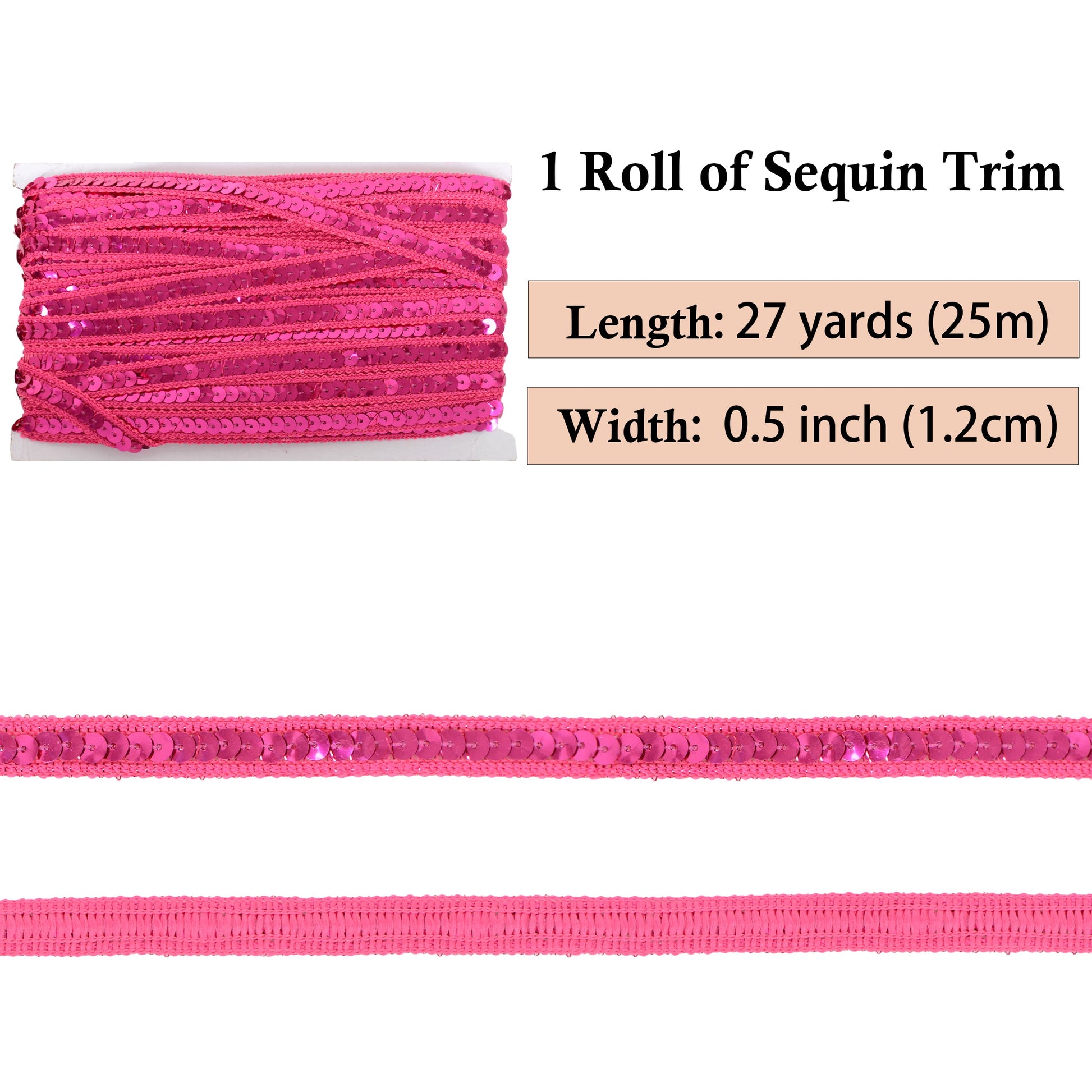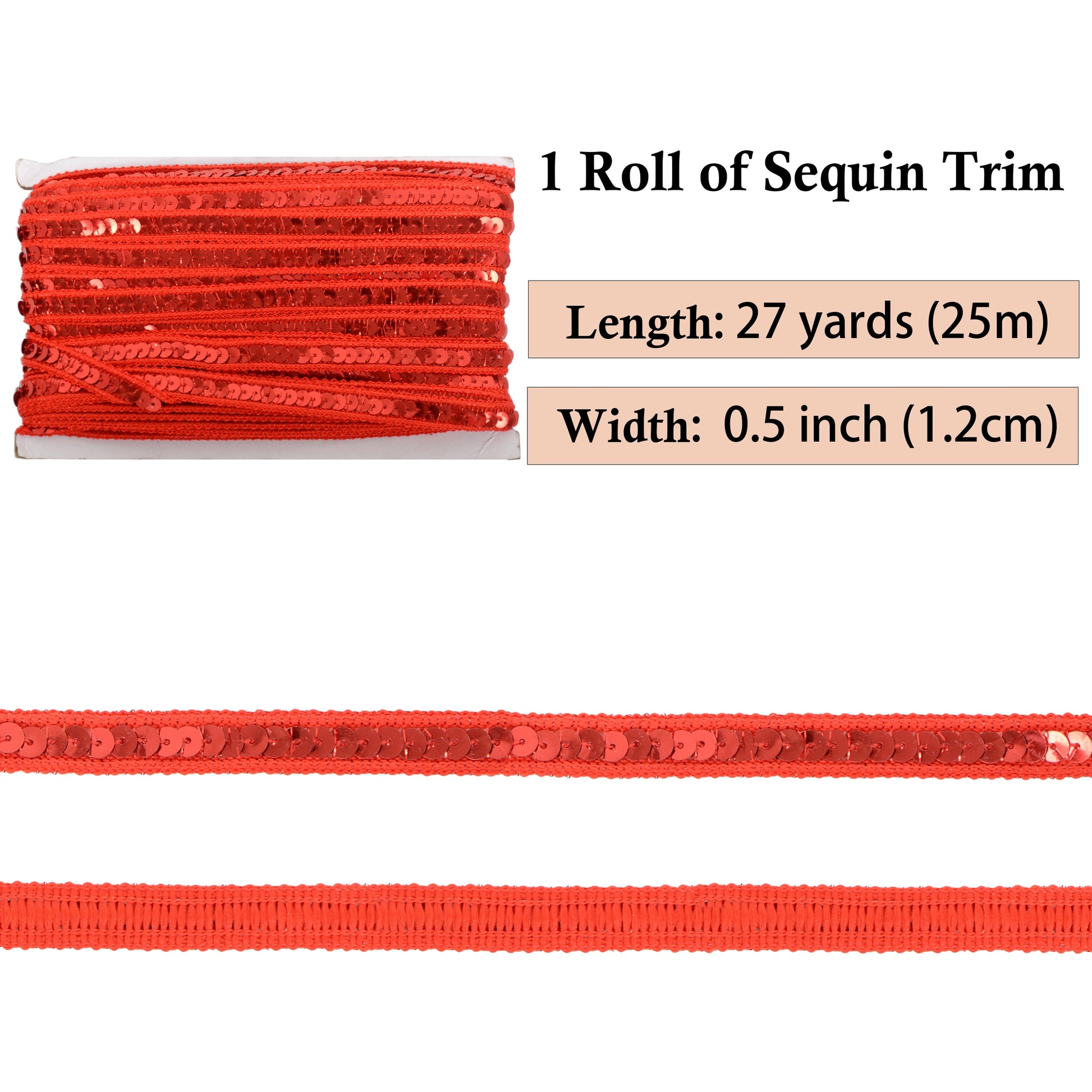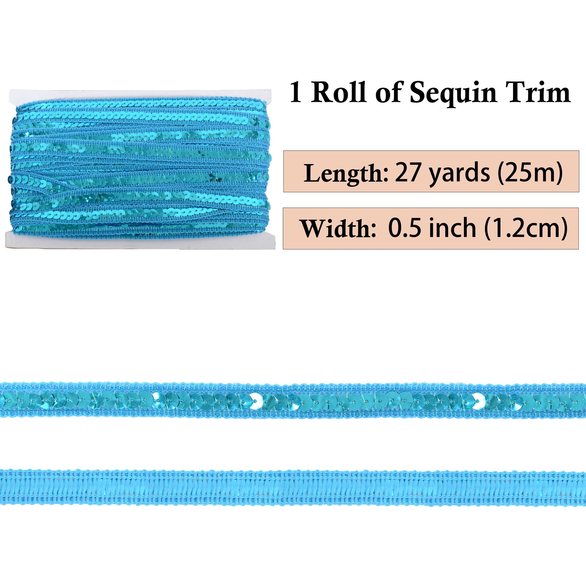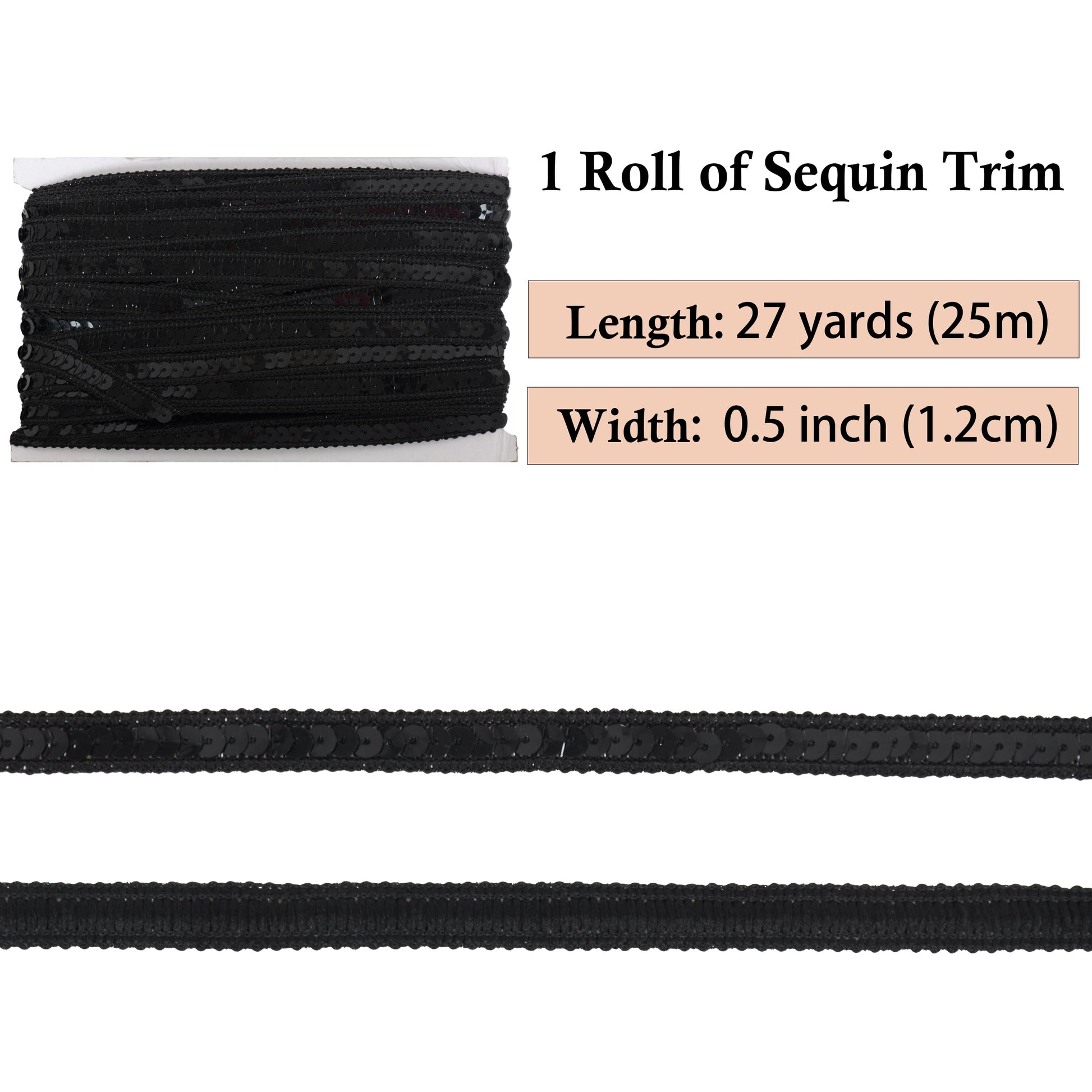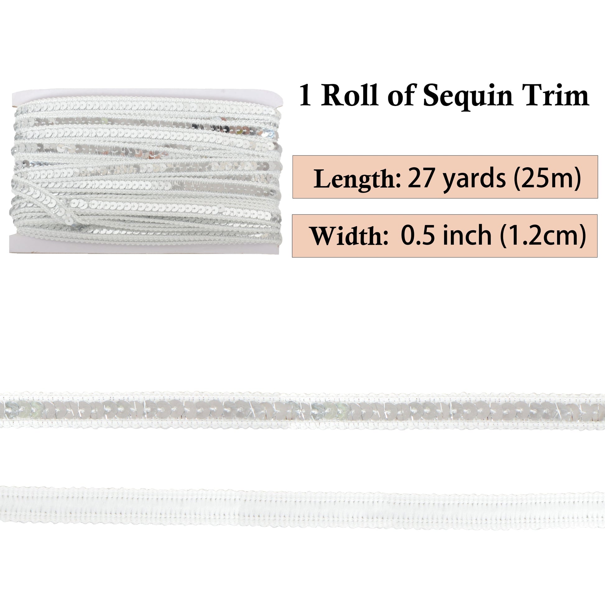 Sequin Trim, 0.5 Inch Flat Glitter Sequin Ribbon, Sparkle Metallic Sequin Strip, Bling Fabric DIY Sewing Embellishment, 27 Yards