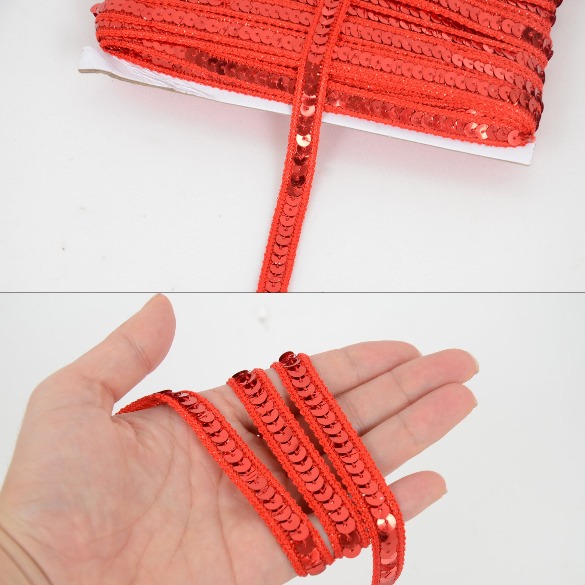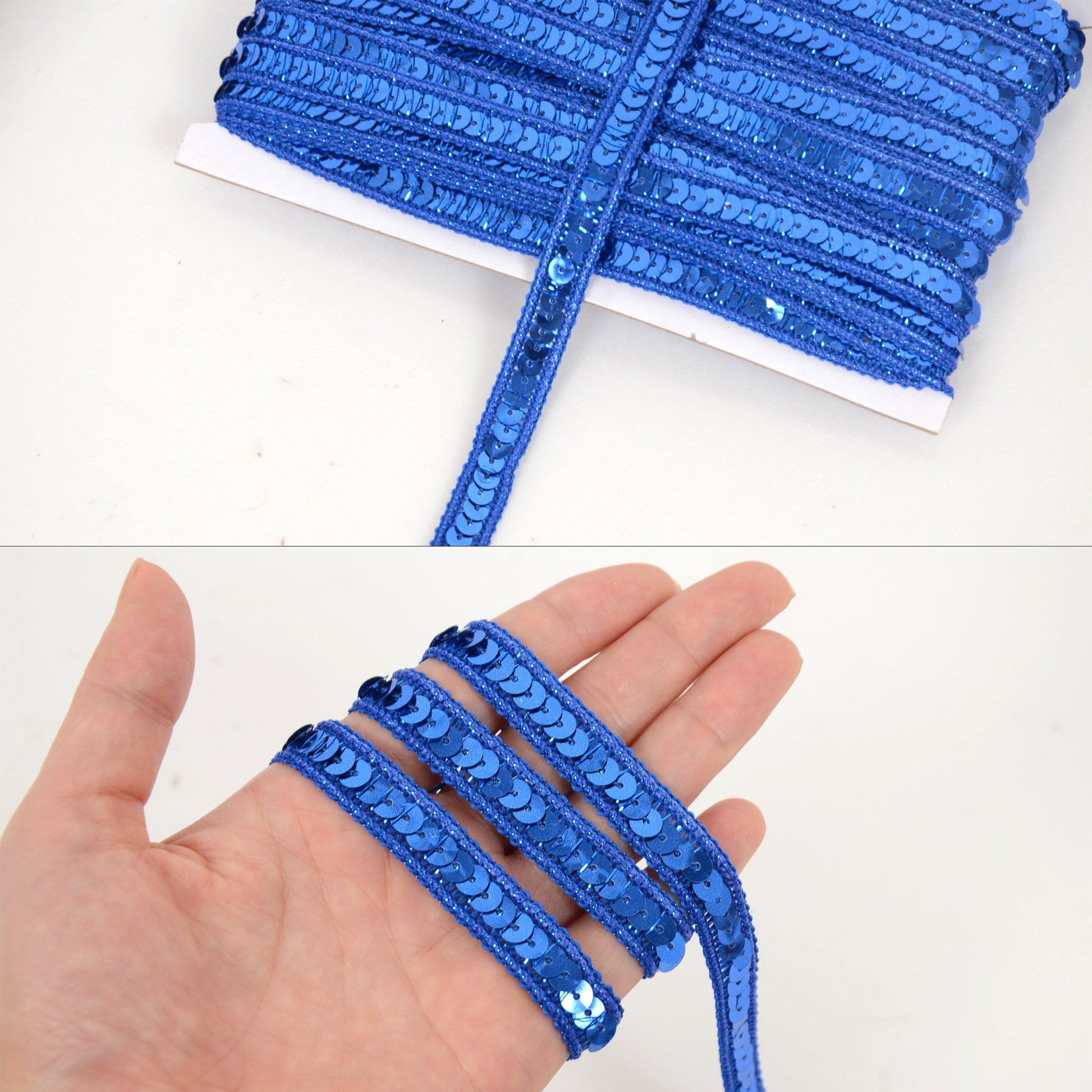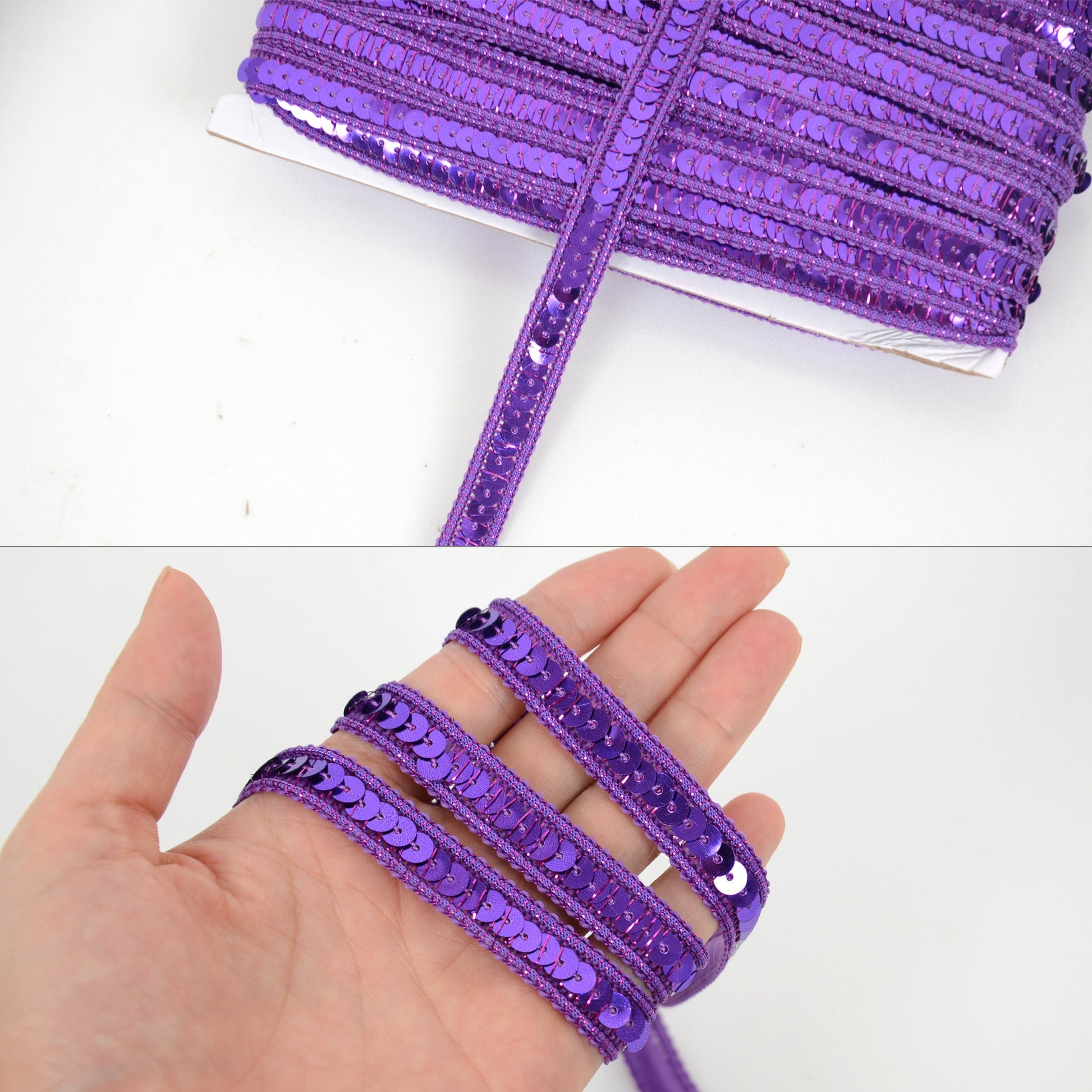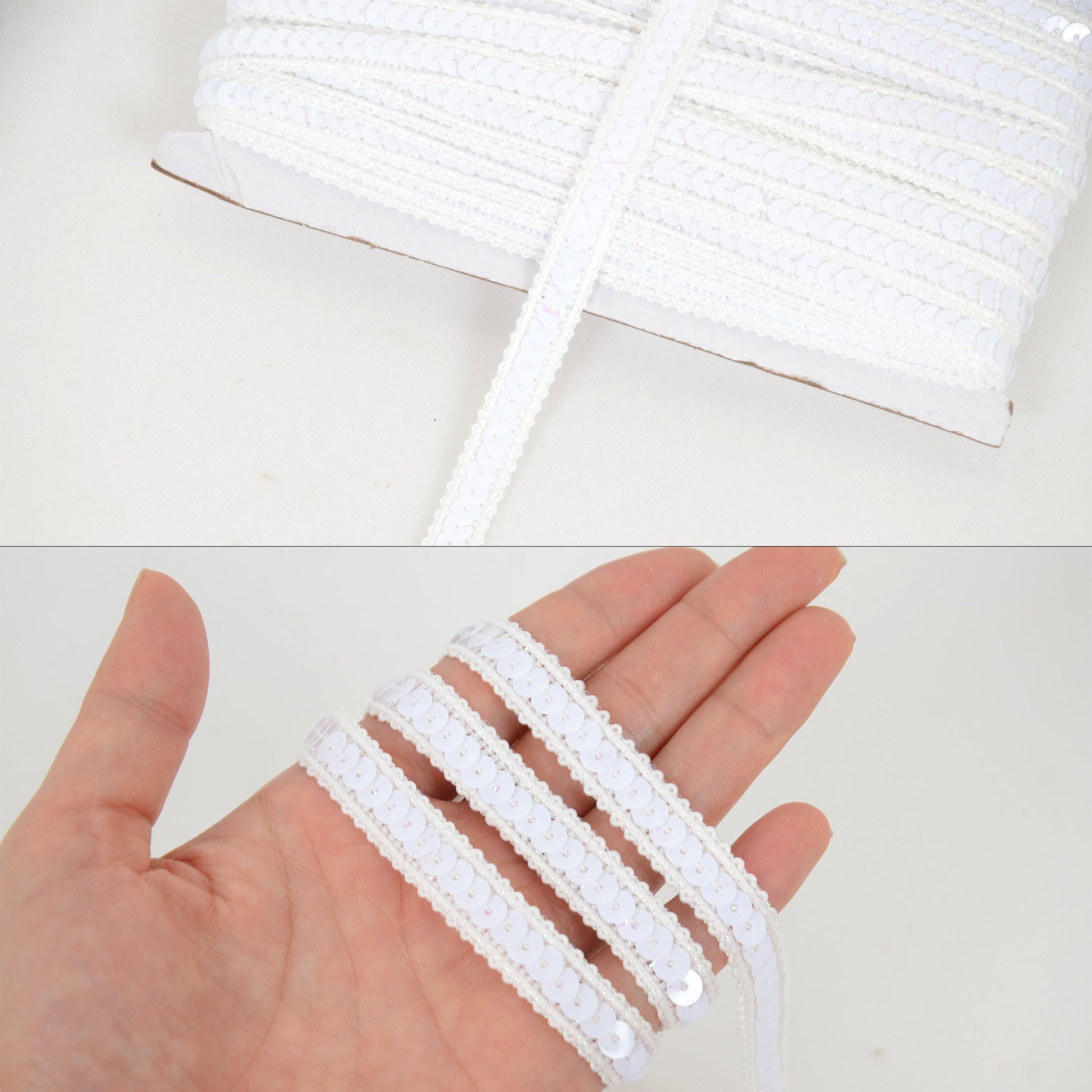 Whether you're creating beautiful Christmas tree decorations, preparing for a Halloween or New Year party, or simply looking to add some bling to your DIY crafts, this sequin stripe is a wonderful choice. Its versatility makes it ideal for a wide range of applications, including birthday gift packaging and DIY fringe sewing projects.The flat design of the glitter ribbon ensures easy sewing and effortless application, while the metallic sequins catch the light and create a dazzling effect. Let your creativity shine with this eye-catching trim that adds a touch of glamour to any project.Easy to use, this sequin trim can be cut to the desired length and sewn or glued onto your chosen fabric or craft material. Its flexibility and durability make it great for various sewing and crafting techniques.Choose this sparkle sequin trim for your sewing embellishment needs and let your creations sparkle and shine.
